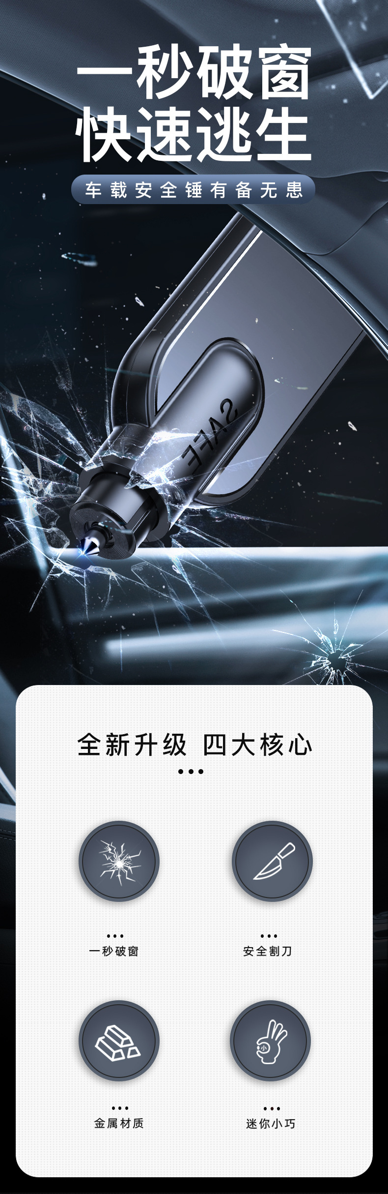 Один автомобильный молоток безопасности [Мерен черный]; Автомобильный молоток [Мерен красный] один