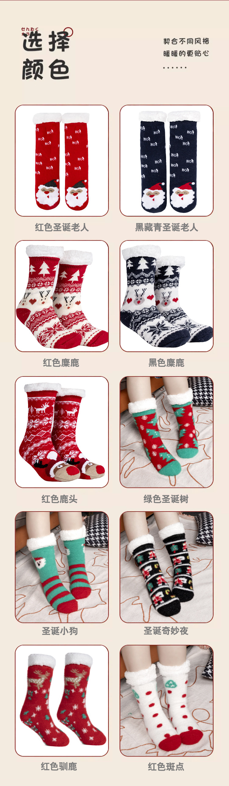 красный Санта Клаус; черный Дед Мороз; голова красного оленя; красный лось; черный лось; Красный олень [имитация меха норки]; Зеленая елка [имитация меха норки]; Рождественский щенок [имитация меха норки]; Рождественская чудесная ночь [Искусственный мех норки]; Красные пятна [имитация норковой шерсти]