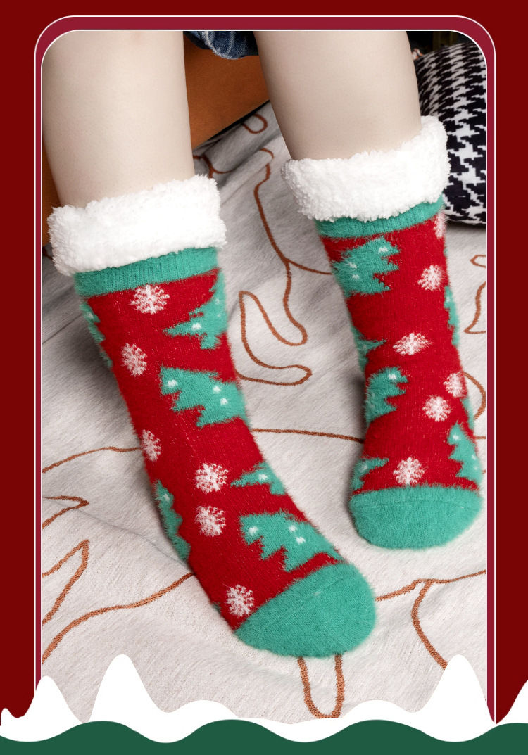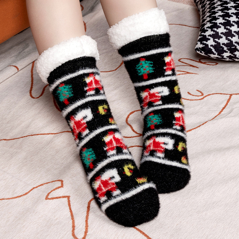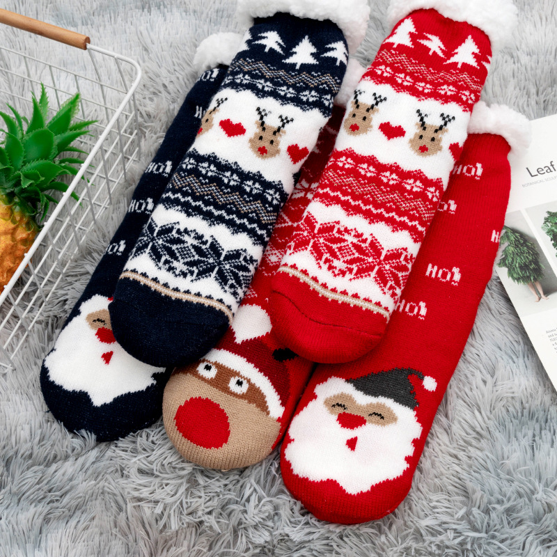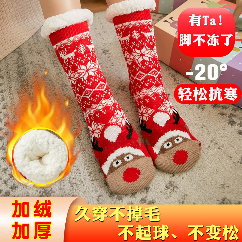 Рождественские напоенные носки для домашнего сна зимний бархат утолщенные длинные носки дамы носки нескользящие