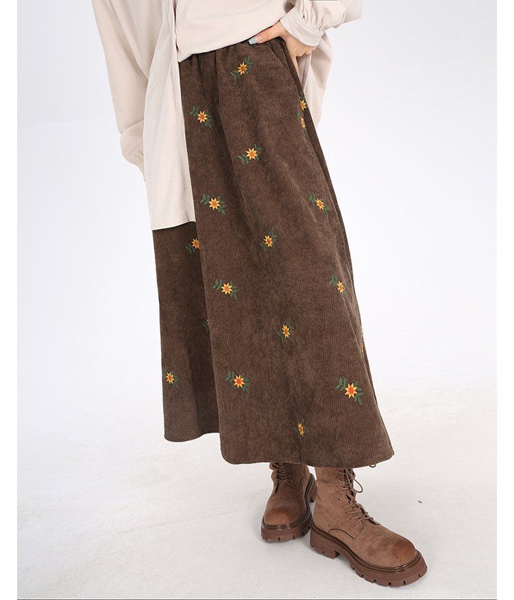 Ретро коричневая вельветовая юбка юбка-платье-бюст