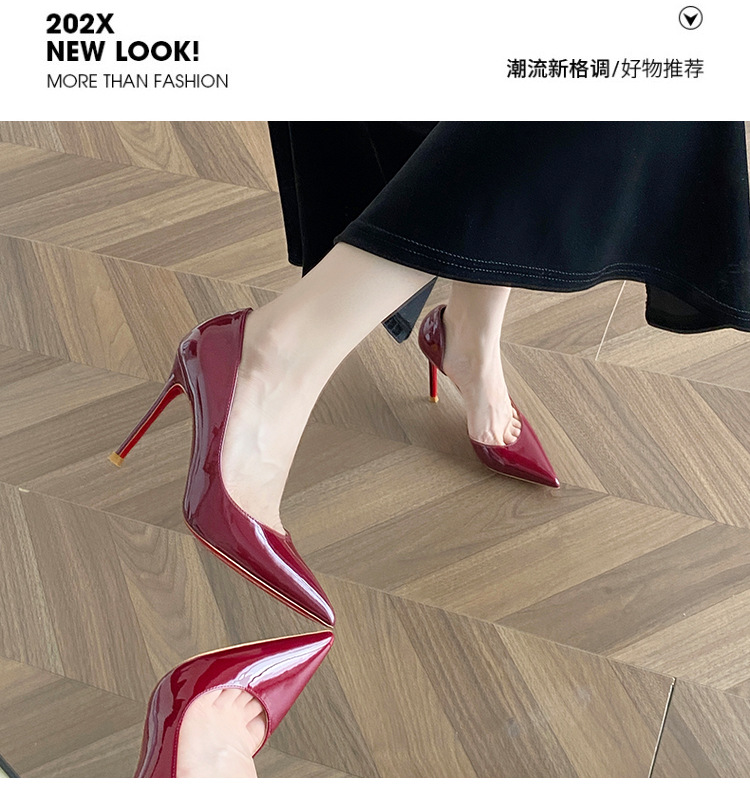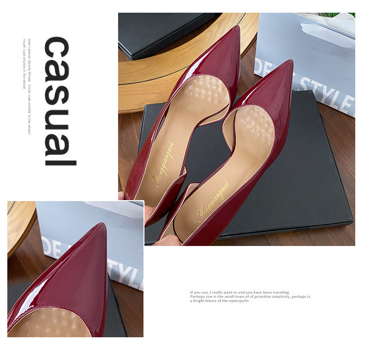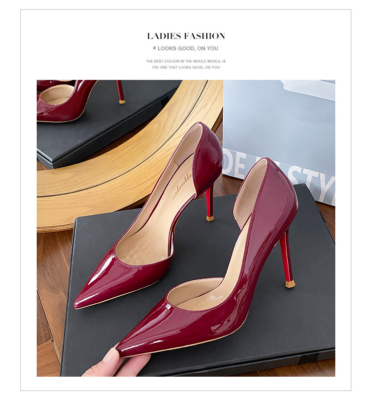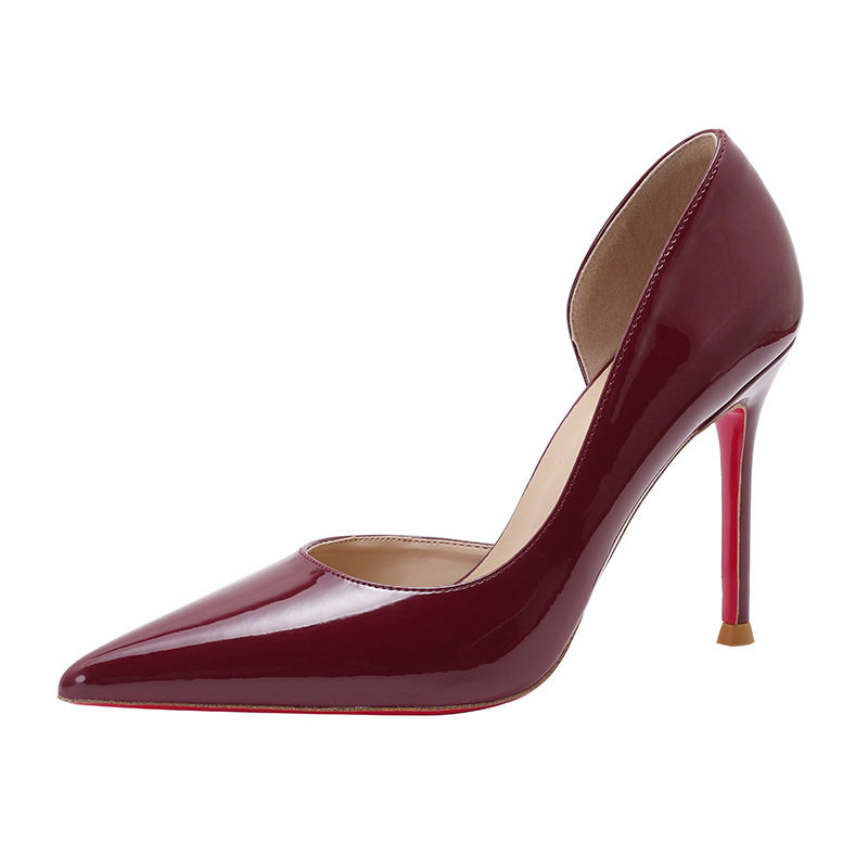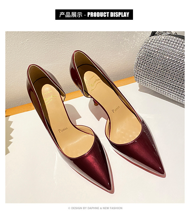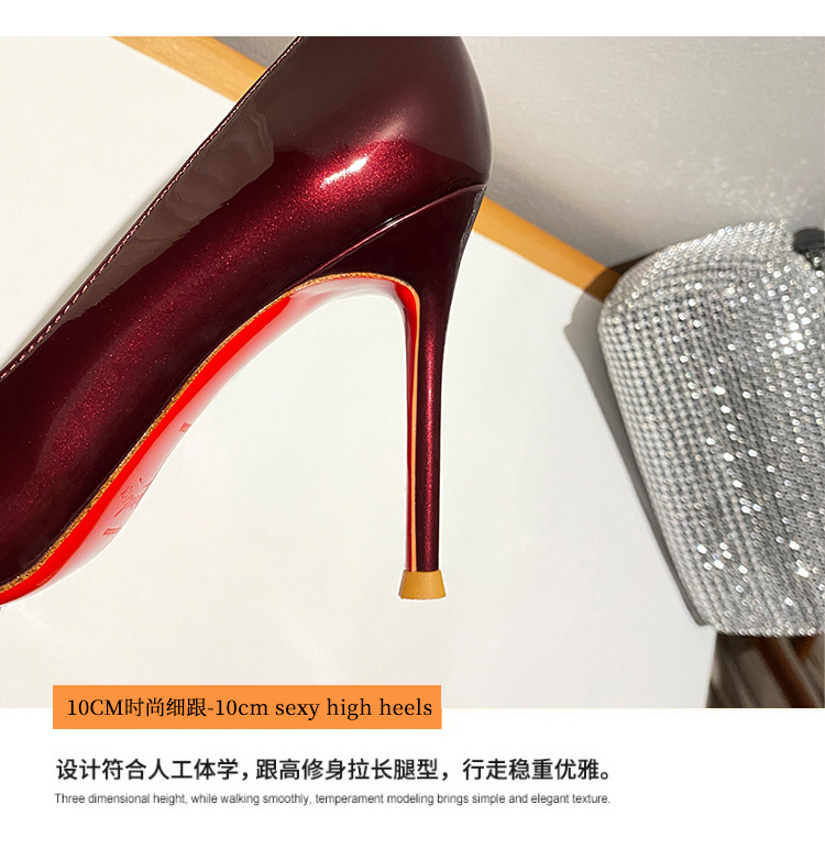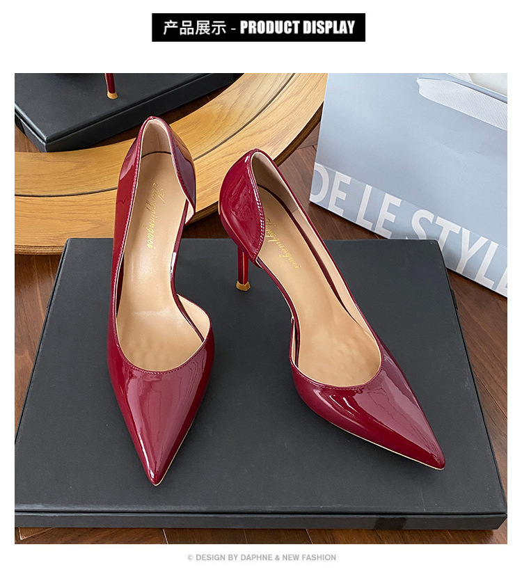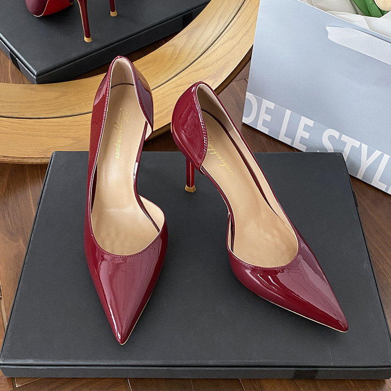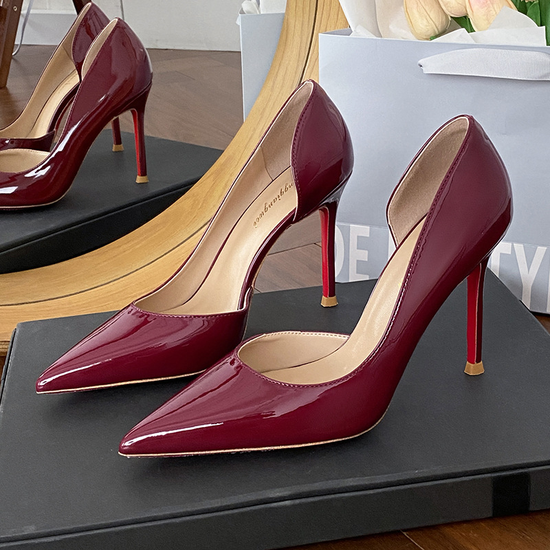 Винно-красные высокие каблуки боковые пустые женские весна и осень 2025 новые не уставшие ноги на каблуках