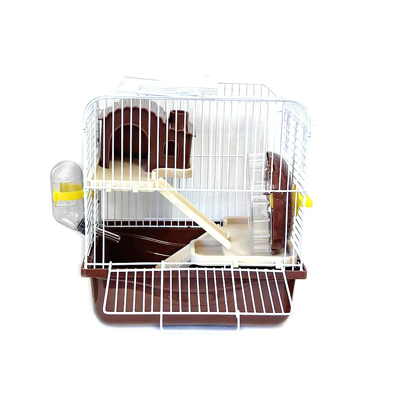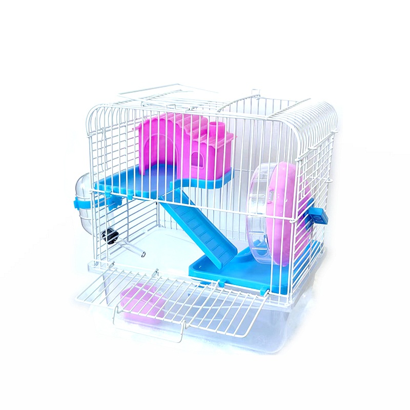 小庄园仓鼠笼是针对仓鼠的生活习性而开发设计的一款居家笼具,其内部构造简约大气,随笼配置了二个双层平台、宽敞大屋,转轮、静音水壶、食盆,一应俱全,让仓鼠居家生活更丰富彩。