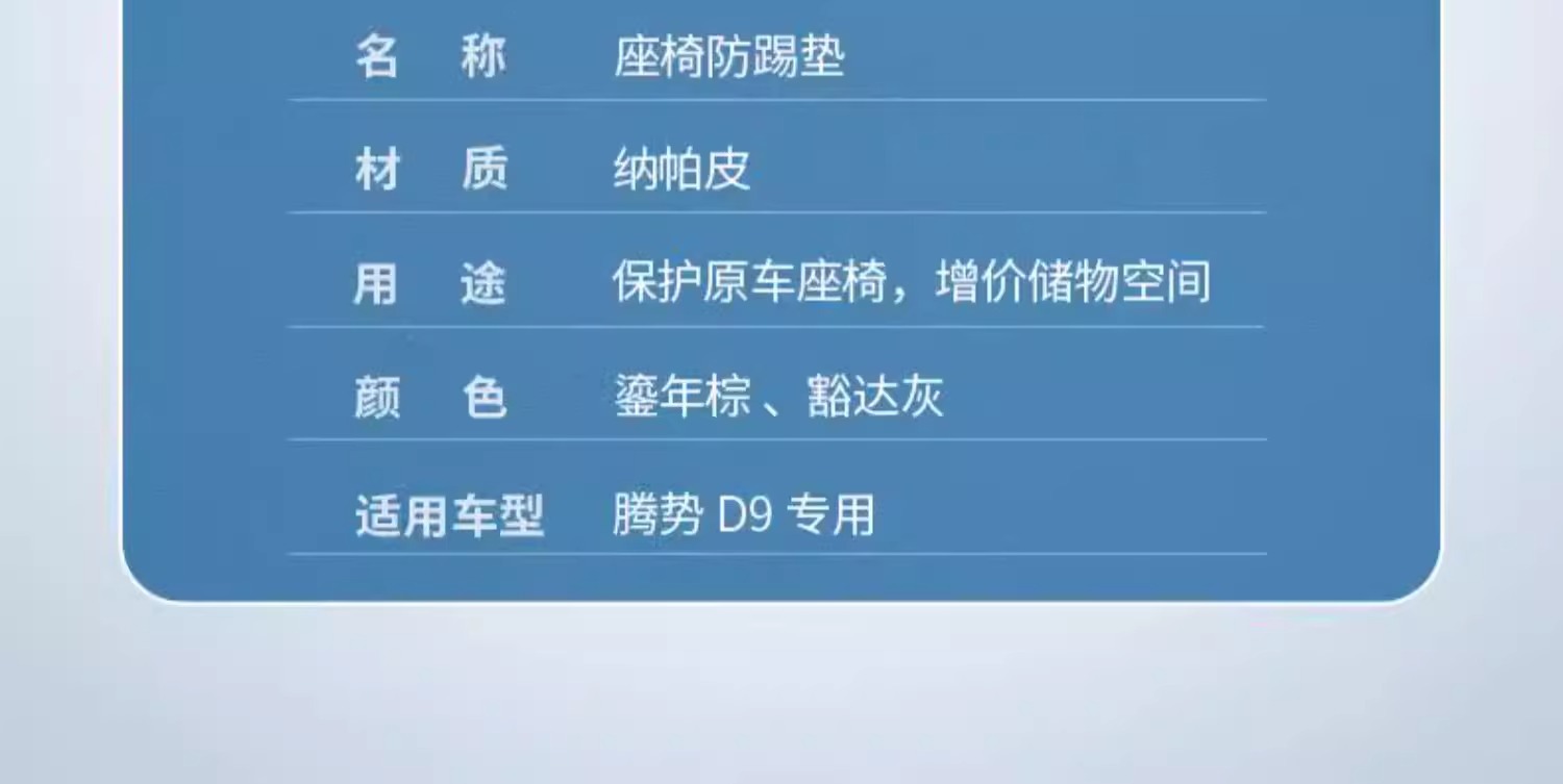 Защитная накладка на спинку сиденья Tengshi D9, специальная защита заднего сиденья, аксессуары для защиты от царапин на подножке, автомобильные принадлежности для изменения цвета