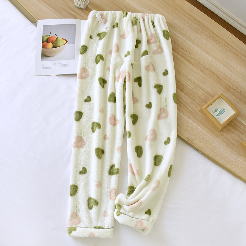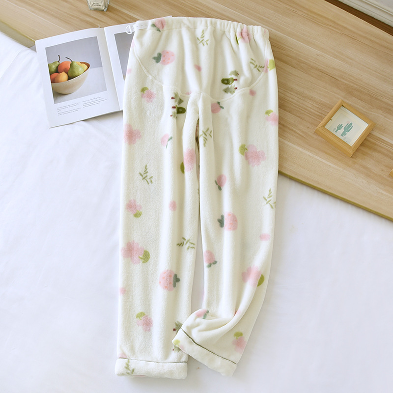 Фланелевые беременные пижаки Осень и зима плюс размер коралловый бархат регулировка прямой брюки для живота