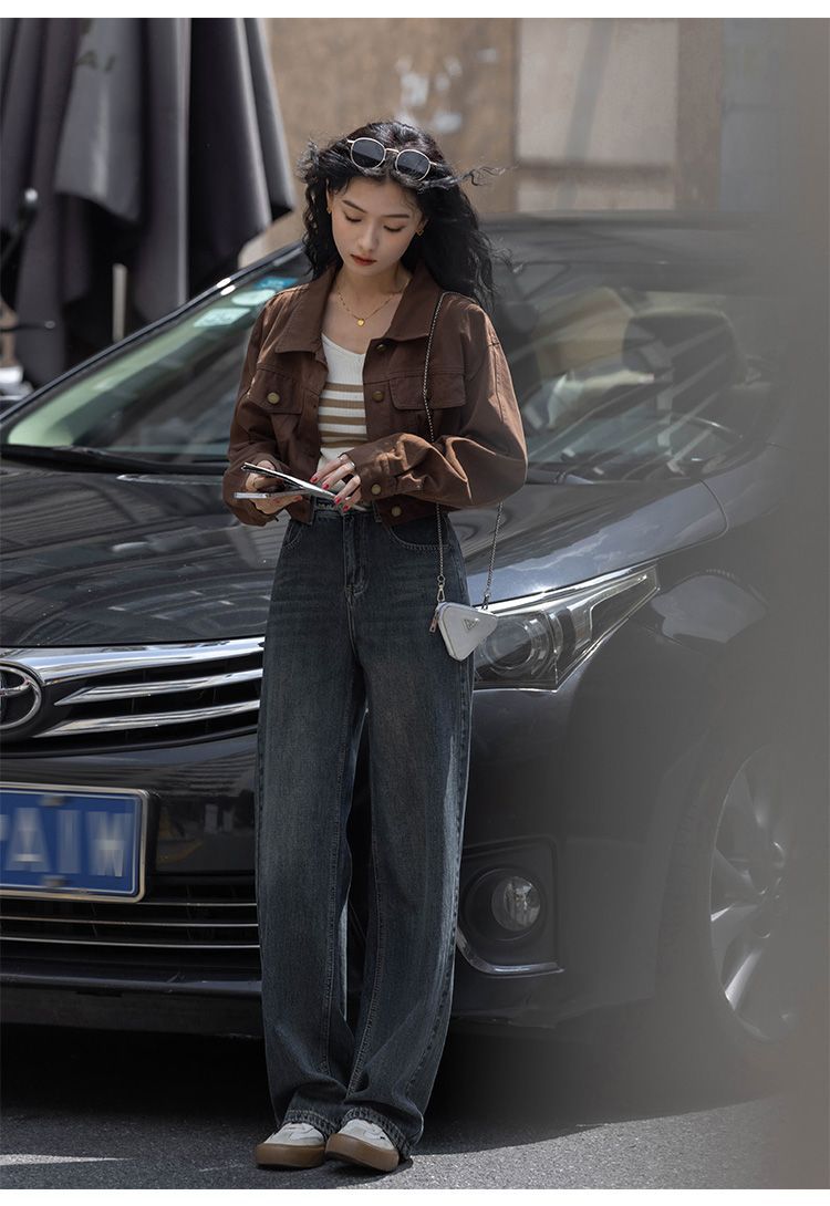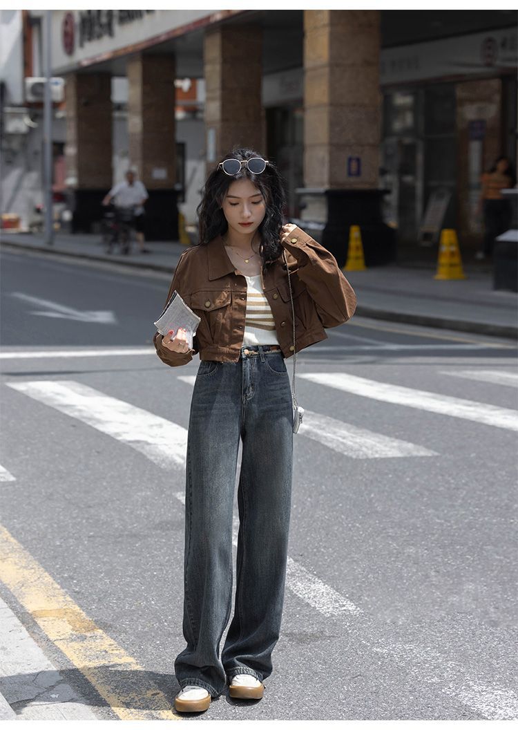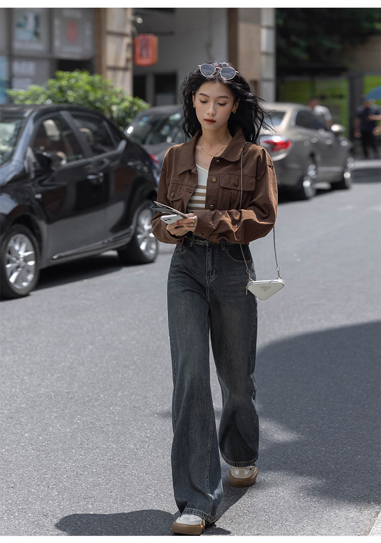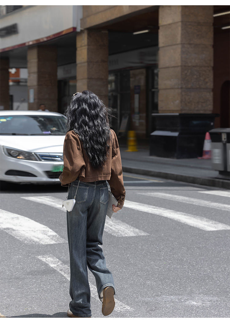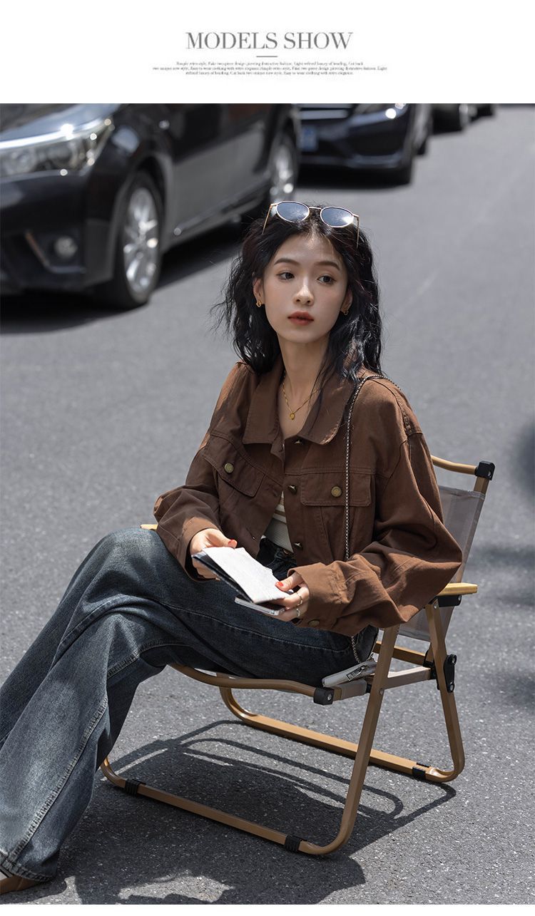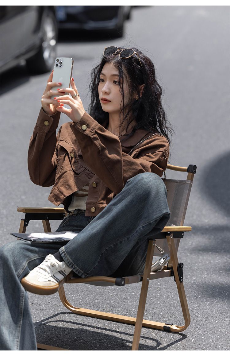 Женская кофейно-коричневая куртка с длинными рукавами в стиле Майяра, новая облегающая короткая рабочая куртка весны и осени 2025 года для невысоких фигур.