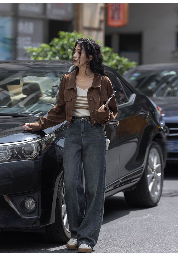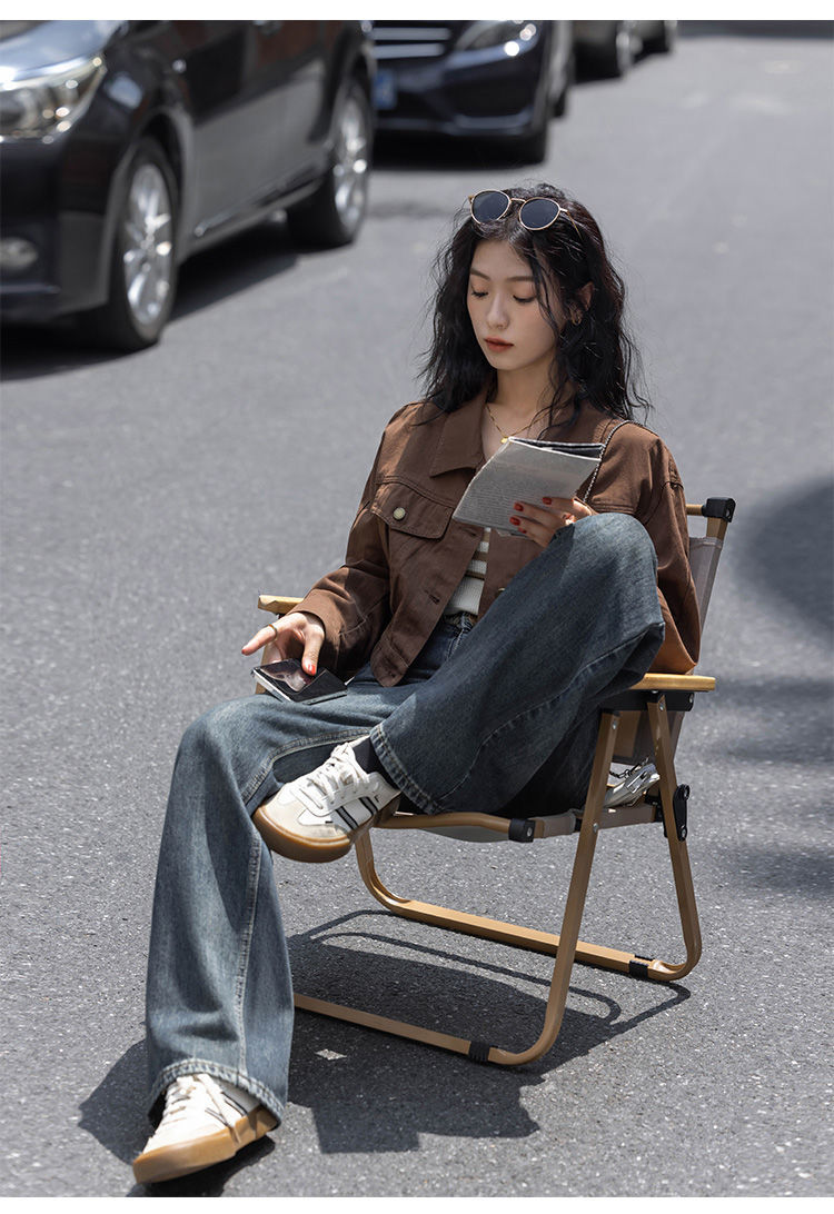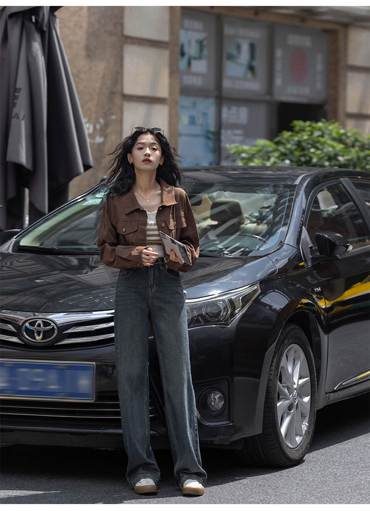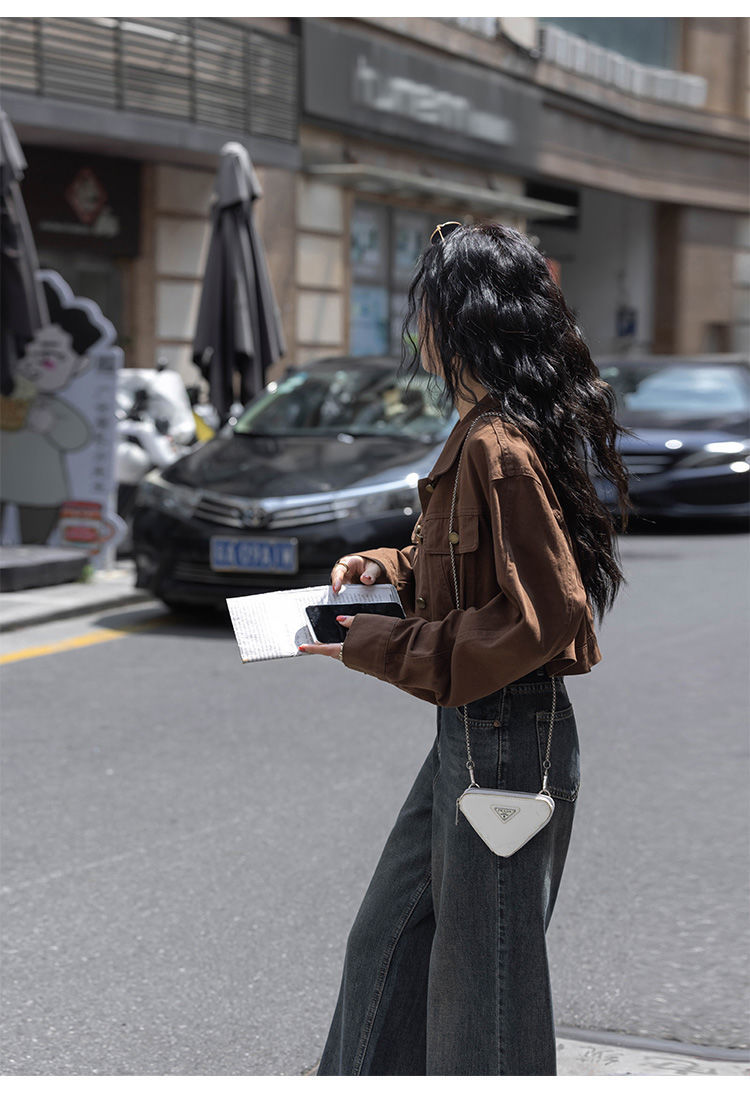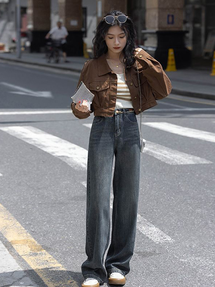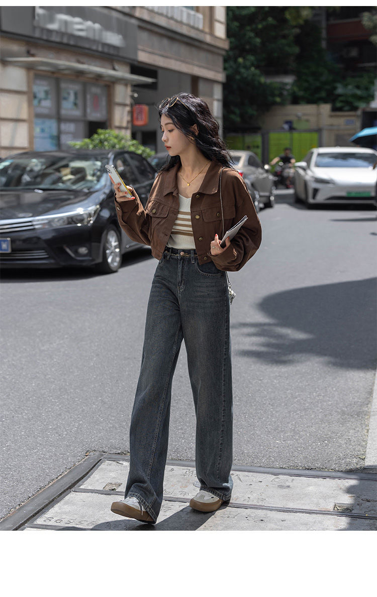Женская кофейно-коричневая куртка с длинными рукавами в стиле Майяра, новая облегающая короткая рабочая куртка весны и осени 2025 года для невысоких фигур.