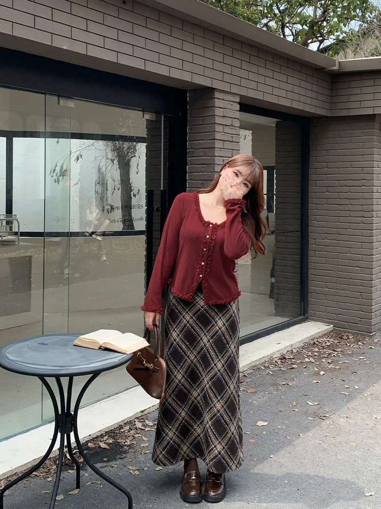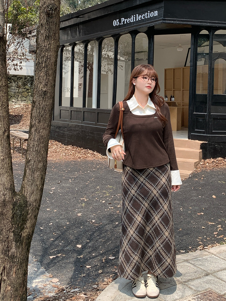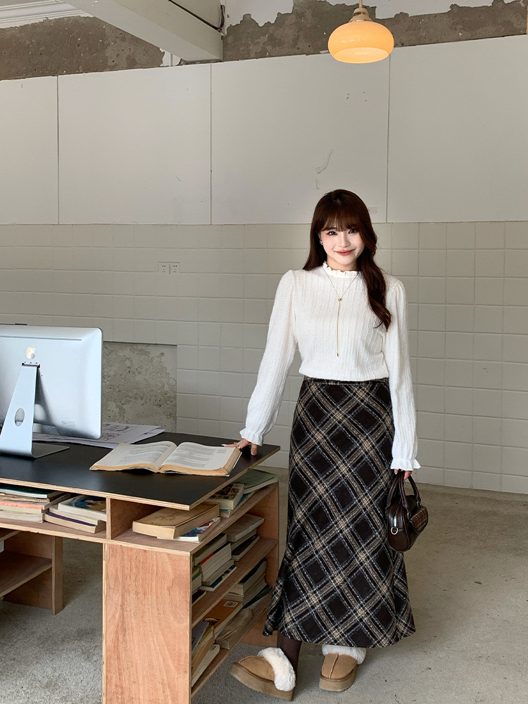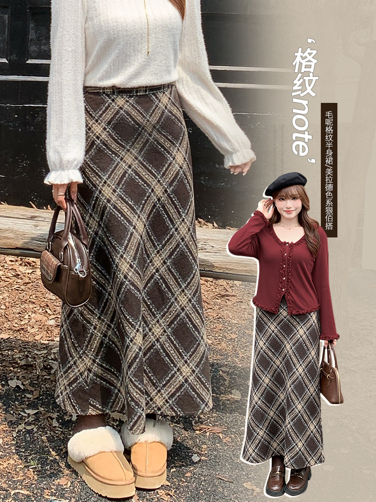 Шерстяная юбка в клетку в стиле ретро с высокой талией для женщин, весенняя женская юбка трапециевидной формы больших размеров, утягивающая и плотно прилегающая длинная юбка 63590