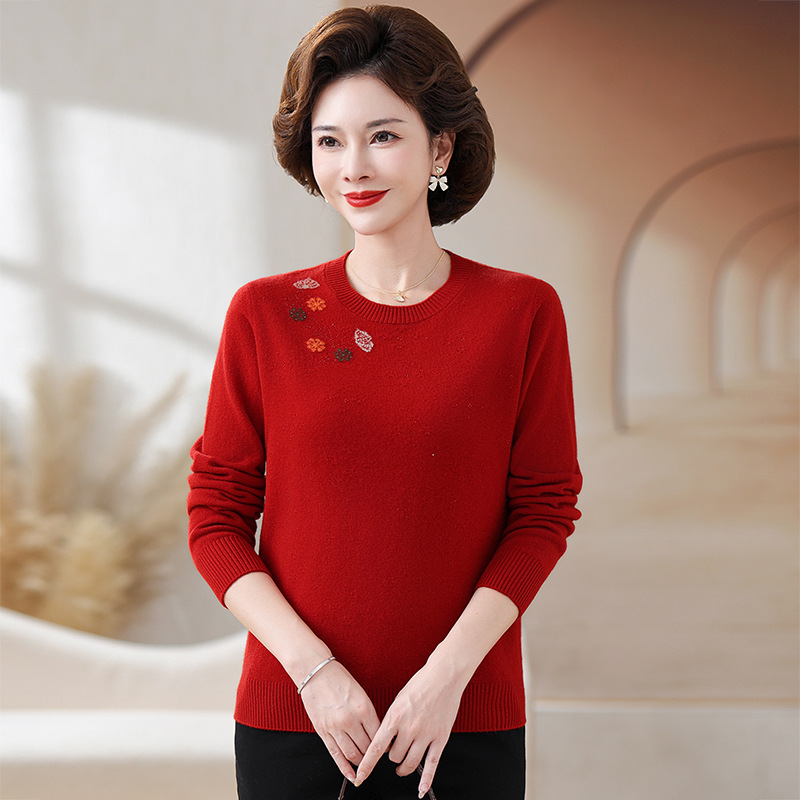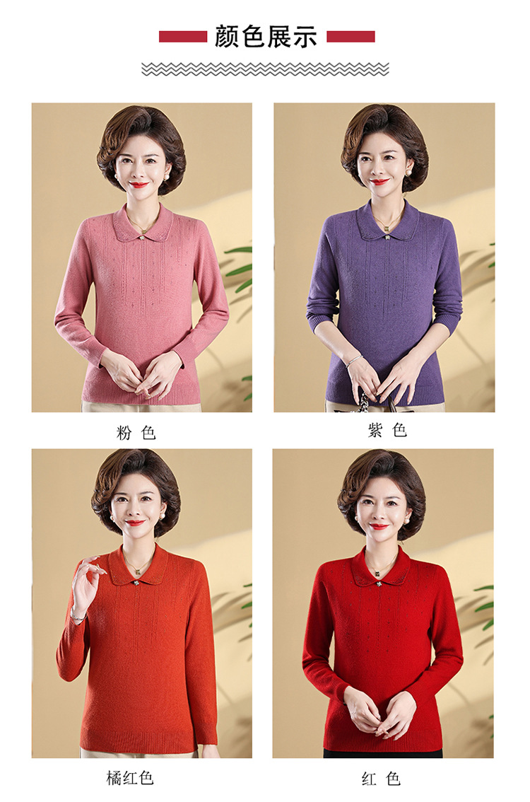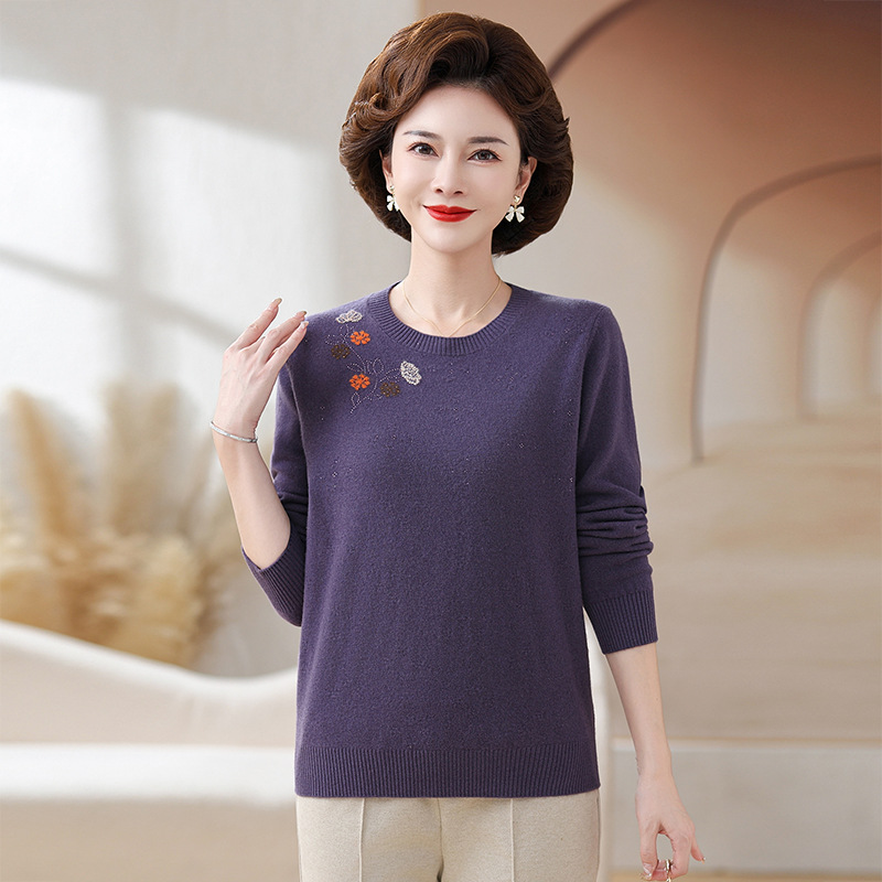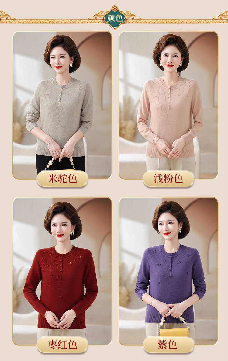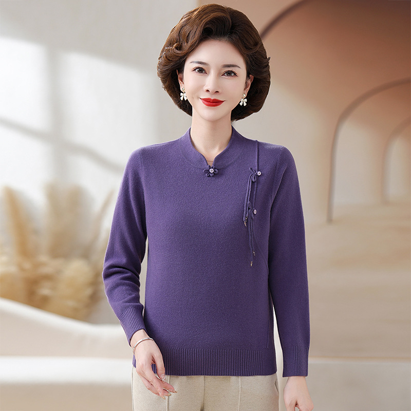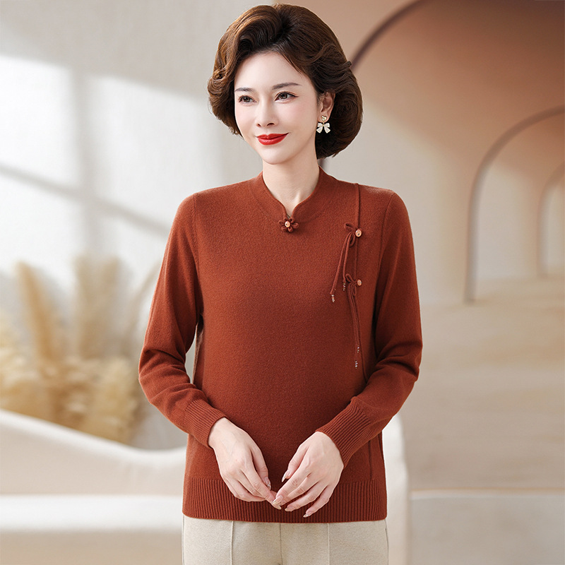 Шерстяной свитер для мамы, однотонный, базовая модель для женщин среднего возраста, стильный и элегантный, новый зимний свитер 2024 года.