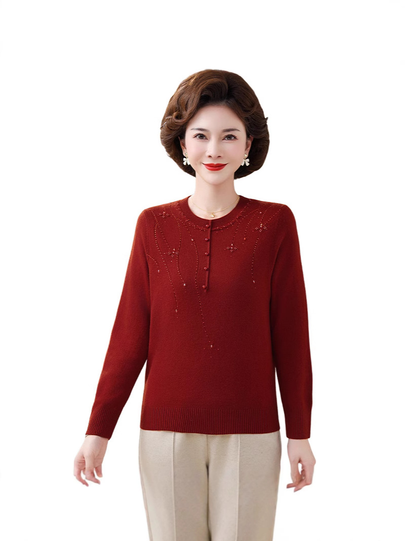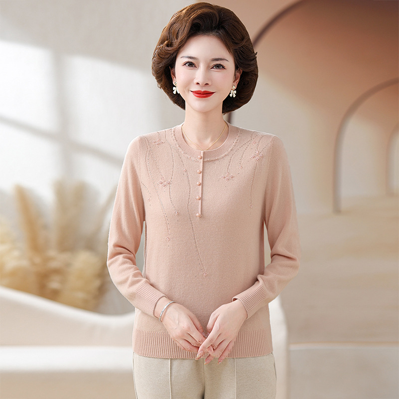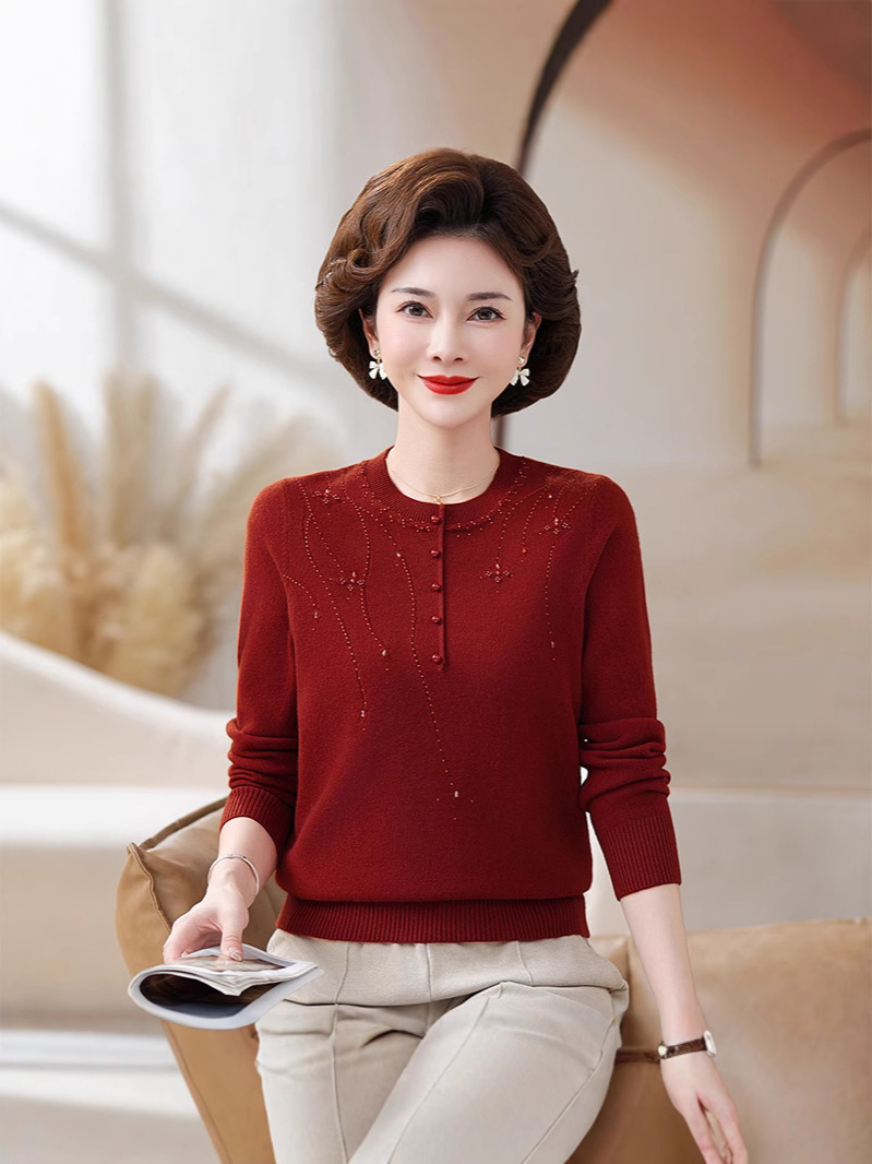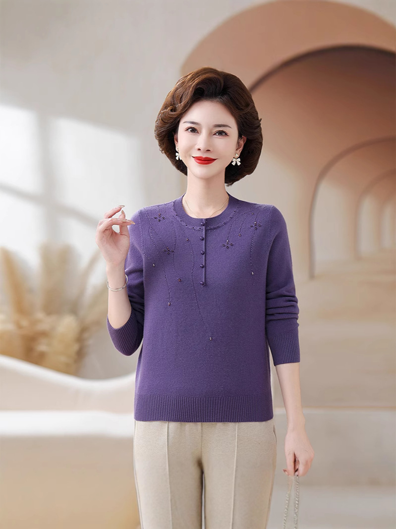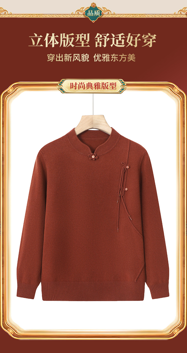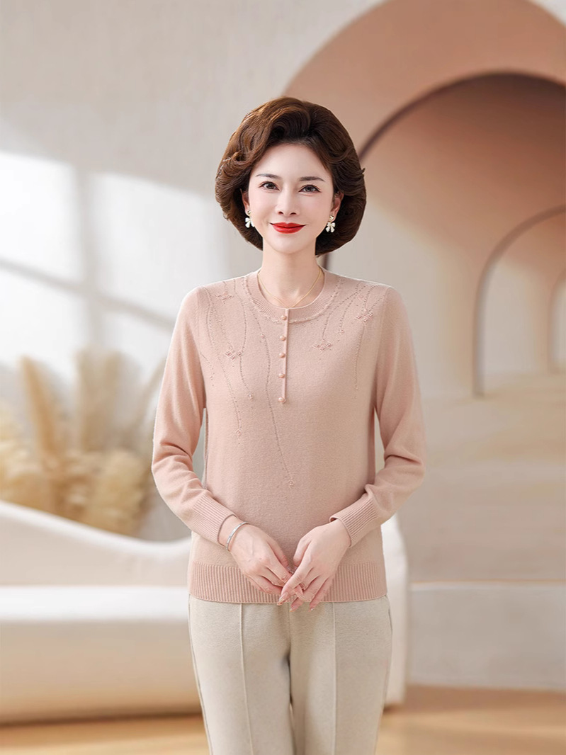 Шерстяной свитер для мамы, однотонный, базовая модель для женщин среднего возраста, стильный и элегантный, новый зимний свитер 2024 года.