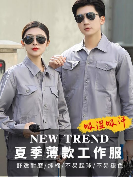 Летняя хлопковая рабочая одежда для мужчин, тонкая рабочая одежда с длинными рукавами, костюм для заводских цехов, автосервисов и инженерных работ, влагопоглощающий.