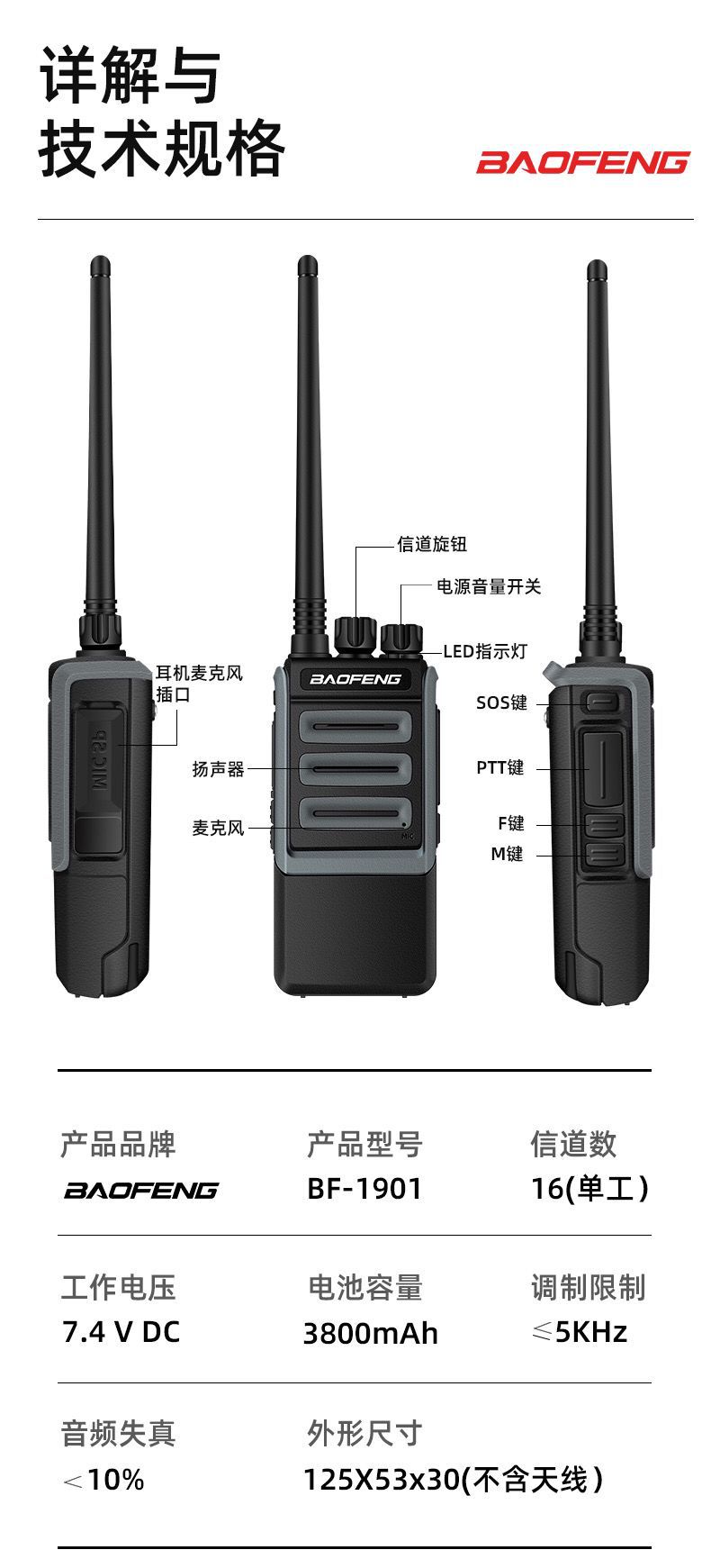 Baofeng BF-1901 домофон 10W мощность наружный портативный беспроводной домофон Baofeng 50 км тур с самостоятельным вождением
