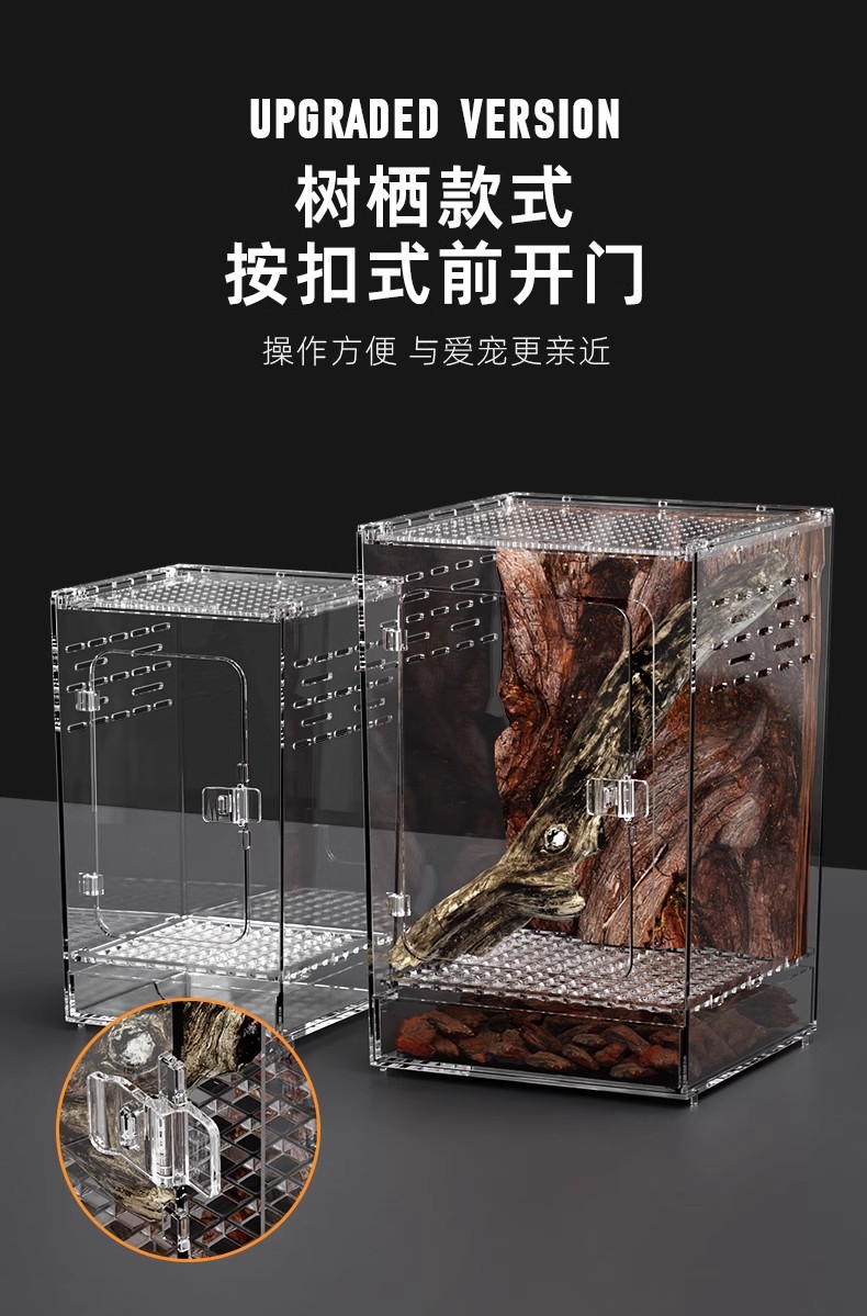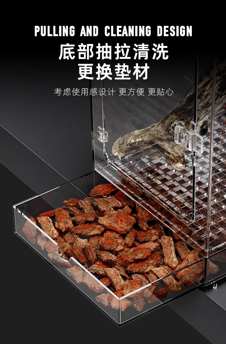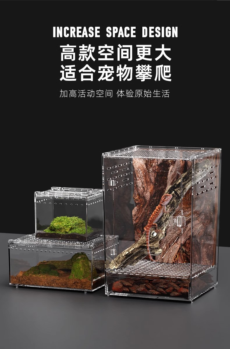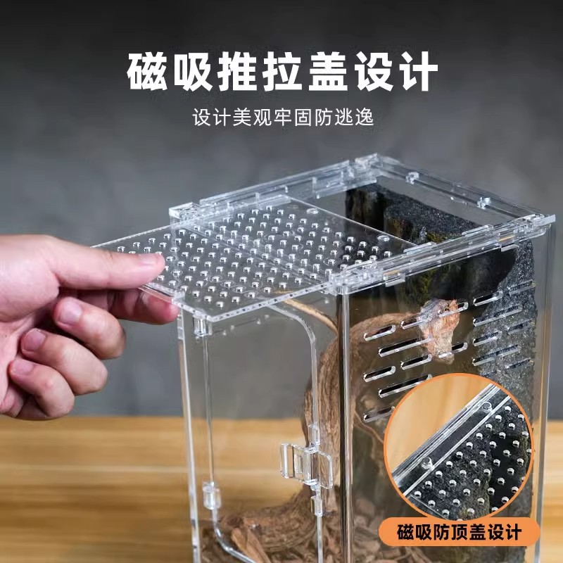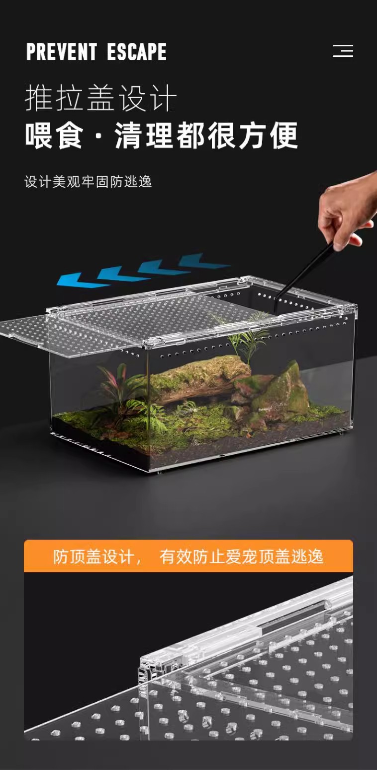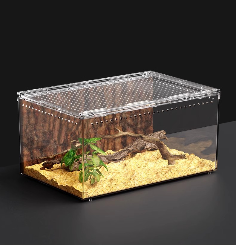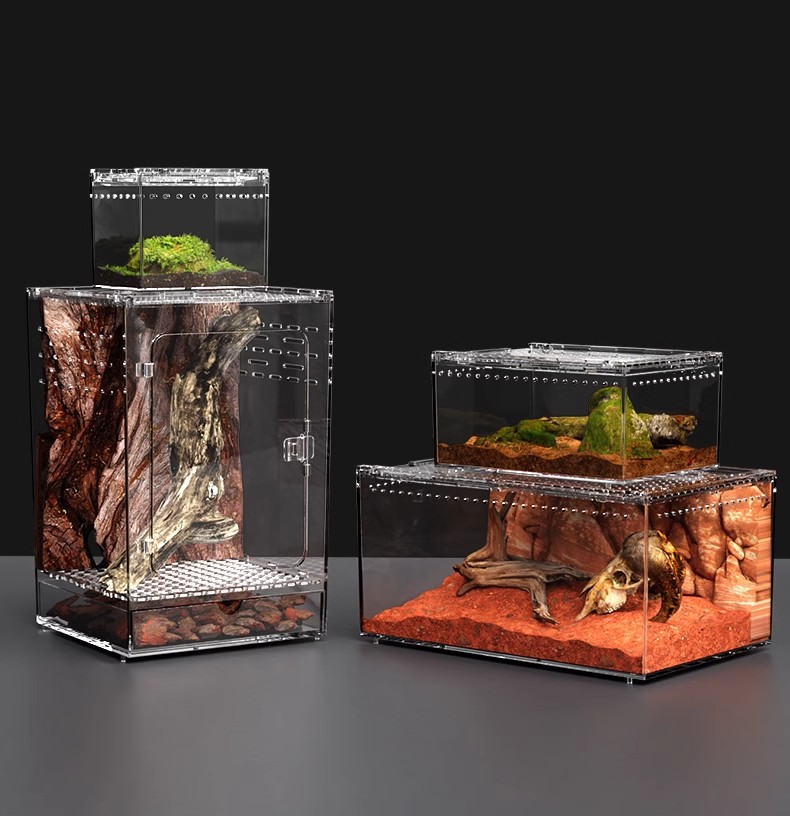 Акриловые пластиковые лазают на древесных ящиках для кормления ящиков Экологическая пустыня для озарения домашних животных
