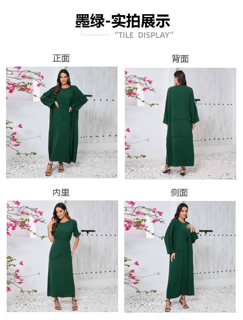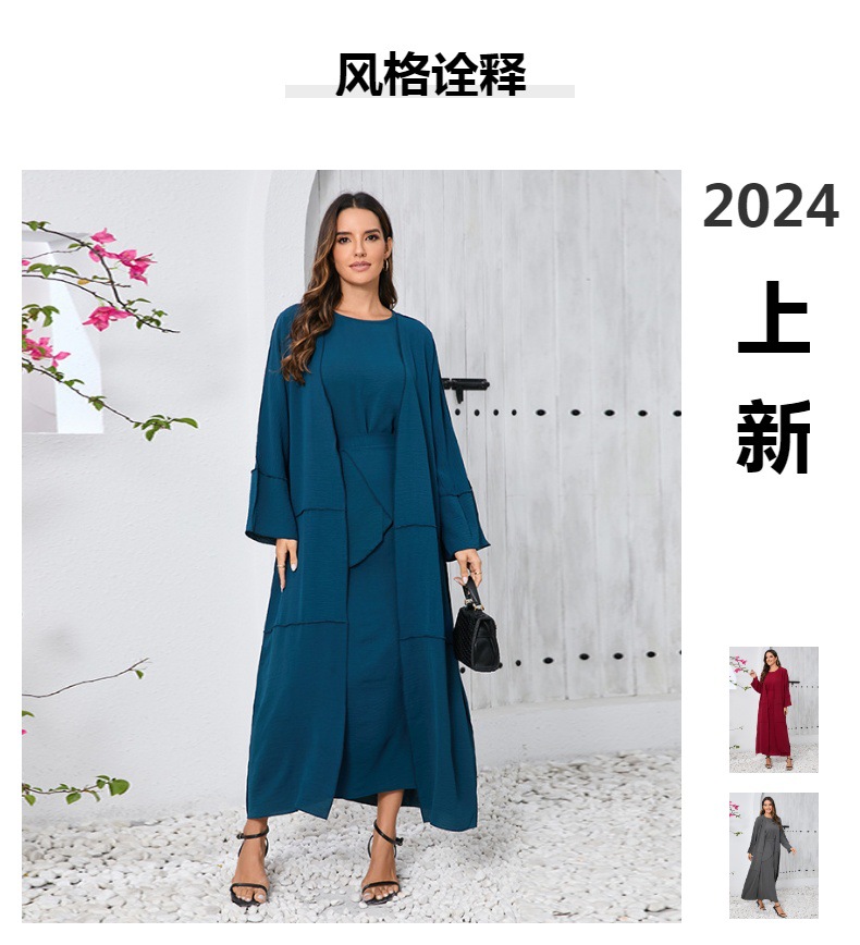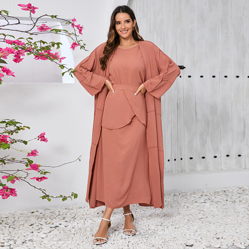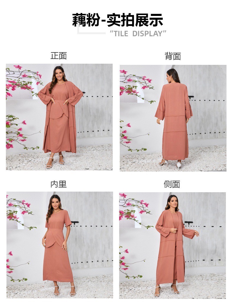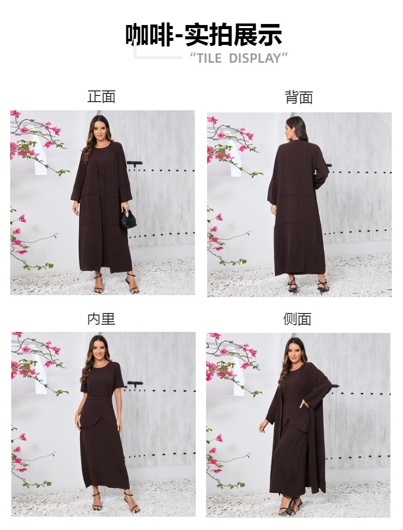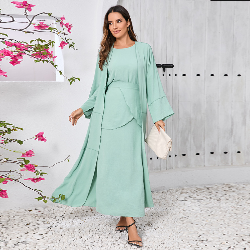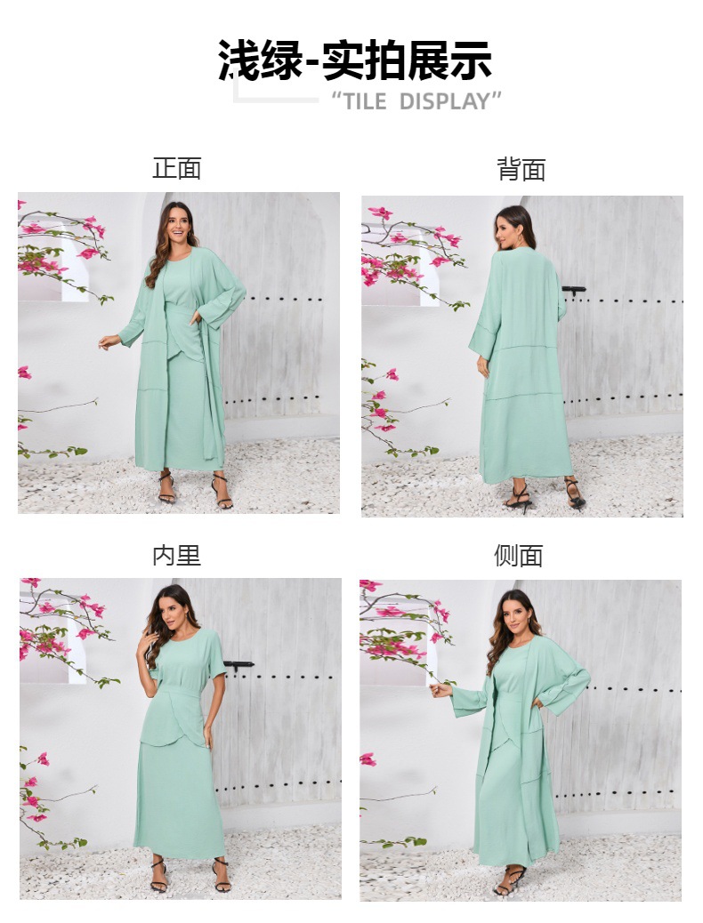 厂家直供伊朵朵秋季新款亚马逊气质优雅套装迪拜纯色三件套23522