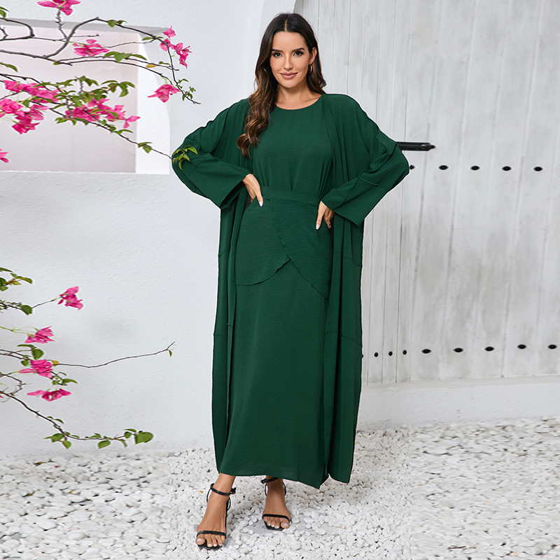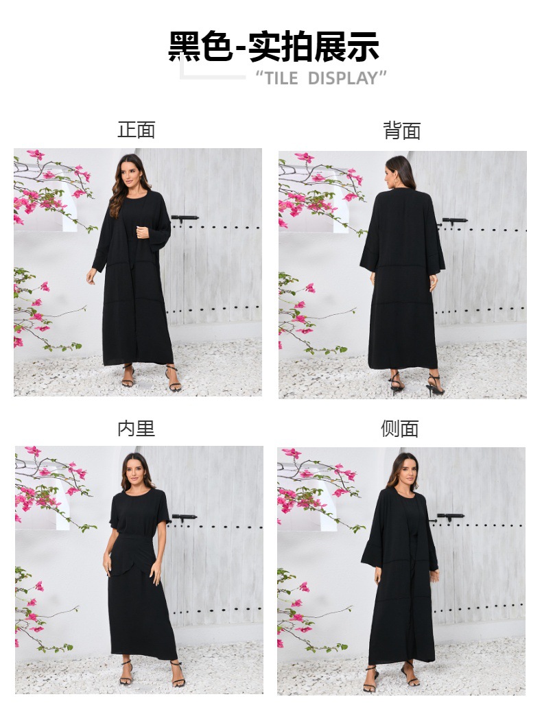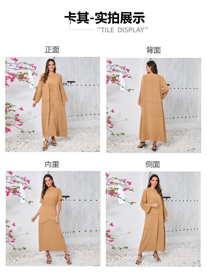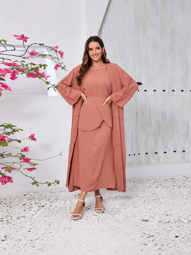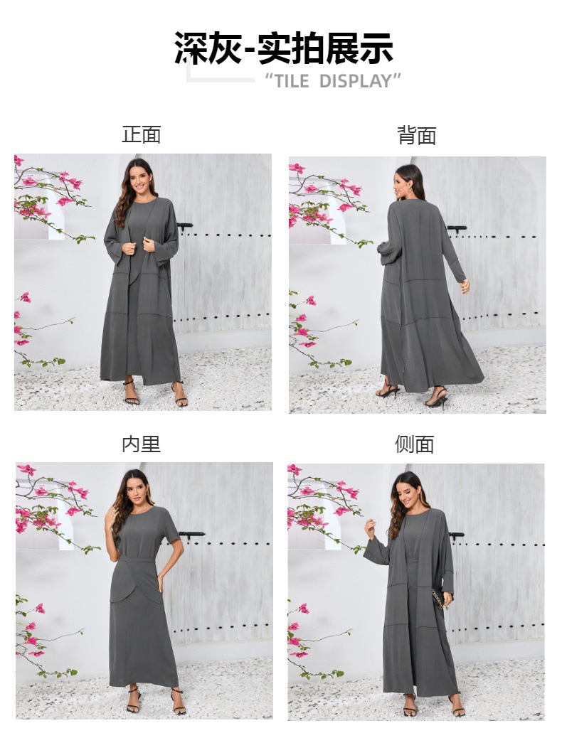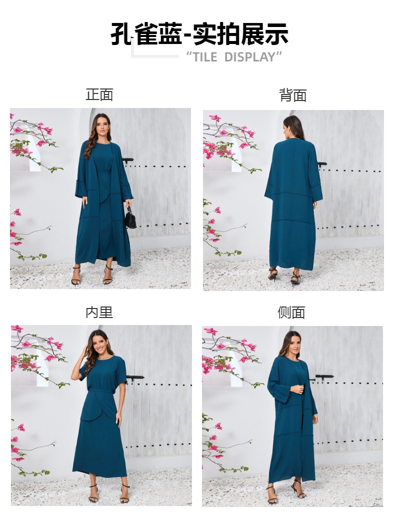 厂家直供伊朵朵秋季新款亚马逊气质优雅套装迪拜纯色三件套23522