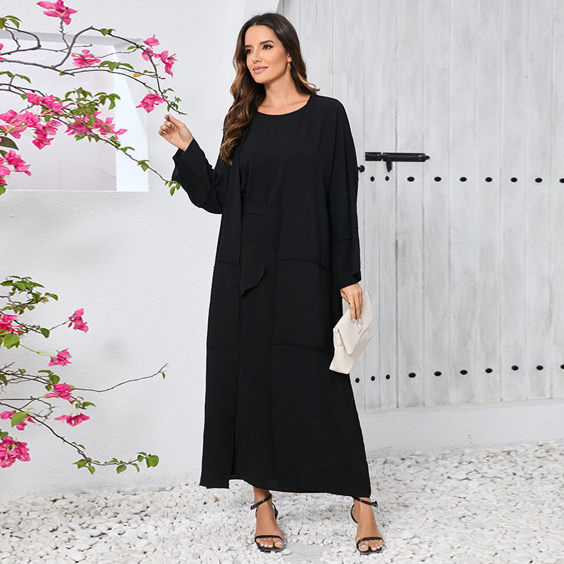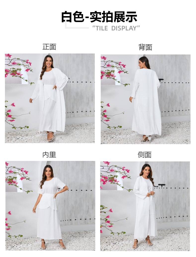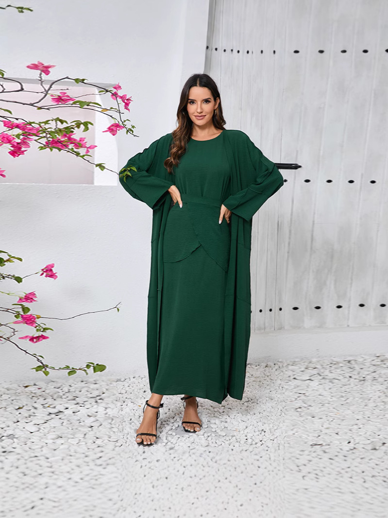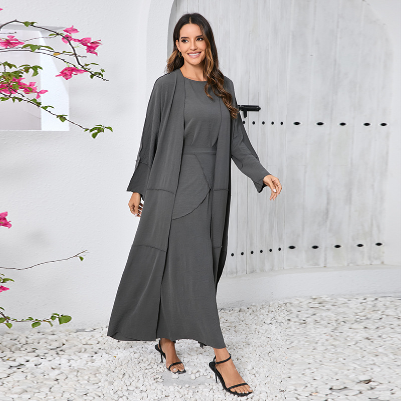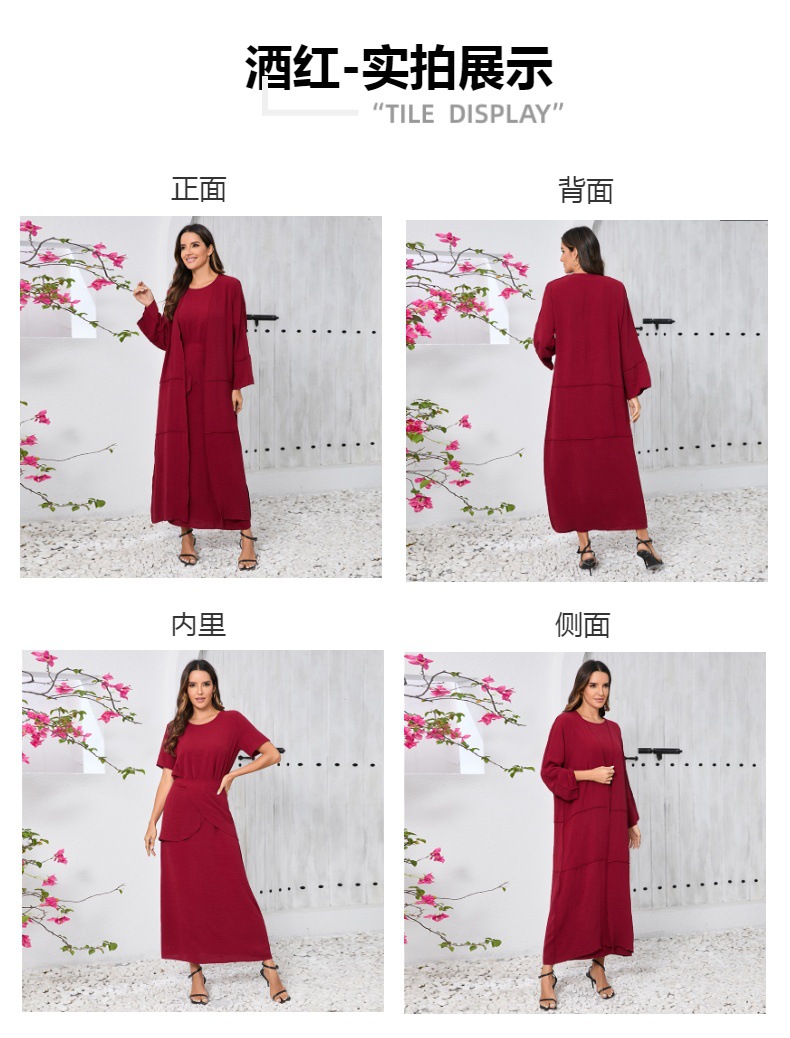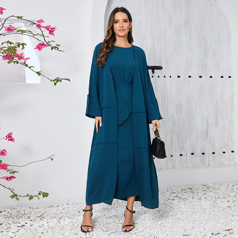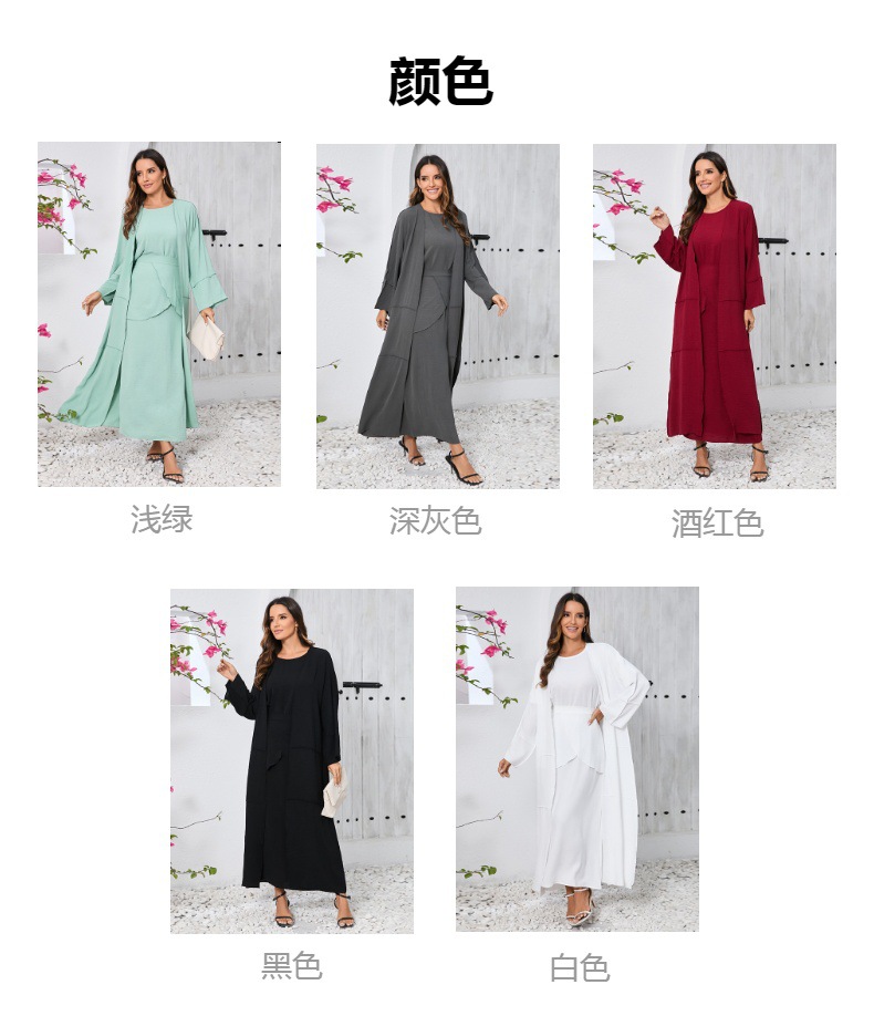 厂家直供伊朵朵秋季新款亚马逊气质优雅套装迪拜纯色三件套23522