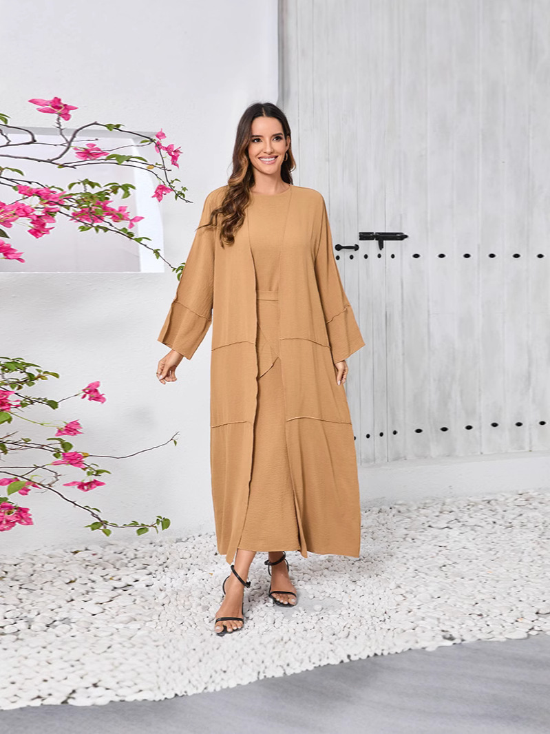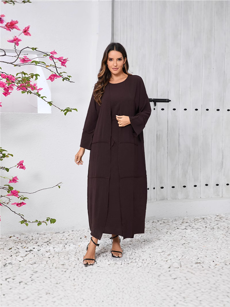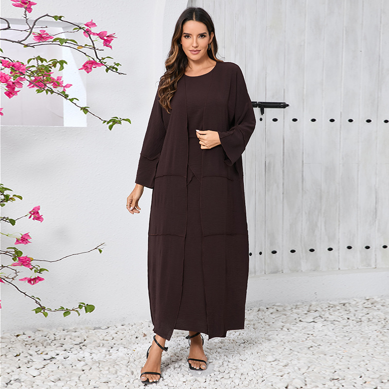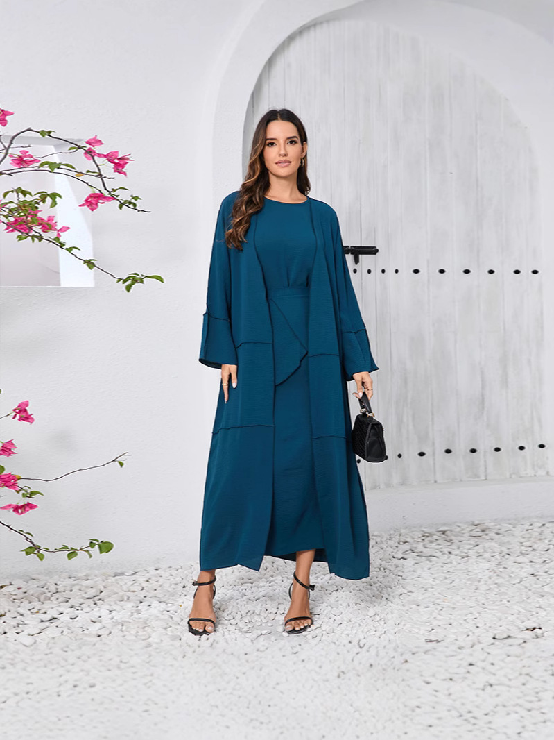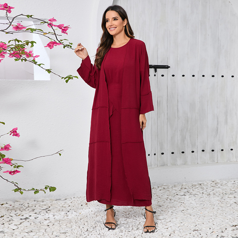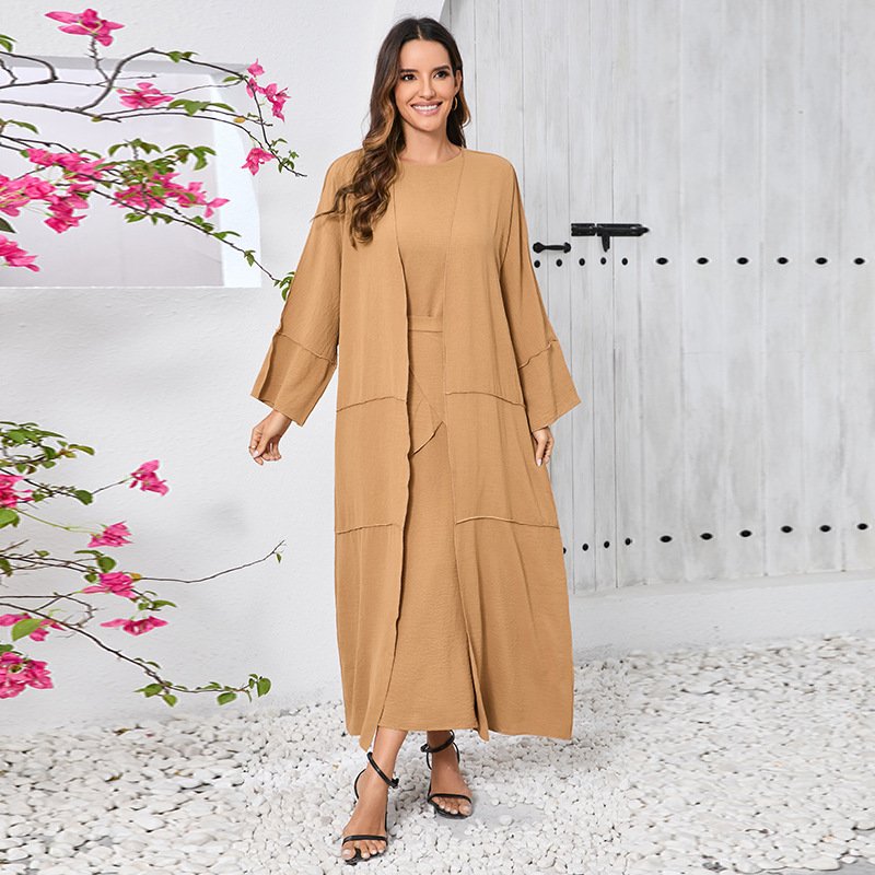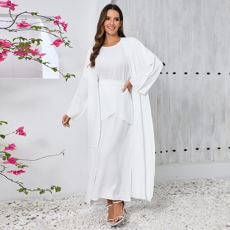 厂家直供伊朵朵秋季新款亚马逊气质优雅套装迪拜纯色三件套23522