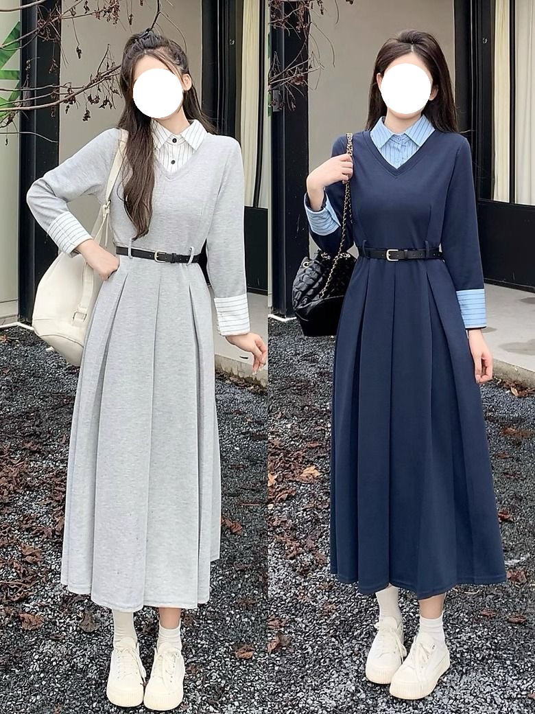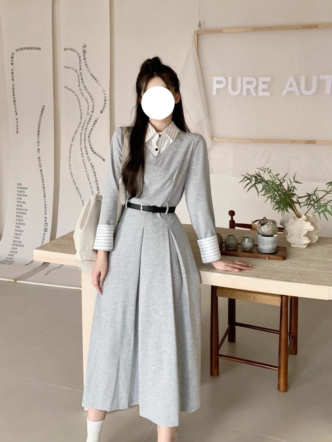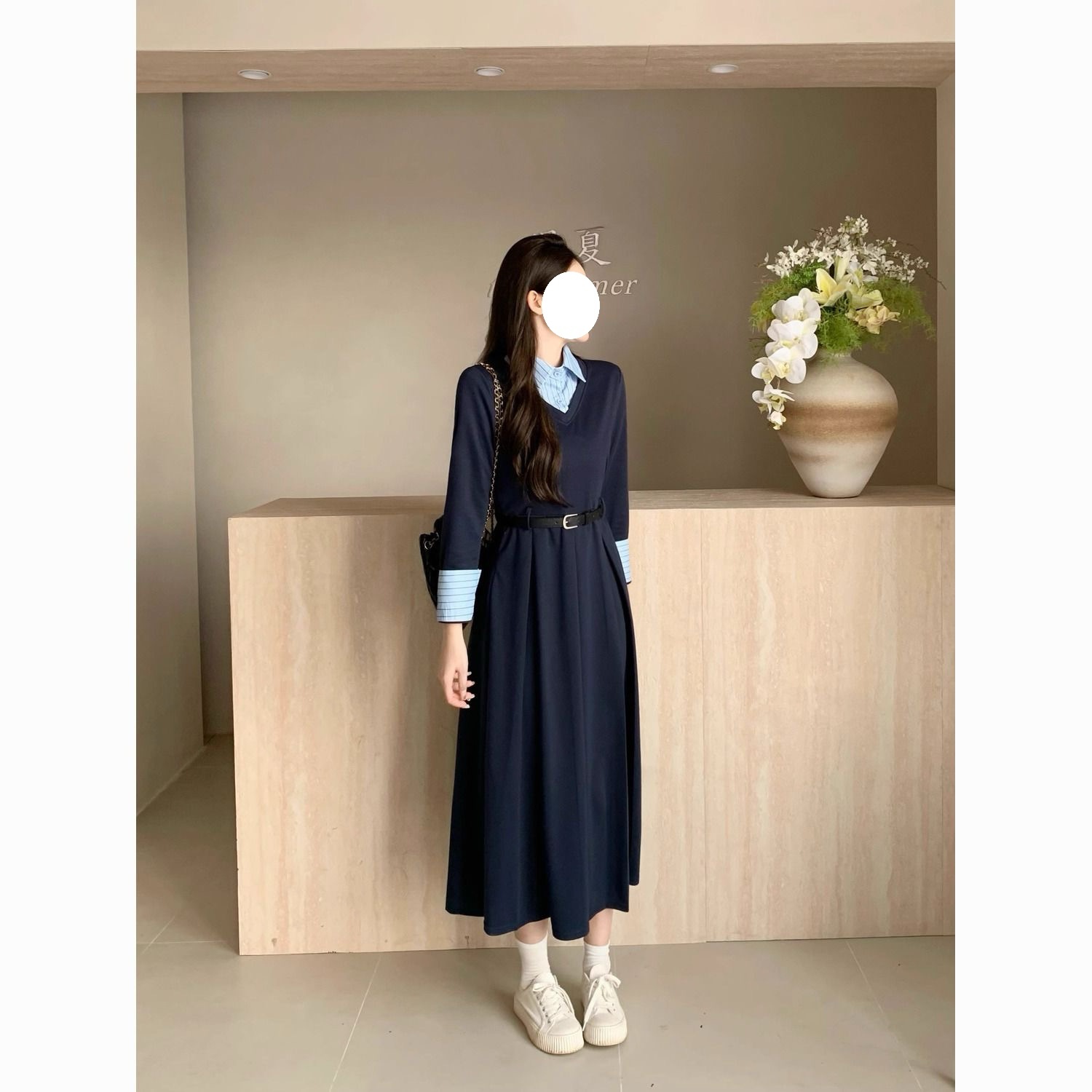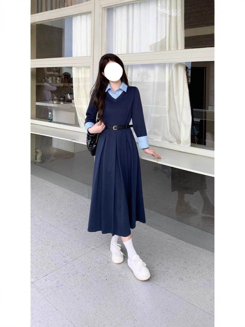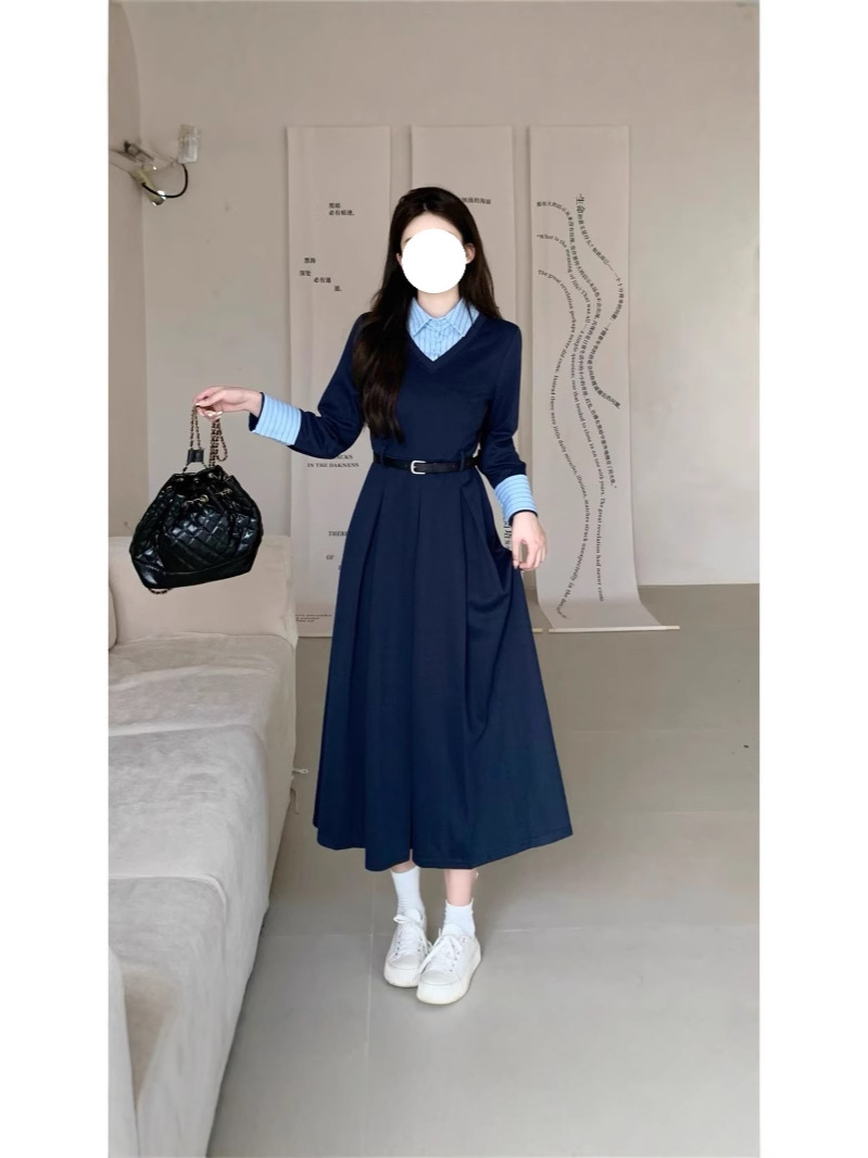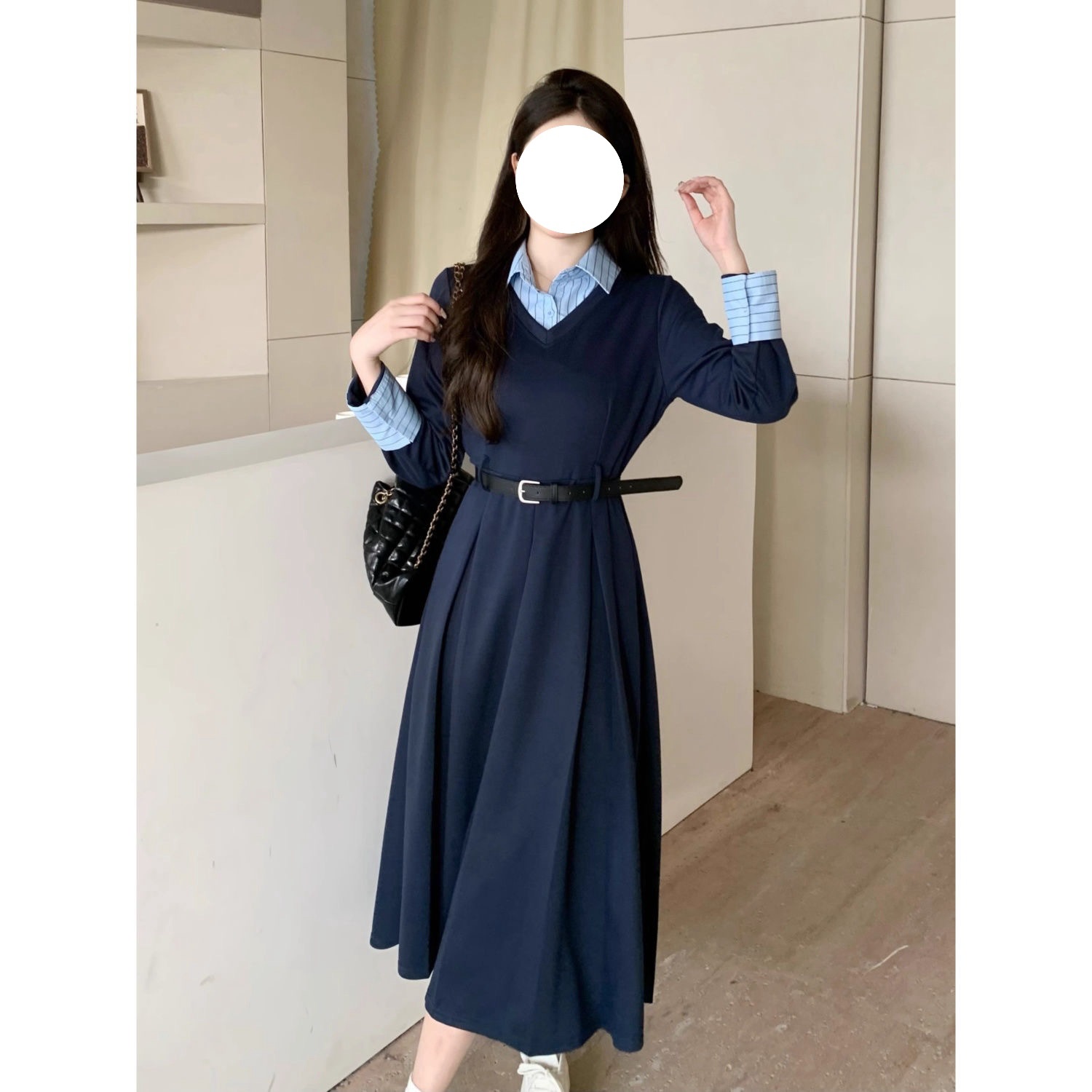 Женский осенний наряд в стиле преппи, комплект из двух частей (имитация), новые осенние длинные юбки для женщин