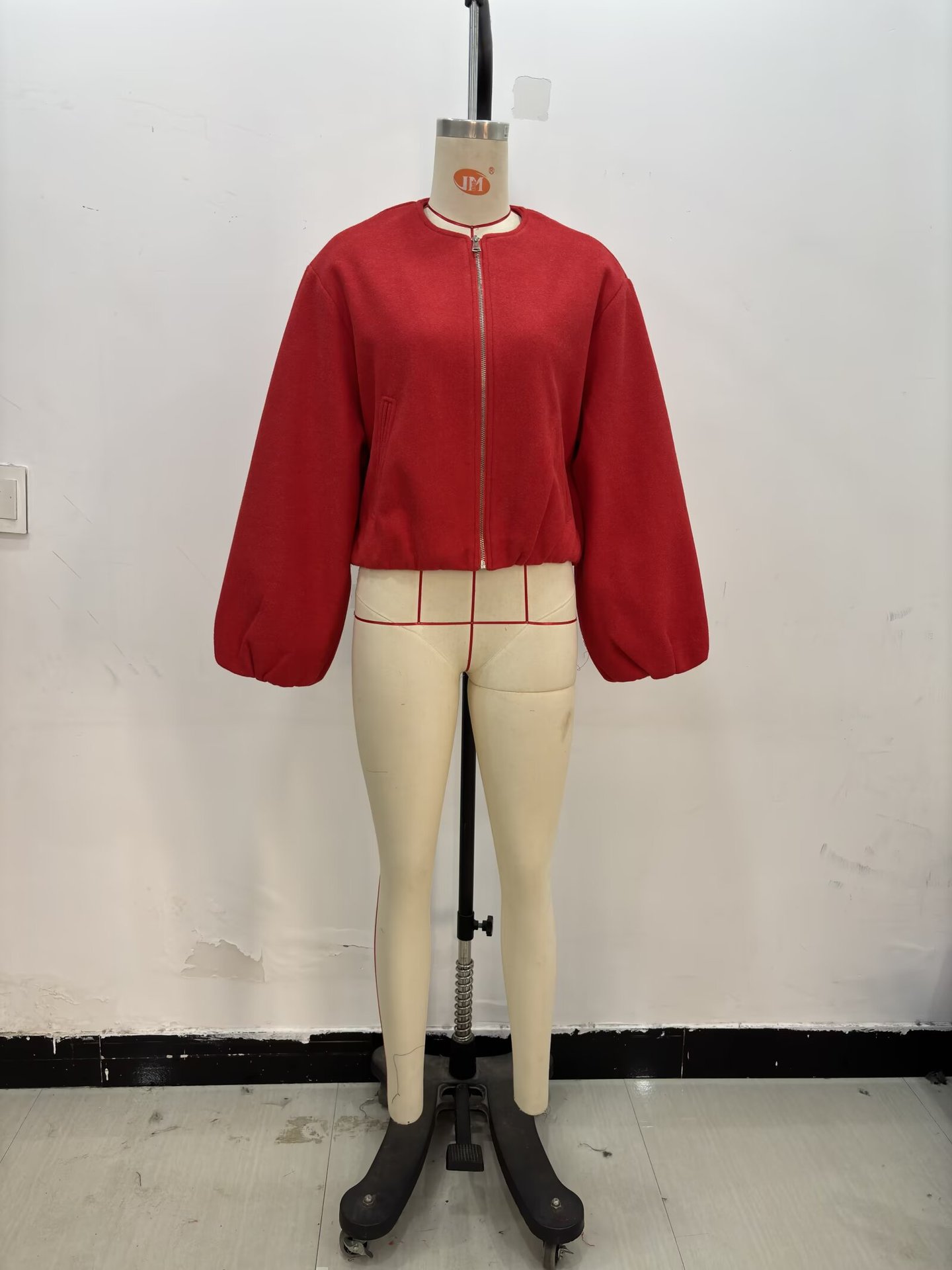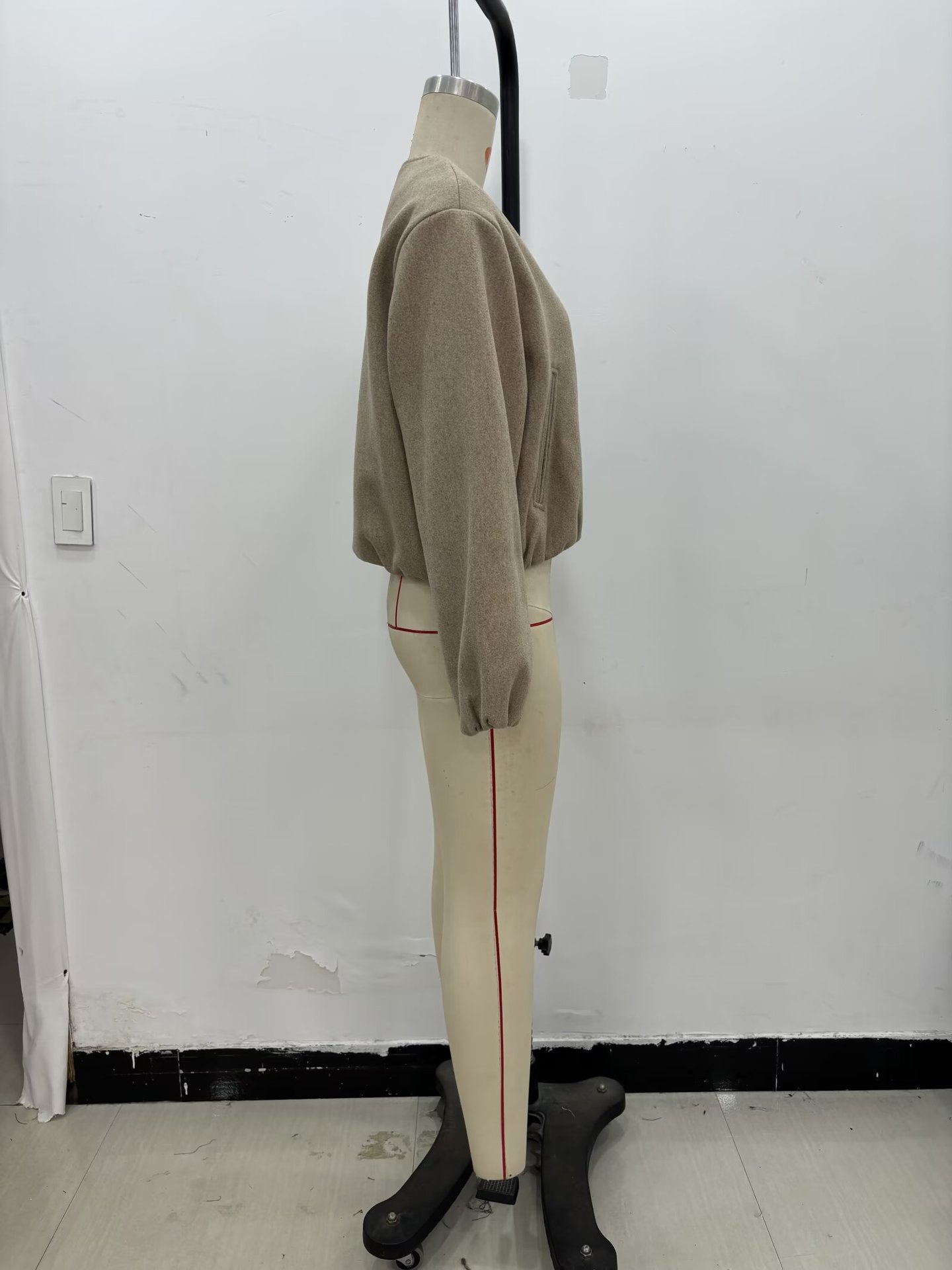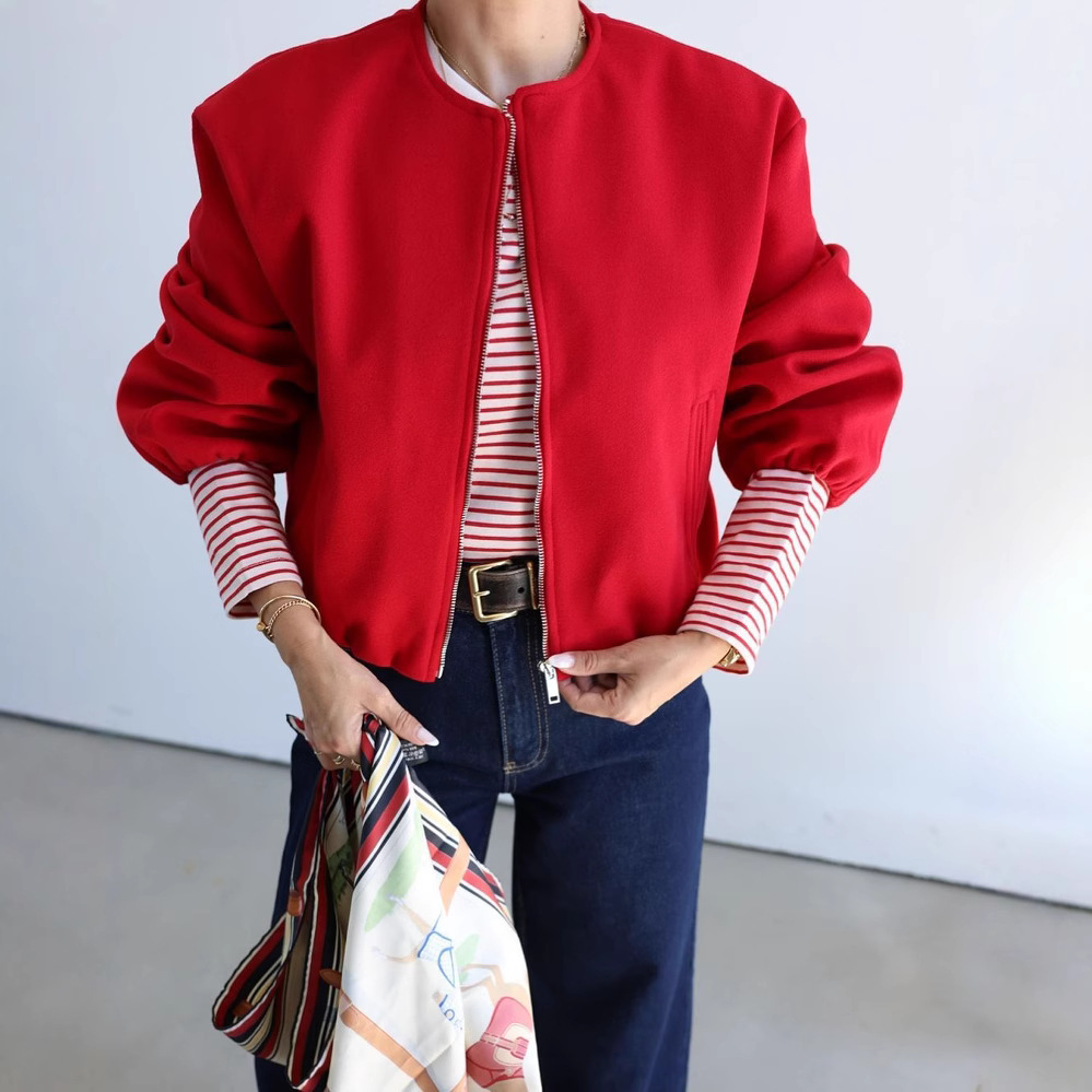 Внешняя торговля 2025 осень-зима европейская и американская мода бомбер с круглым вырезом, декорированный молнией, мягкая текстура Z6867