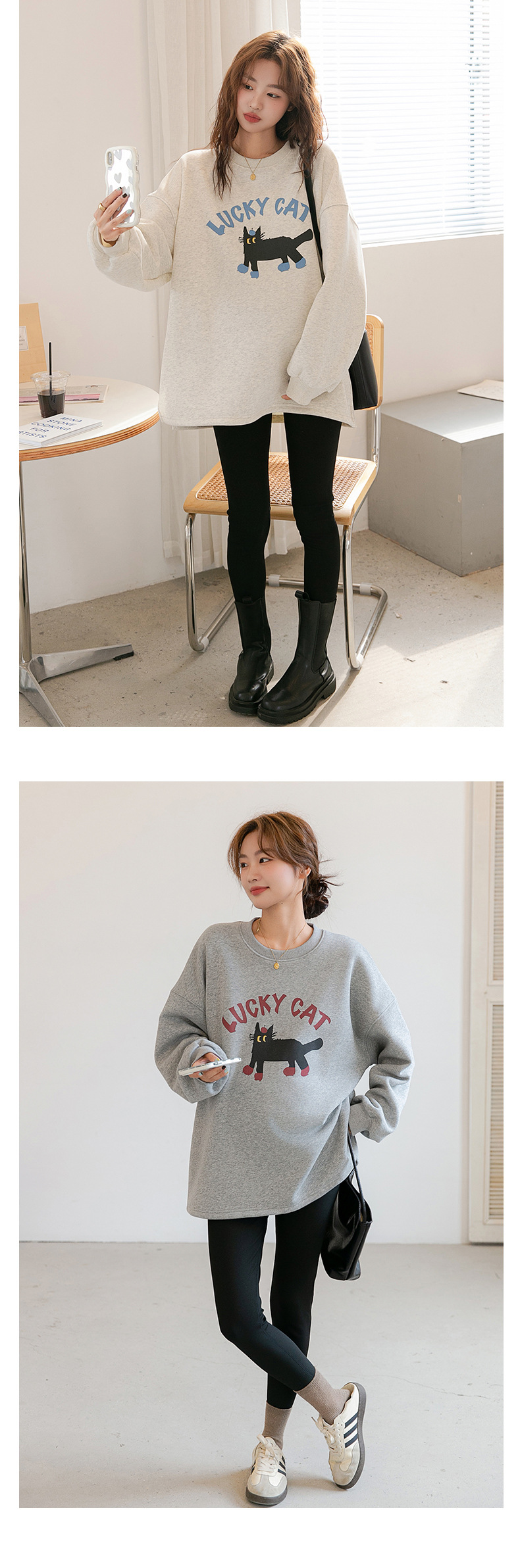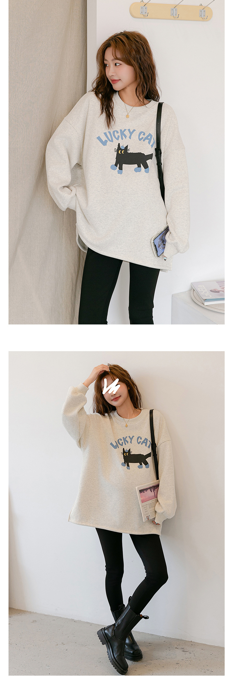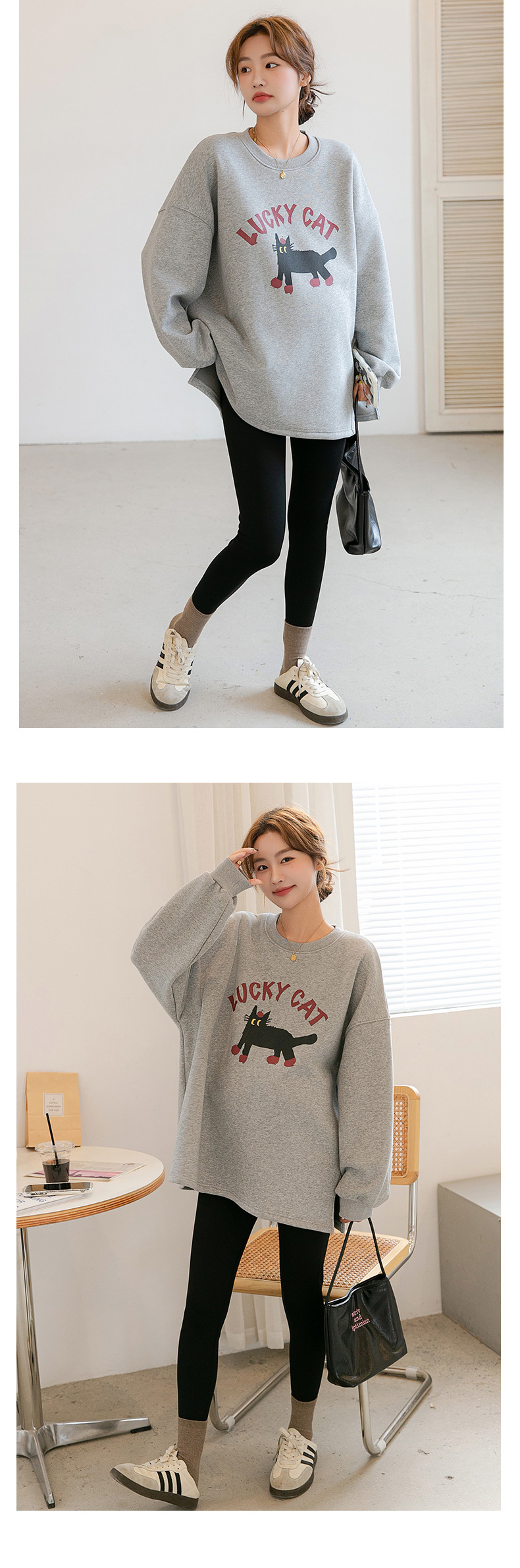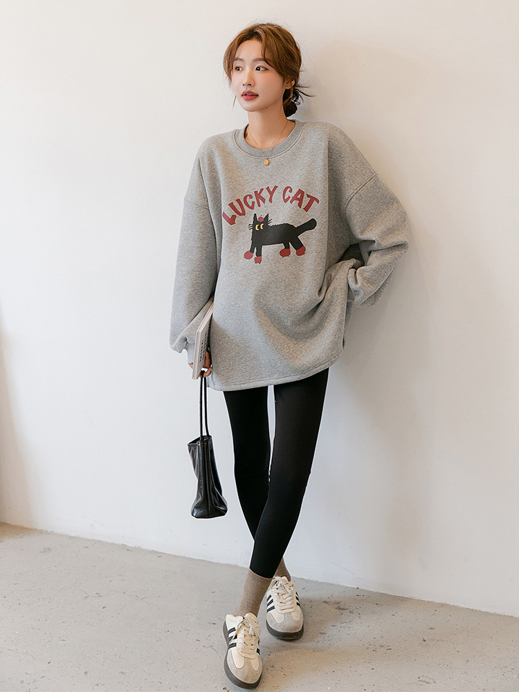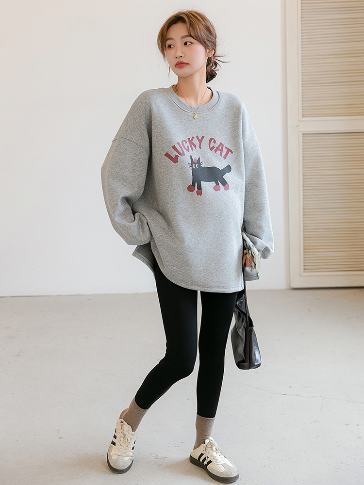 Толстовка с круглым вырезом на флисовой подкладке и принтом «Счастливый кот», одежда для беременных в корейском стиле, свободный повседневный пуловер с длинными рукавами, модный.