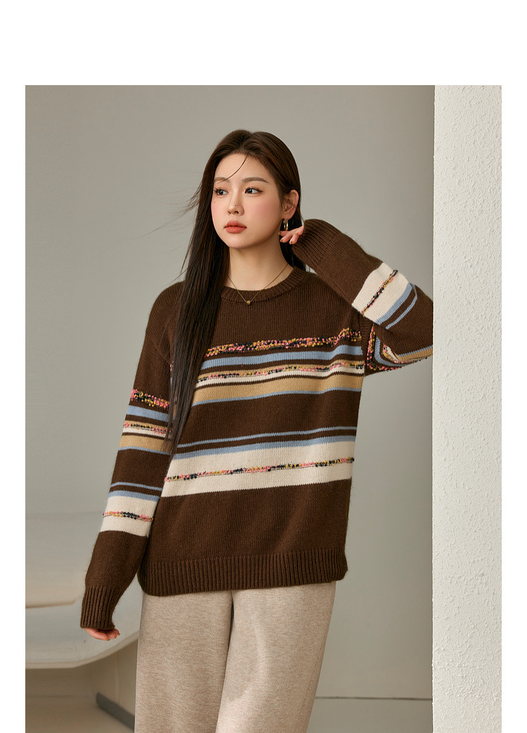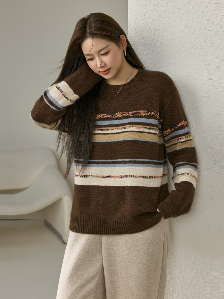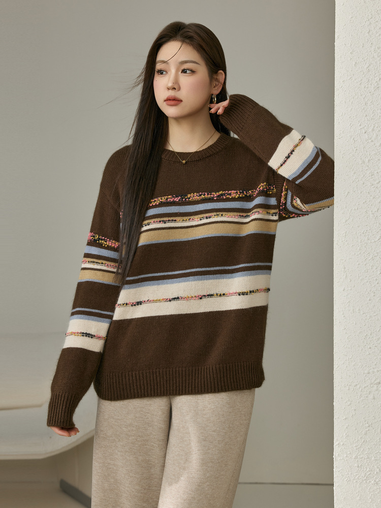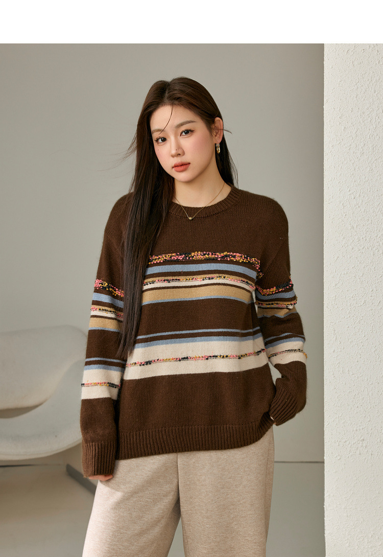 [Дизайн в полоску] Полосатый большой размер женский ретро ленивый дикий свитер жирный mm2024 зимний новый