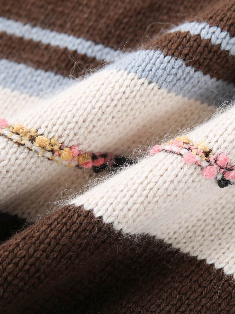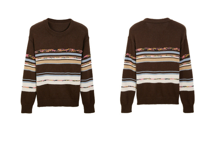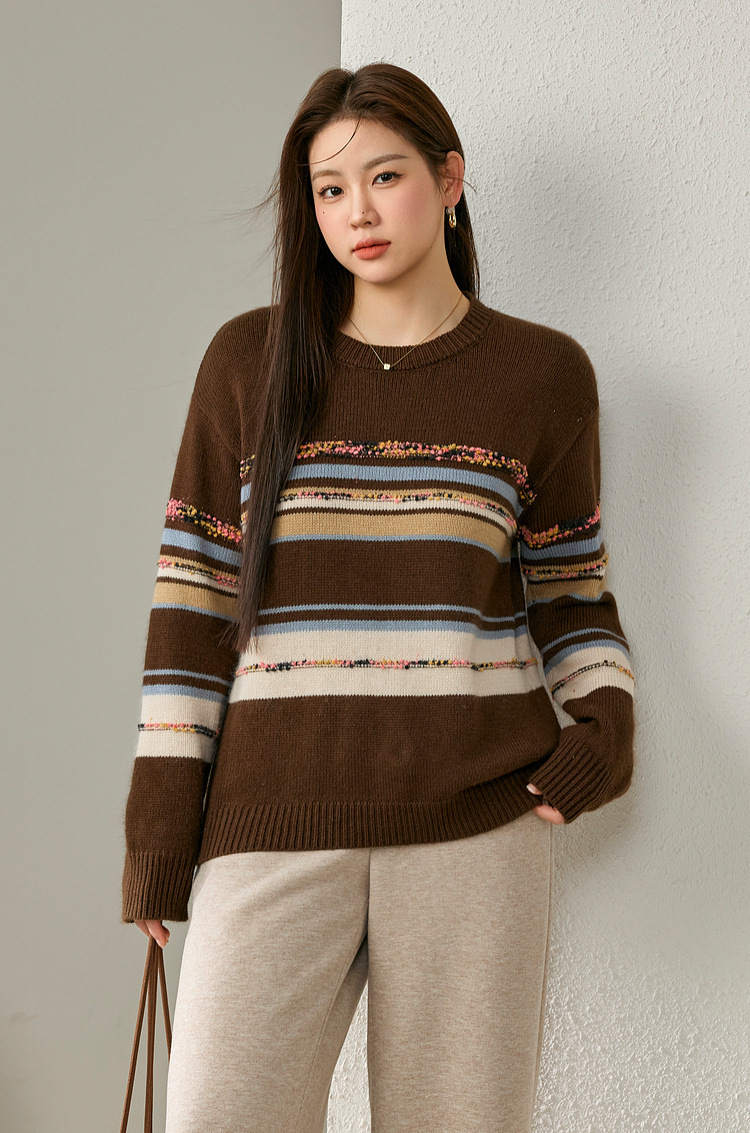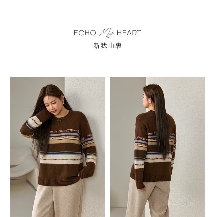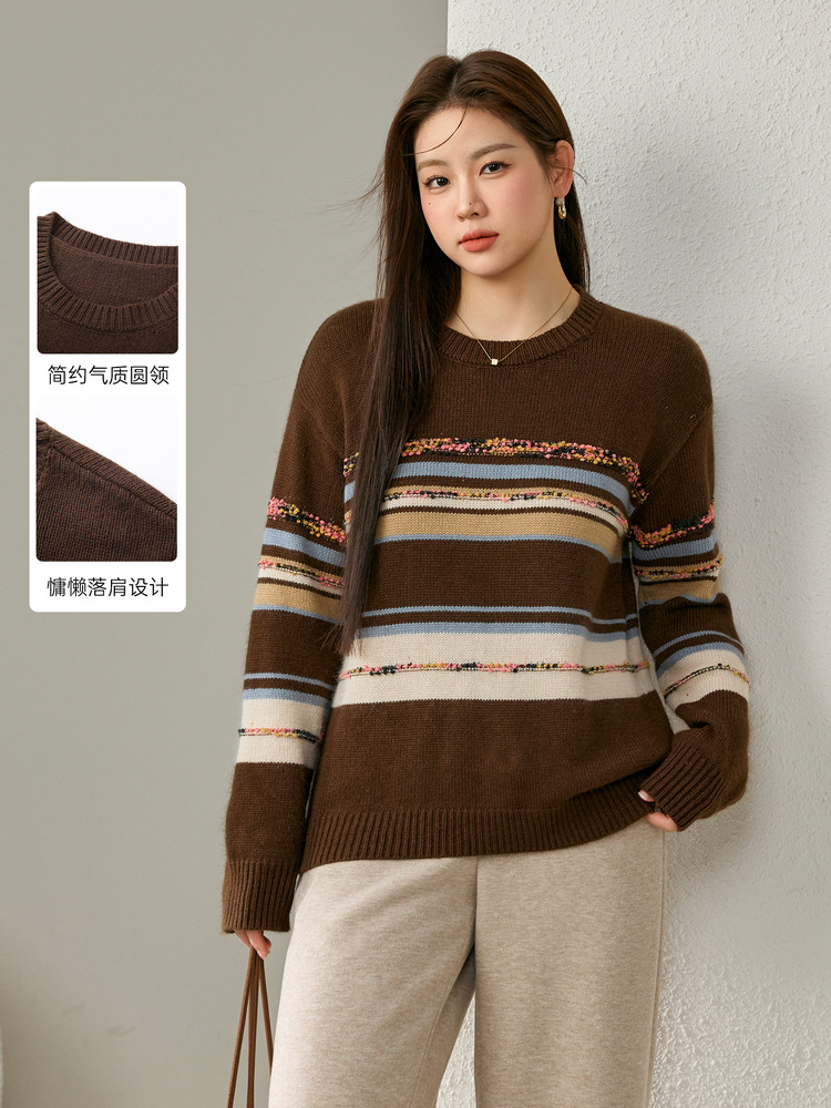 [Дизайн в полоску] Полосатый большой размер женский ретро ленивый дикий свитер жирный mm2024 зимний новый