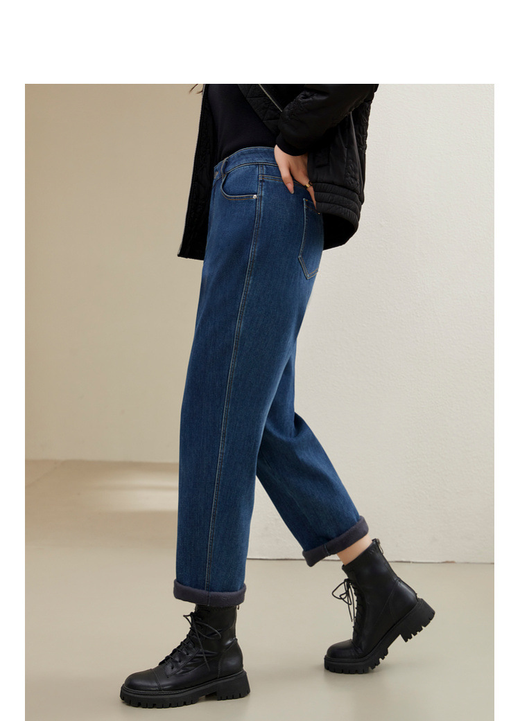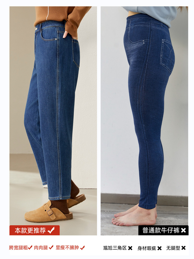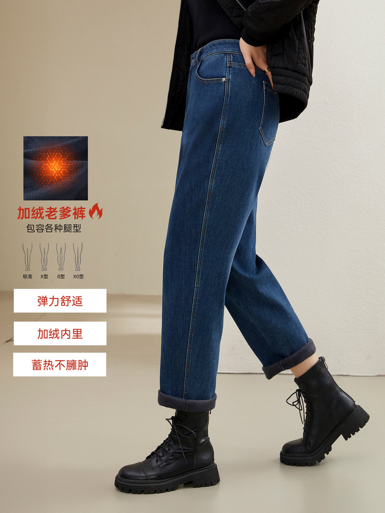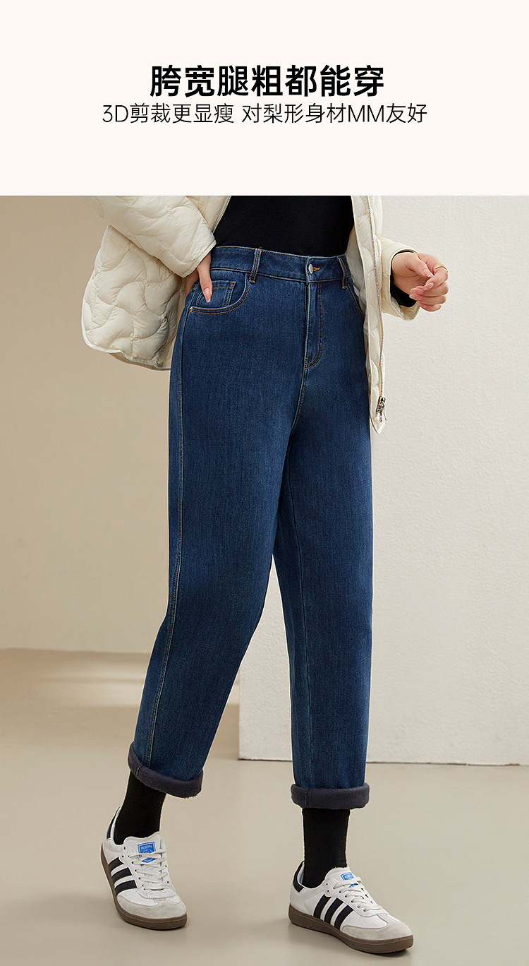 [Нулевые мягкие теплые штаны папы] Fertily Show большой размер женские дикие тонкие джинсы толстый мм зимний новый