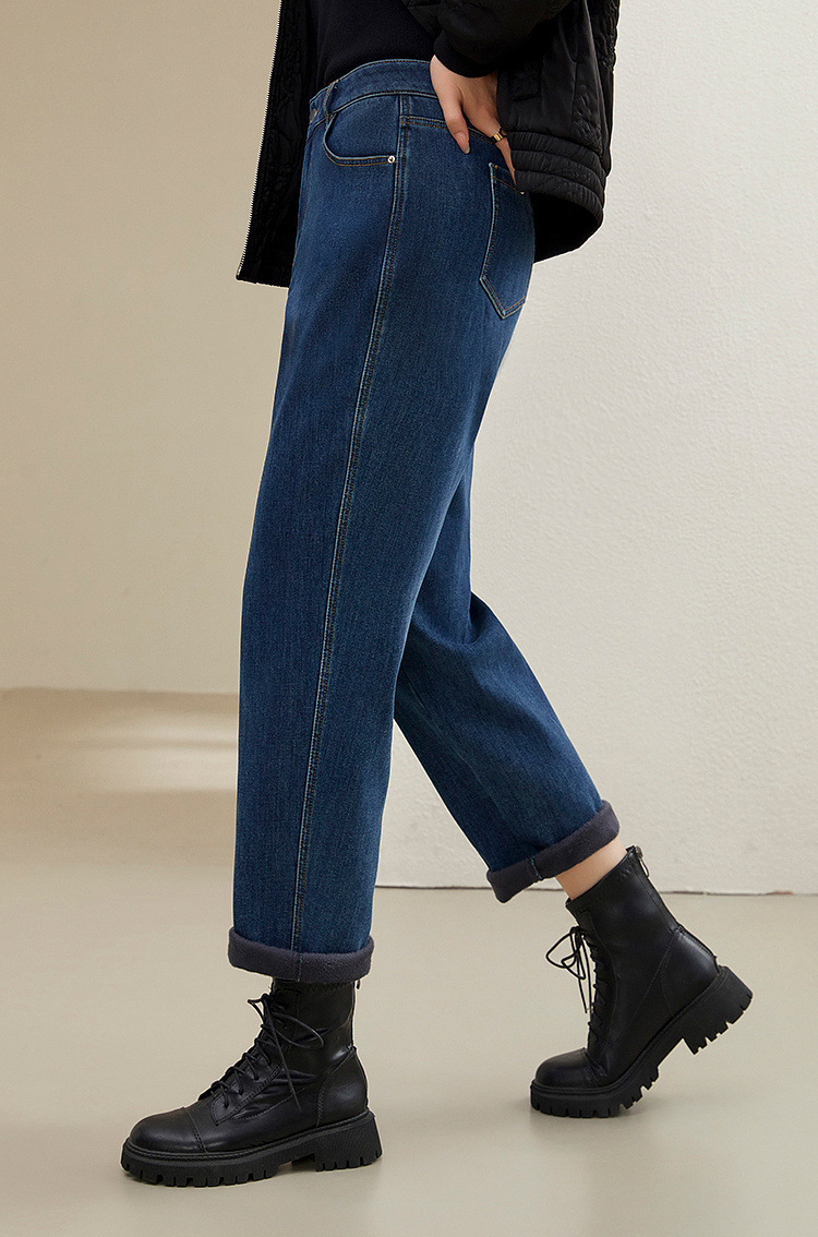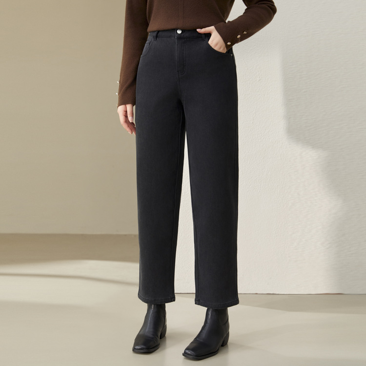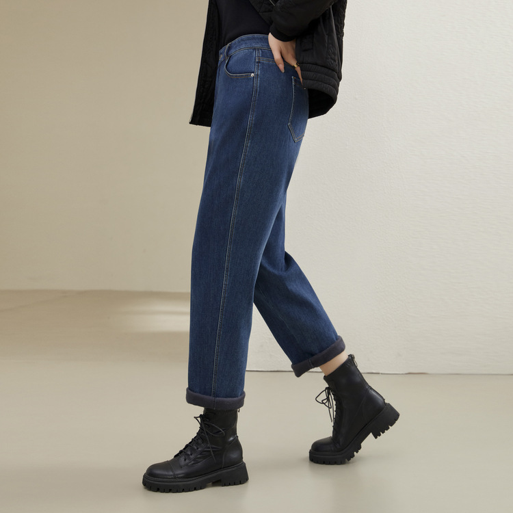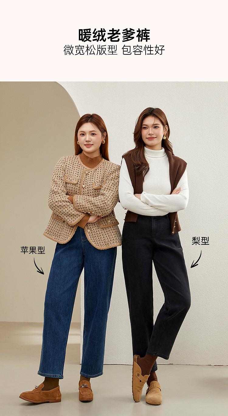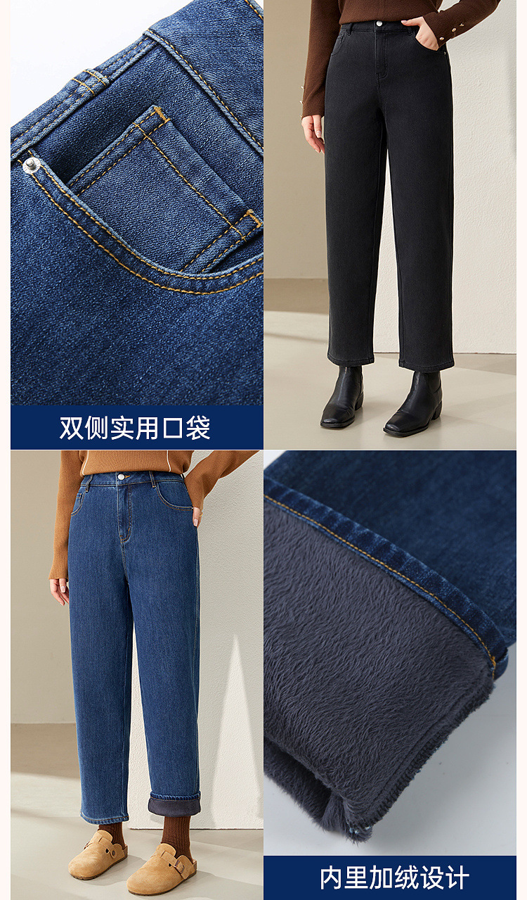 [Нулевые мягкие теплые штаны папы] Fertily Show большой размер женские дикие тонкие джинсы толстый мм зимний новый