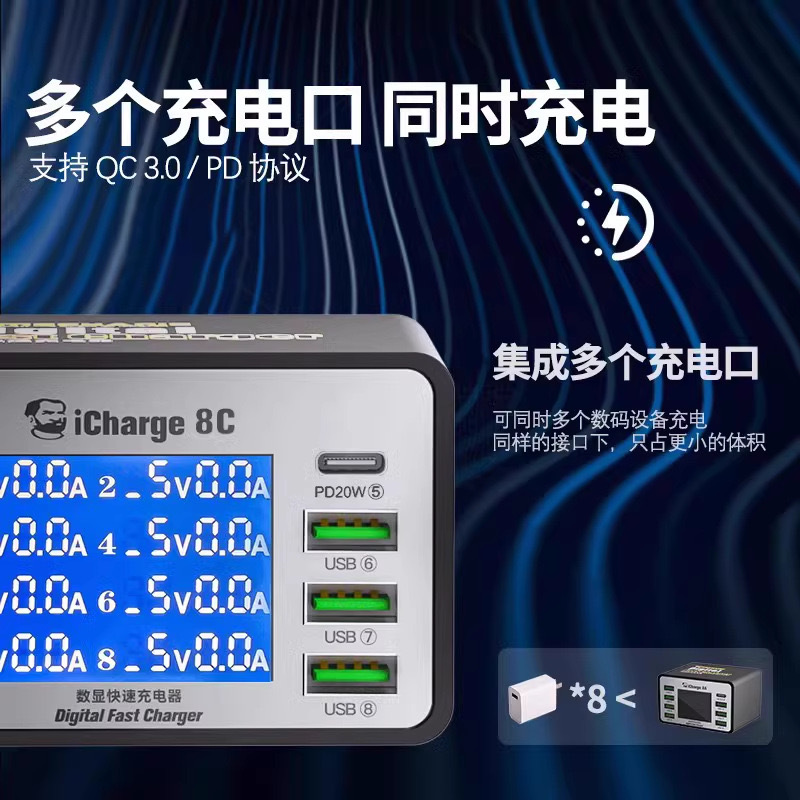 Парень по ремонту USB многопорное зарядное устройство для мобильного телефона с несколькими интерфейсами беспроводная супер быстрая зарядка Android планшета смарт-цифровой дисплей отверстие