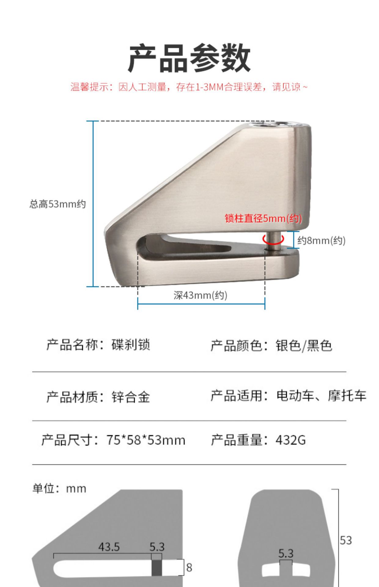 Мотоцикл тормозной замок электромобиль замок горный велосипед водонепроницаемый аккумуляторный тормозной диск противоугонного замка аксессуары