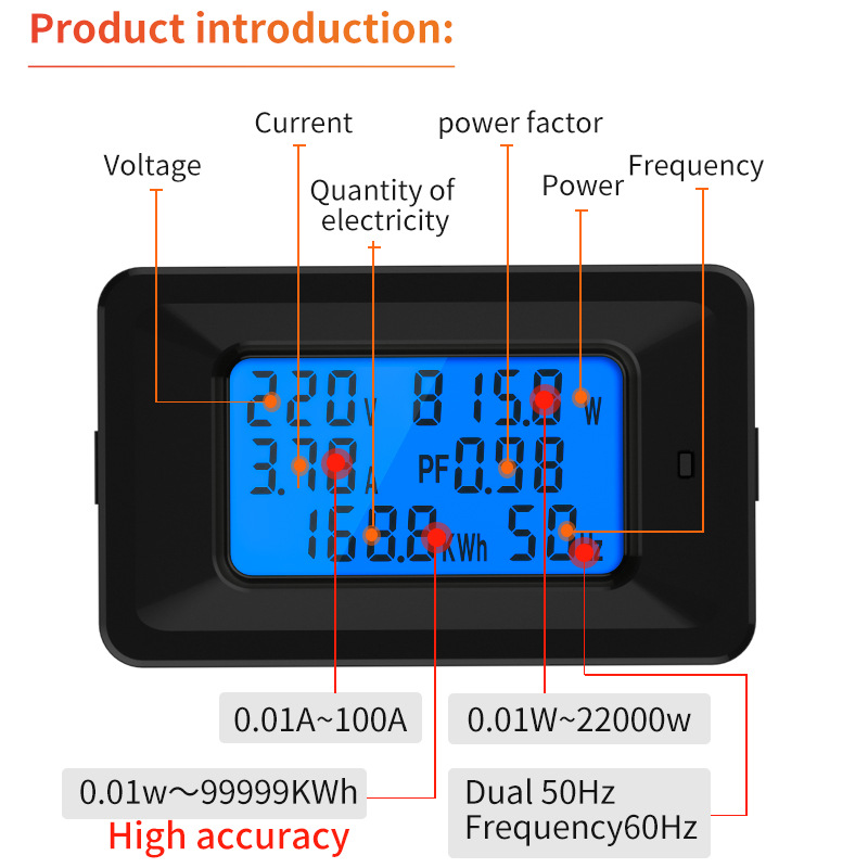 Универсальный электрический счетчик бытовой многофункциональный электронный счетчик переменного тока цифровой дисплей напряжения тока Частотный монитор мощности