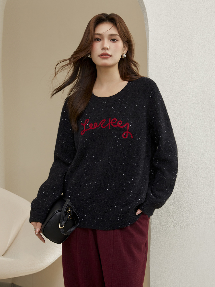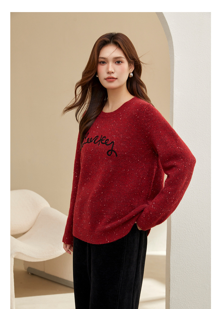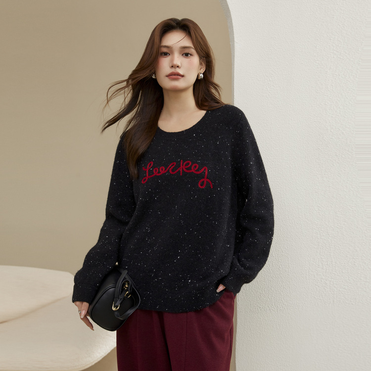 Слепое шоу большой размер женской модной модной тенденции дикий округлый воротник ленивый тощий свитер жирный mm2024 зимний новый