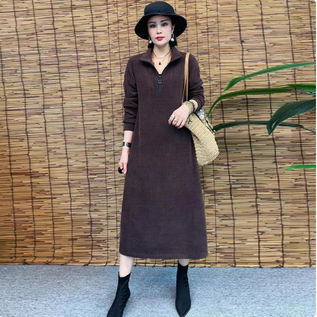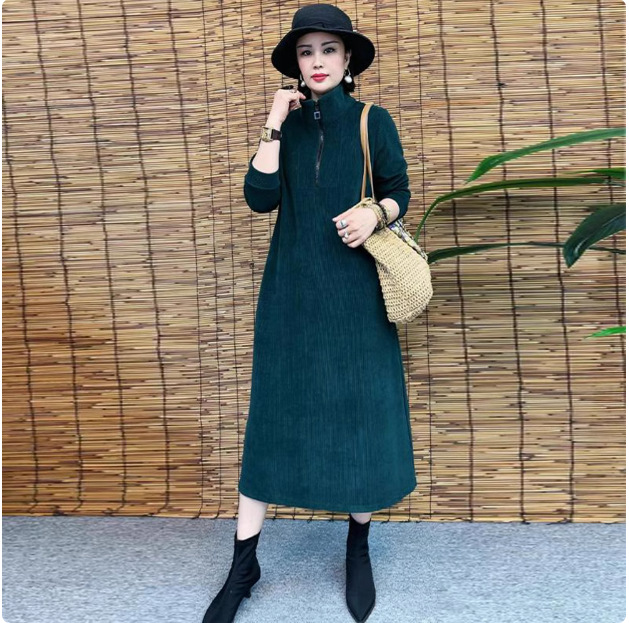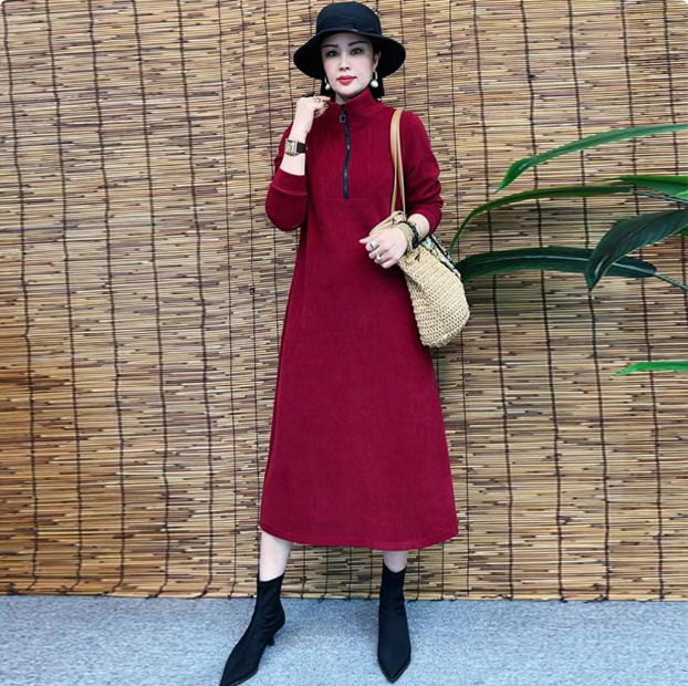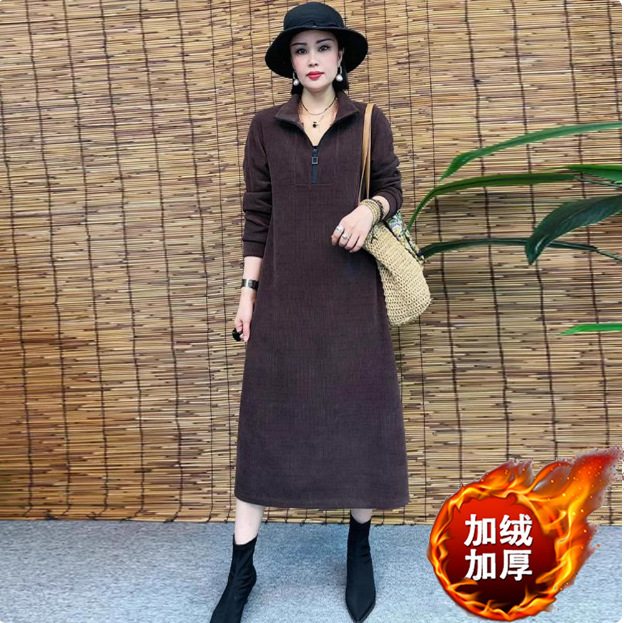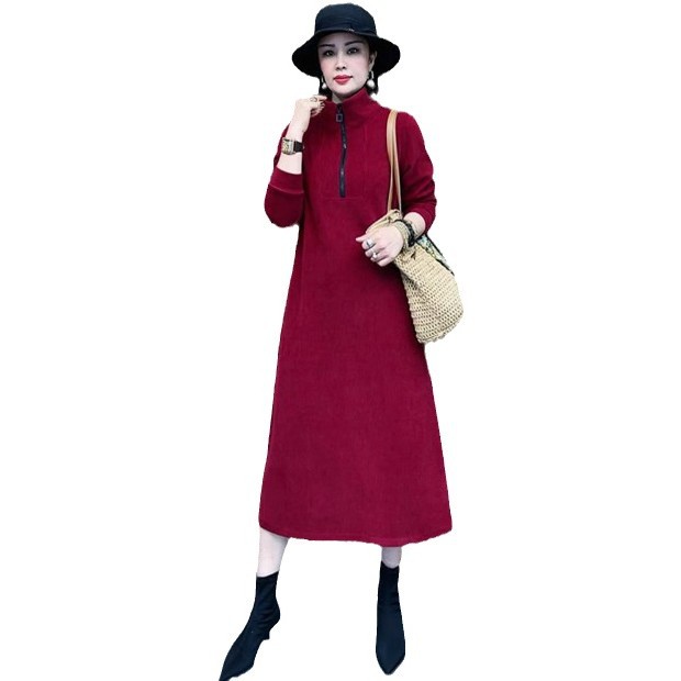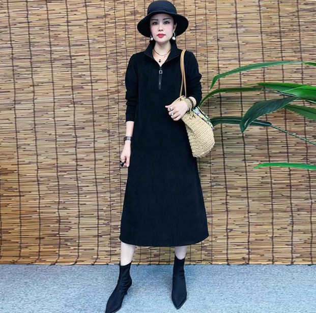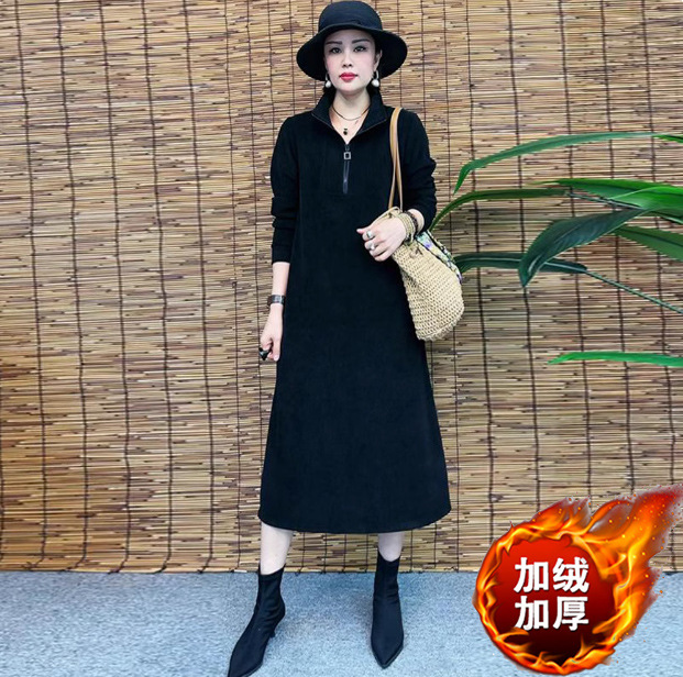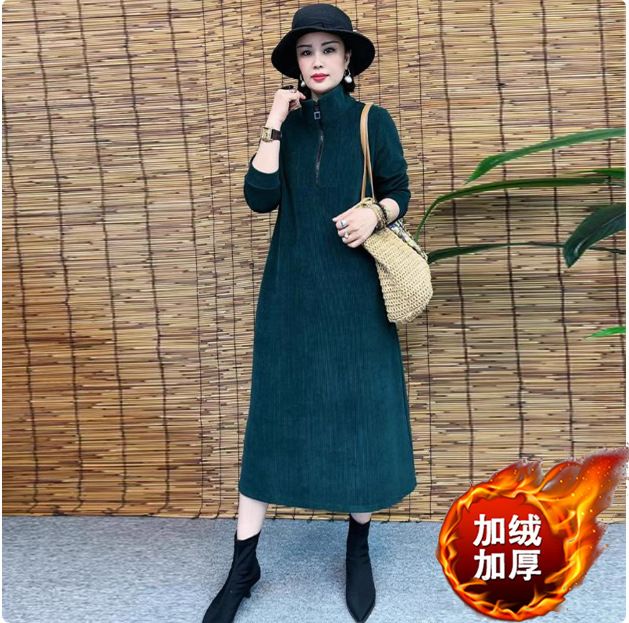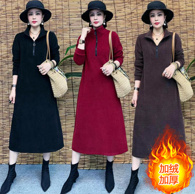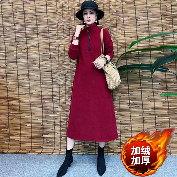 Толстая и бархатная зимняя мода новое платье тонкое темпераментное платье с длинными рукавами осенью и зимой свободная иностранная юбка средней и длинной