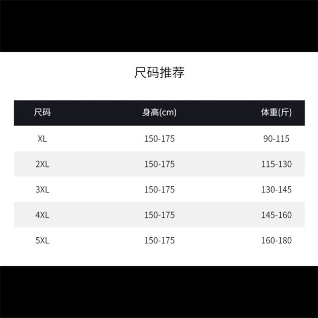 Рекомендуется XL 45-57.5kg; Рекомендуется 2XL 57.5-65kg; Рекомендуется 3XL 65-72.5kg; Рекомендуется 4XL 72.5-80kg; Рекомендуется 5XL 80-90kg