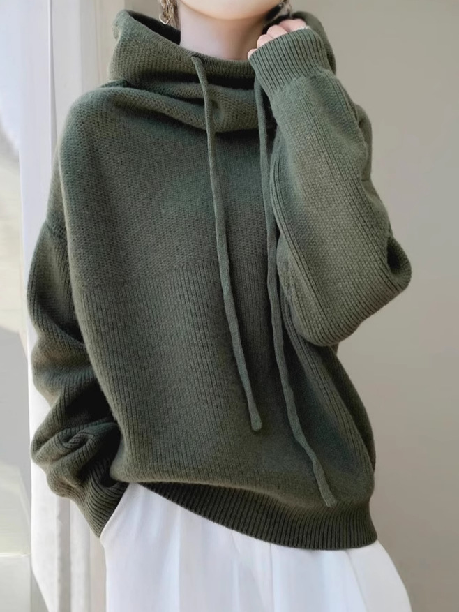 Трансграничный европейский утолщенный трикотаж с воротником для женщин, осень-зима 2024, новый стиль, универсальный трикотаж с длинными рукавами в ленивом стиле для женщин