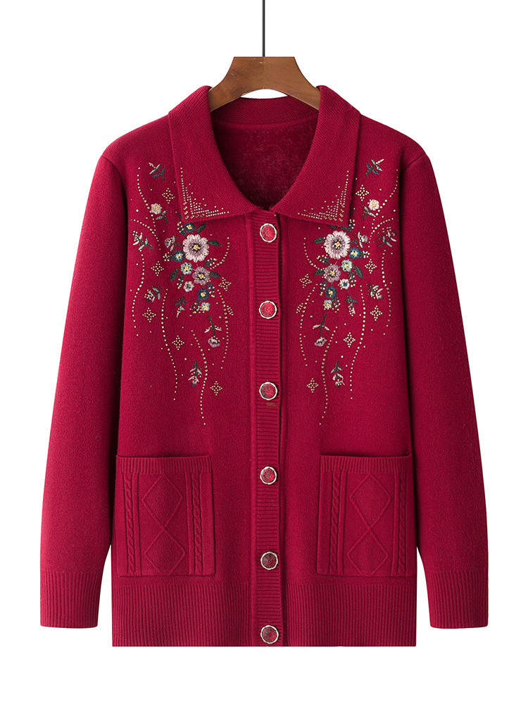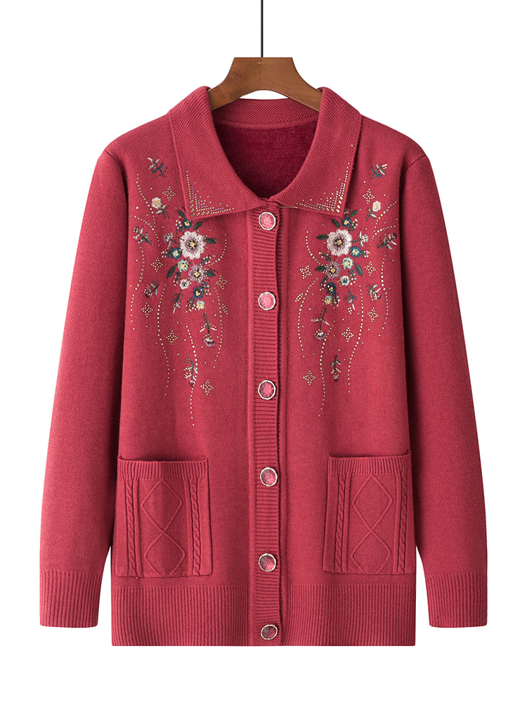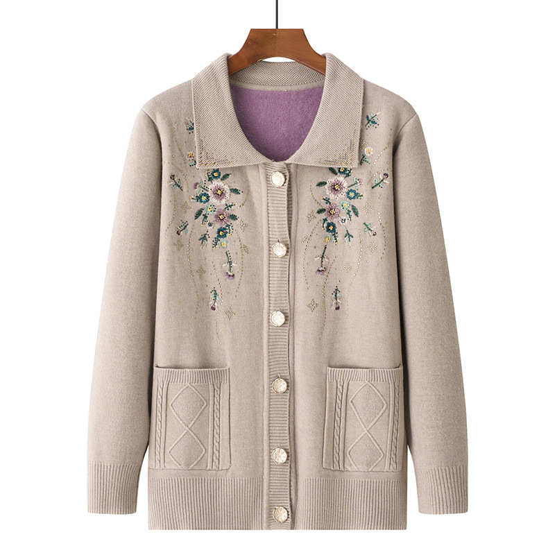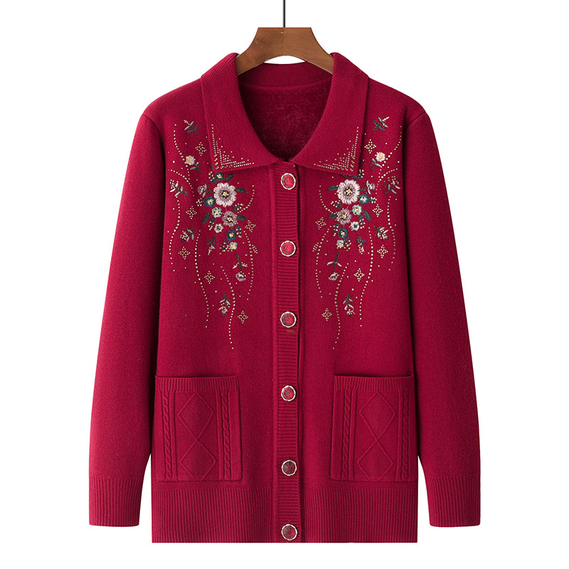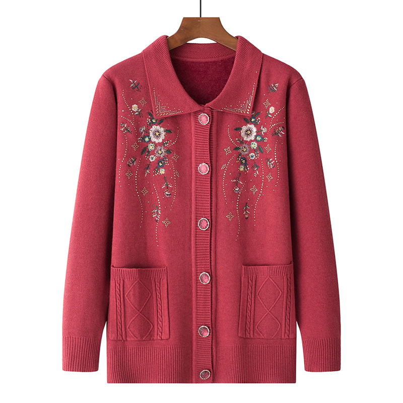 Бабушка осенний свитер женский средний и пожилой осенне-зимний вязаный пиджак новая мама с длинными рукавами кардиган
