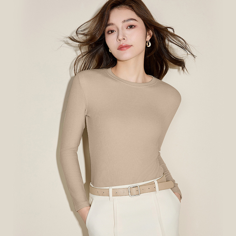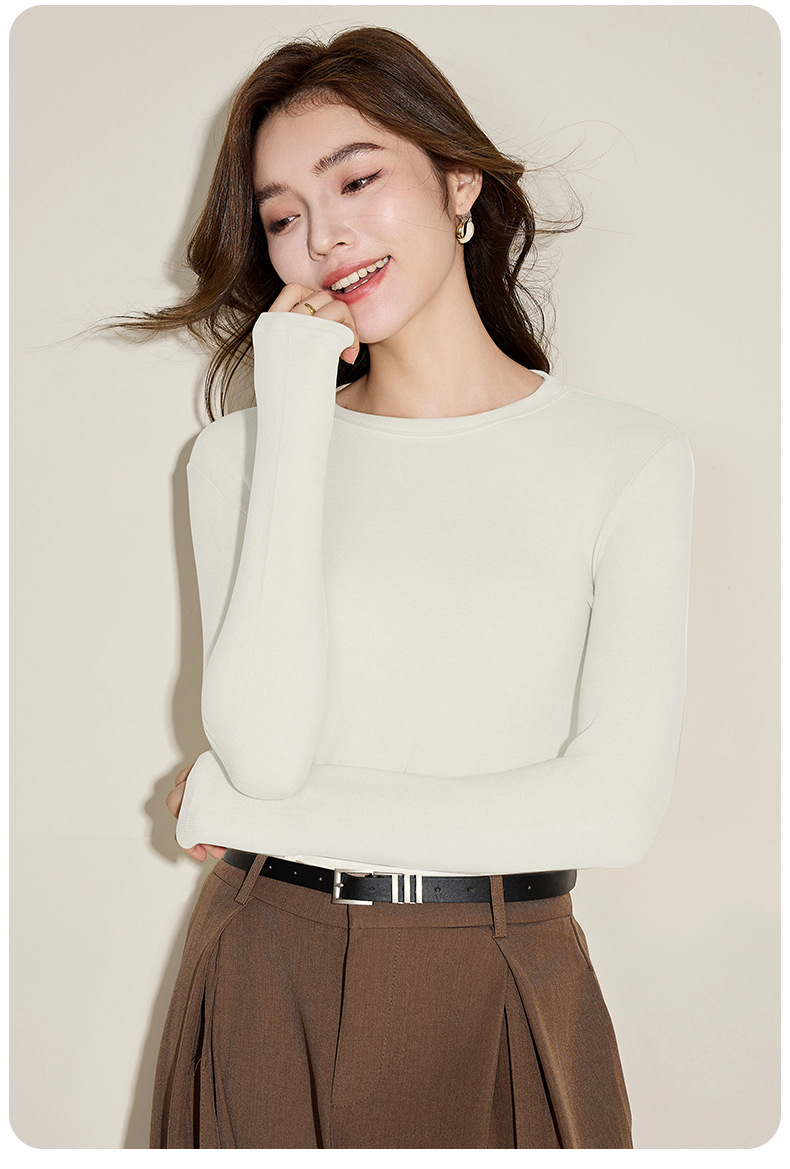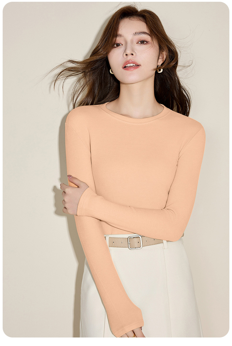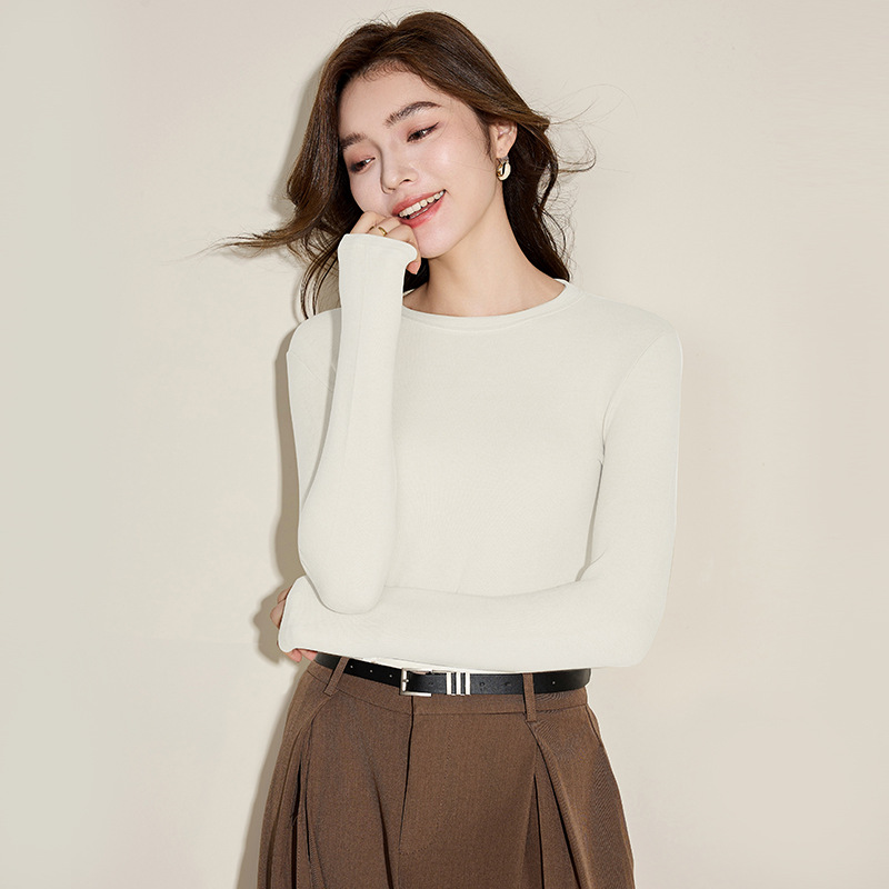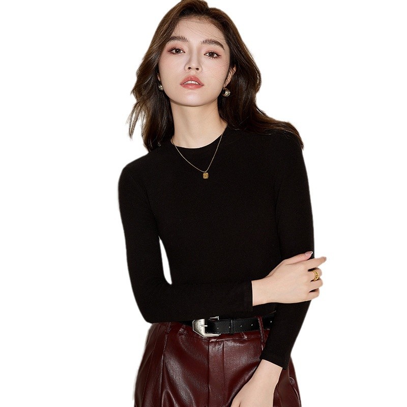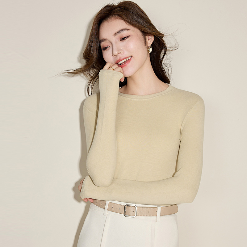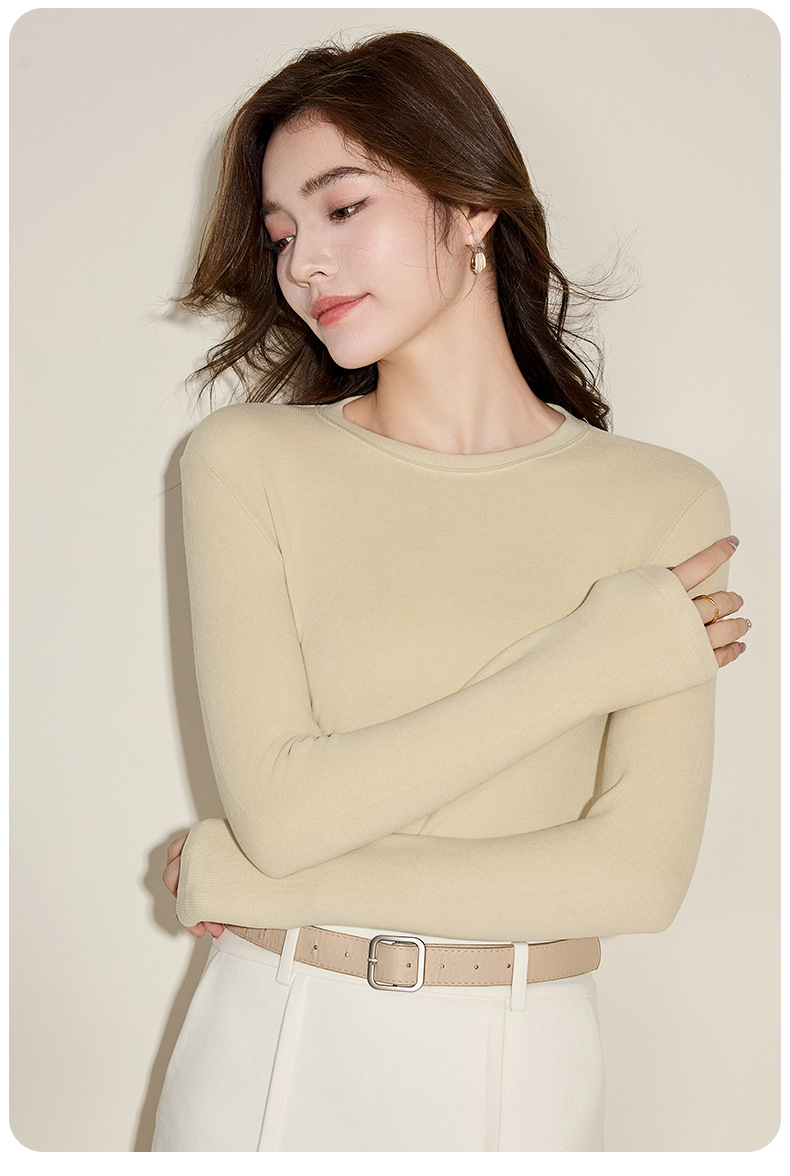 Осенняя и зимняя кашемировая рубашка с круглым вырезом, женская стройная футболка с длинными рукавами большого размера