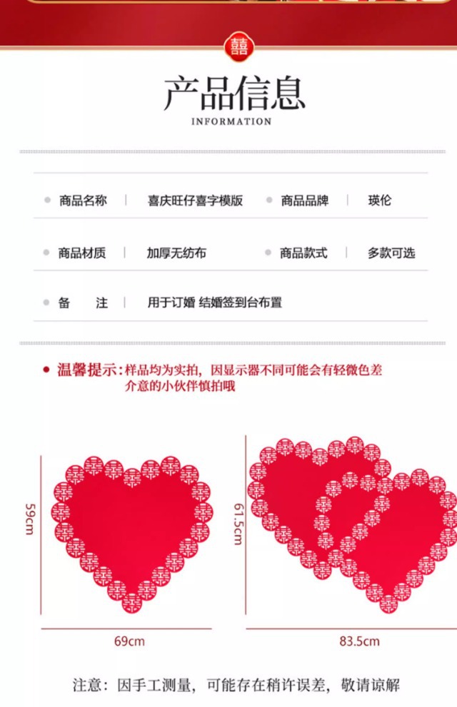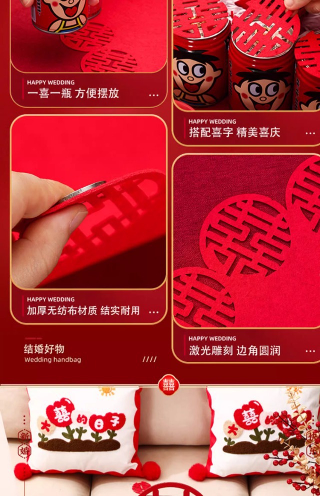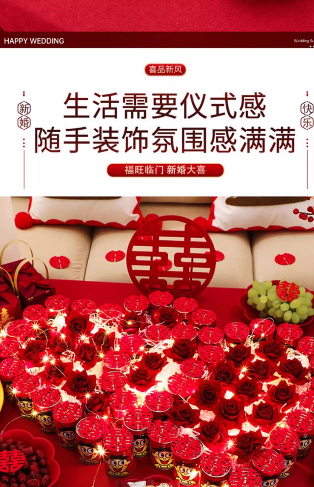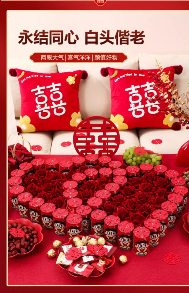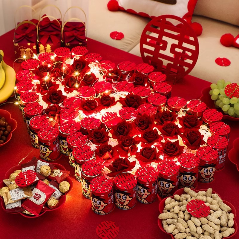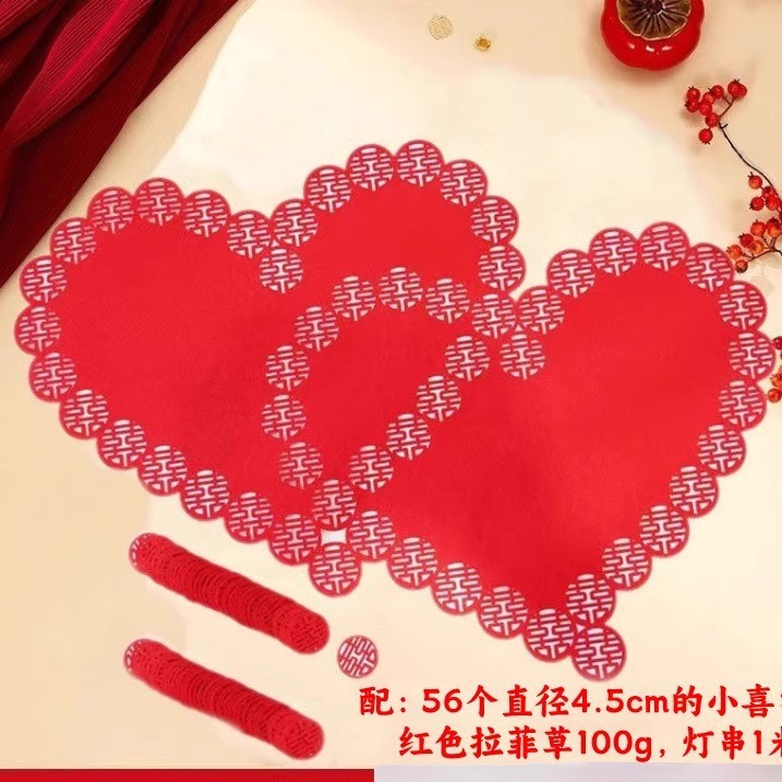 Двойной шаблон для позирования сердца + 56 счастливых персонажей, подходит для 145 мл маленькой банки Ванзукай; Двойной шаблон для позирования сердца + 56 счастливых слов + 100 г рафии + 1m легкая струна подходит для 145 мл маленькая банка Wangzai; Шаблон дисплея в форме сердца + 38 символов «двойное счастье», подходит для небольших банок Wangzai объемом 145 мл.; Шаблон для оформления в форме сердца + 38 символов «двойное счастье» + 100 г рафии + 1m гирлянда, подходит для мини-банок Wangzai объемом 145 мл.; Шаблон для позиционирования двойного сердца + 42 счастливых персонажа, подходит для большой банки Wangzai объемом 245 мл.; Шаблон дисплея в форме сердца + 22 символа «двойное счастье», подходит для больших банок Want Want объемом 245 мл.; 100 г рафии + 1m гирлянды; Акриловая модель с двойным счастьем: диаметр около 22 см.; Пластиковая модель с двойным счастьем: диаметр около 21 см.; 10 упаковок красных лепестков [около 1000 штук]; Флизелиновая фруктовая тарелка Юаньси, 30 шт.
