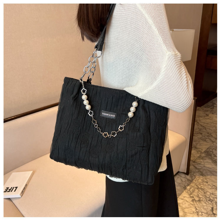 Уникальная сумка-тоут из туманного шифона для женщин, новинка 2023 года, с жемчужной цепочкой, вместительная сумка через плечо, Чанчжэнь