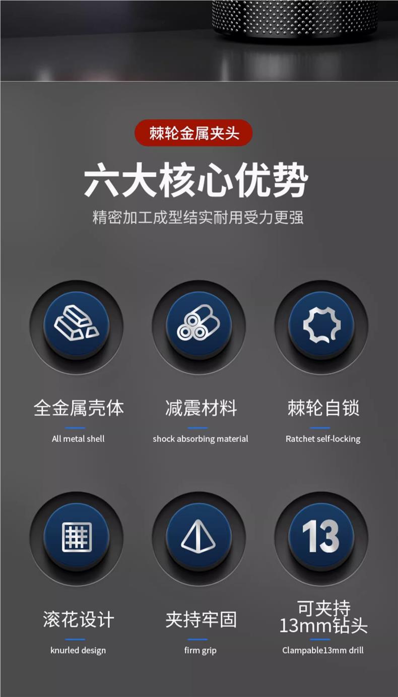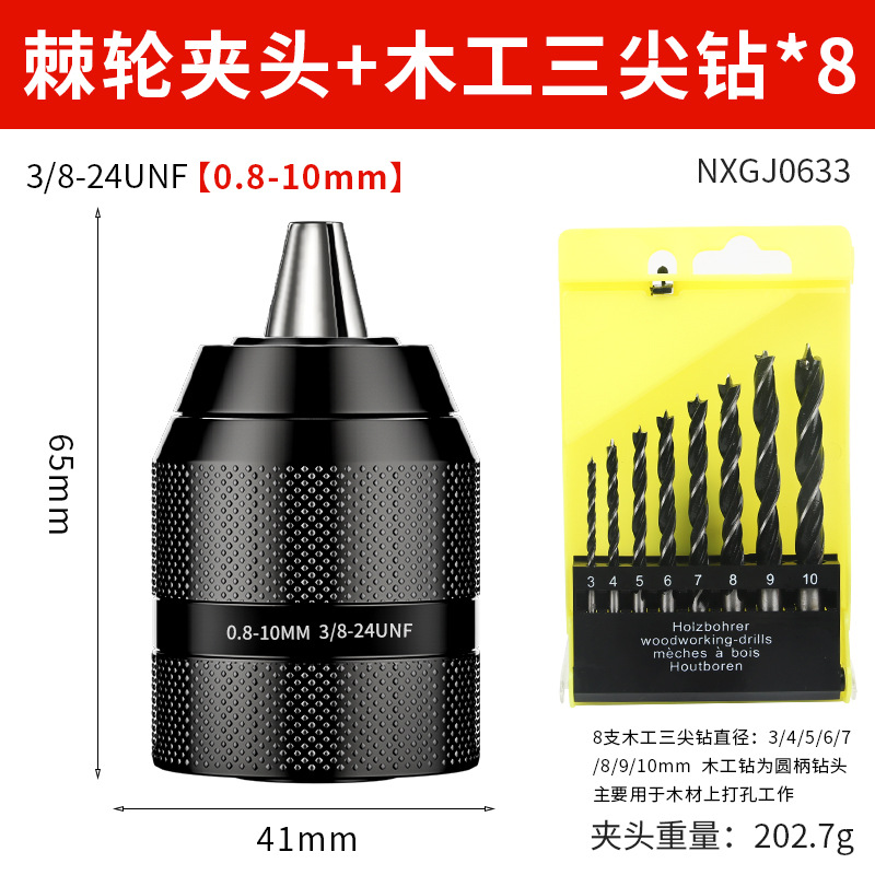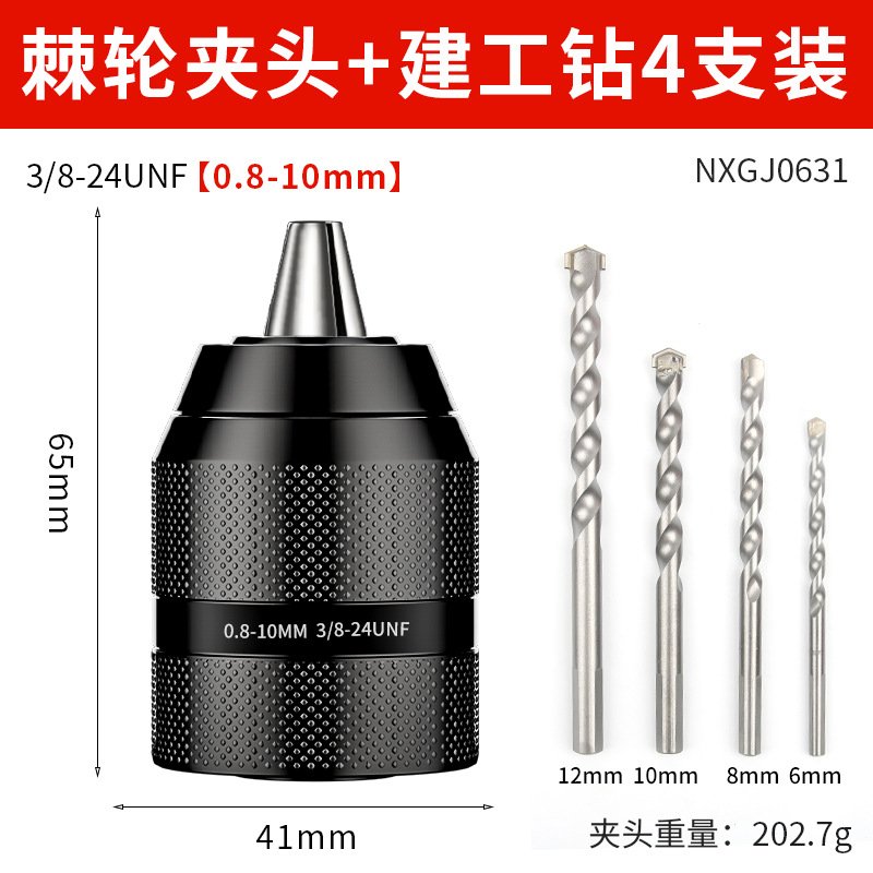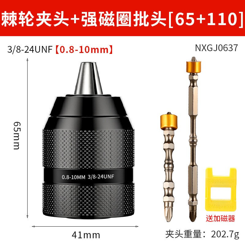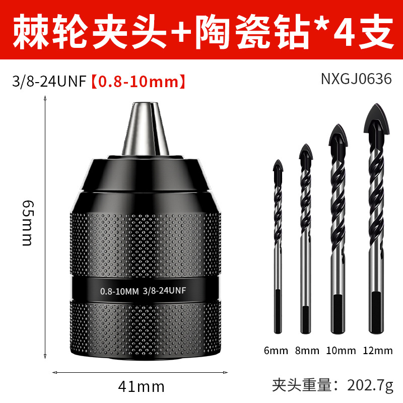 Недавно модернизированный металлический патрон [0,8-10 мм]; Недавно модернизированный металлический патрон [1,5-13 мм]; Цельнометаллический патрон [0,8-10] + 2 бита с магнитной катушкой; Цельнометаллический патрон [0,8-10] + 4 противоскользящих насадки; Цельнометаллический патрон [0,8-10] + 4 ударных насадки; Цельнометаллический патрон [0,8-10] + 4 строительных дрели; Цельнометаллический патрон [0,8-10] + 4 сверла для керамической плитки; Цельнометаллический патрон [0,8-10] + 9 смешанных спиральных сверл.; Цельнометаллический патрон [0,8-10] + 16 смешанных сверл.; Цельнометаллический патрон [0,8-10] + 13 спиральных сверл с титановым покрытием; Цельнометаллический патрон [0,8-10] + 8 трехточечных сверл для деревообработки; Цельнометаллический патрон с храповым механизмом [0,8-10 мм] + стойка электрического ключа 3/8; Цельнометаллический патрон с храповым механизмом [1,5-13 мм] + стойка электрического ключа 1/2; Цельнометаллический патрон с храповым механизмом [1,5-13 мм] + сильная магнитная кольцевая насадка; Цельнометаллический патрон с храповым механизмом [1,5-13 мм] + новая сверхтвердая насадка; Патрон для ключей на 10 мм с ключом; Патрон для ключей на 13 мм; Ручной самозапирающийся патрон диаметром 13 мм.; Патрон для ключей на 16 мм