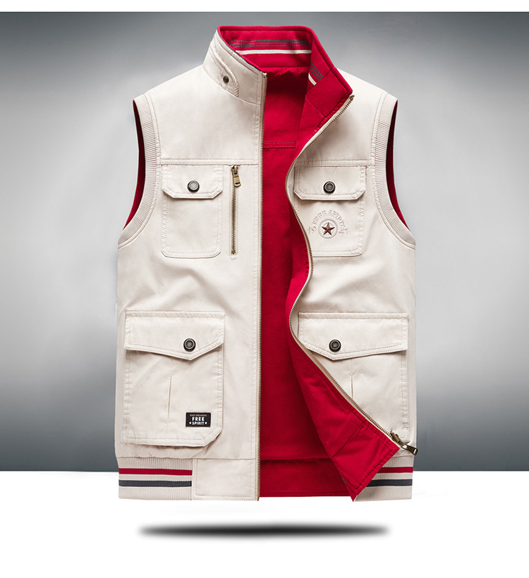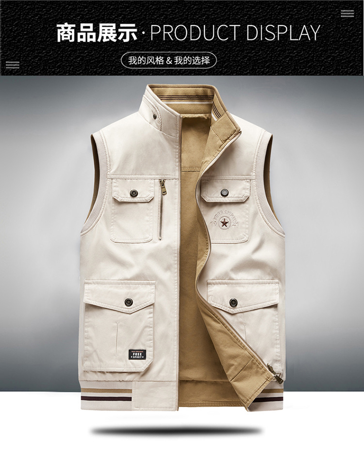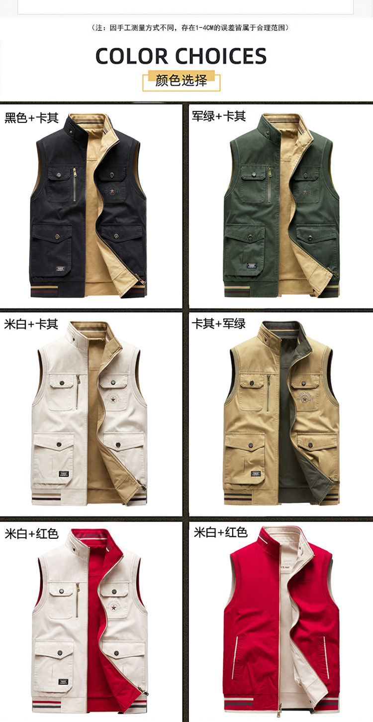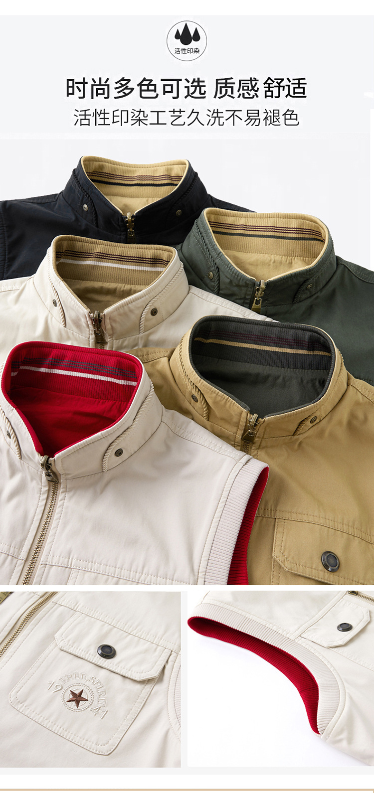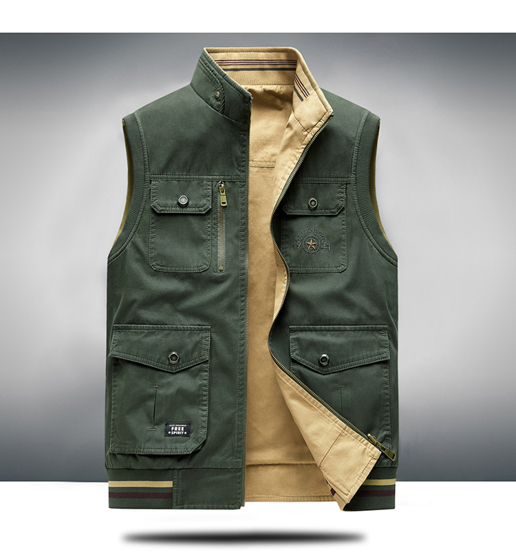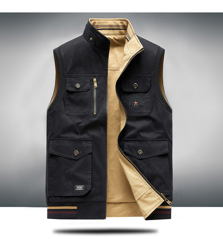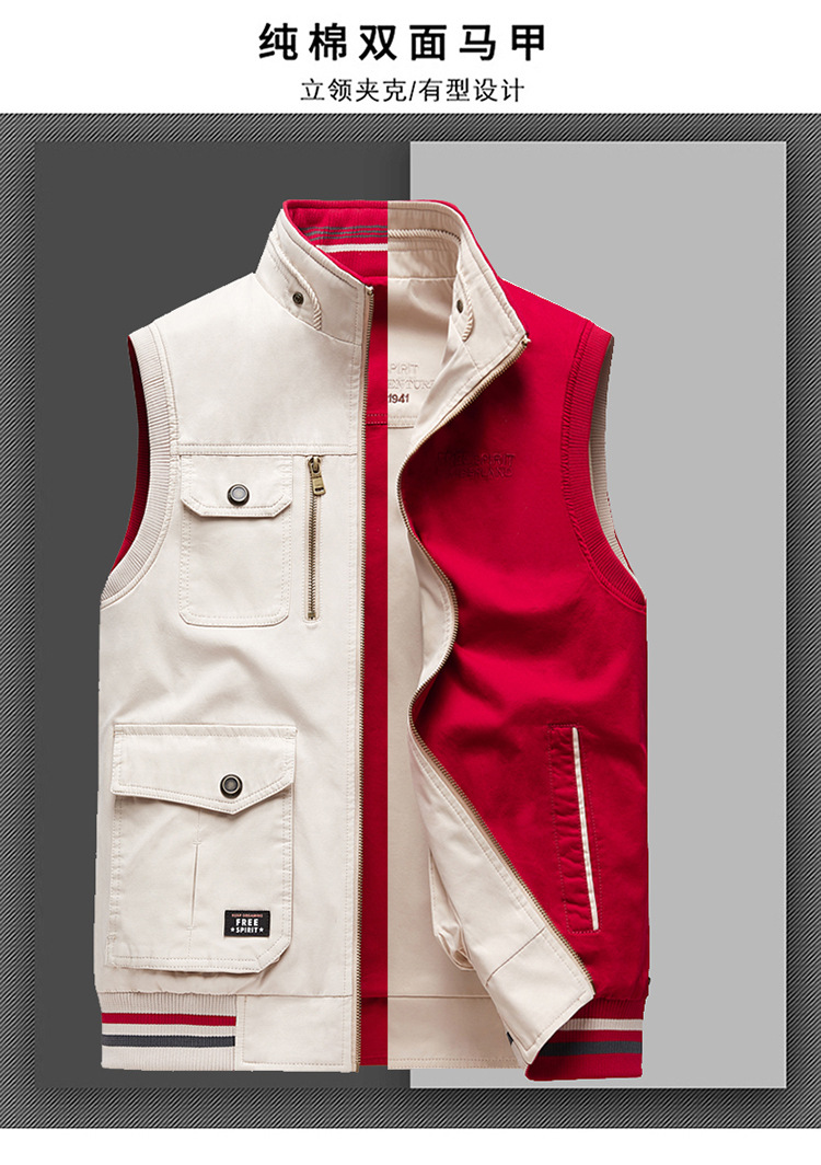 Весенне-осенний новый стильный двусторонний жилет, мужская верхняя одежда с несколькими карманами, жилет для среднего и пожилого возраста, свободная куртка без рукавов большого размера