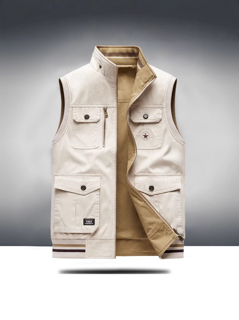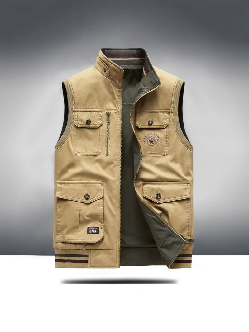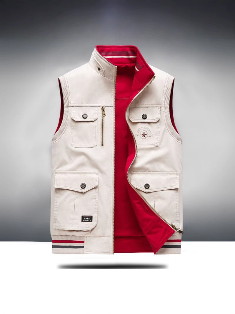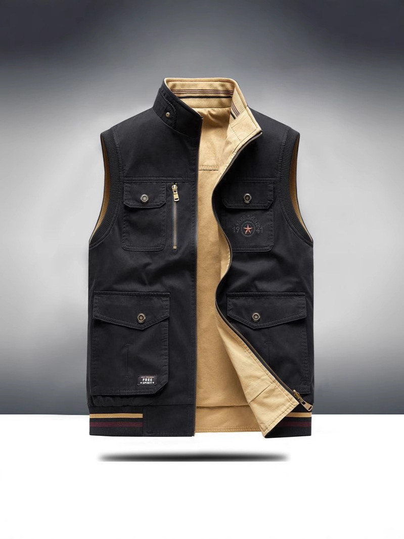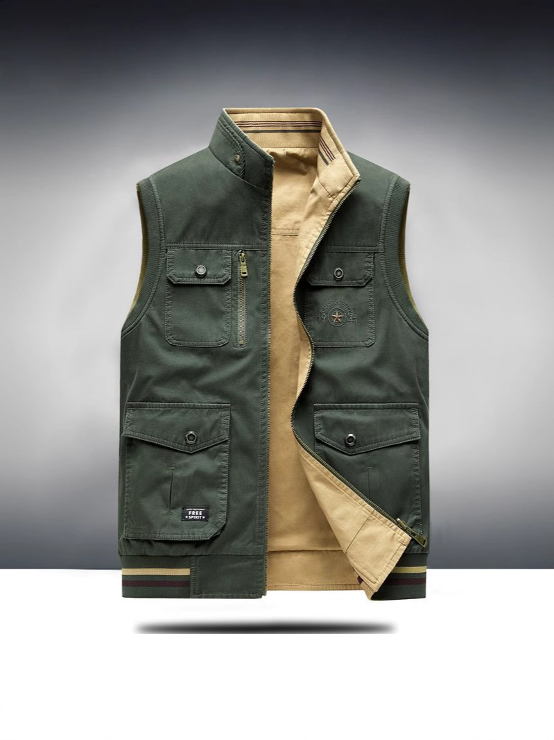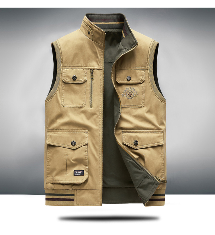 Весенне-осенний новый стильный двусторонний жилет, мужская верхняя одежда с несколькими карманами, жилет для среднего и пожилого возраста, свободная куртка без рукавов большого размера