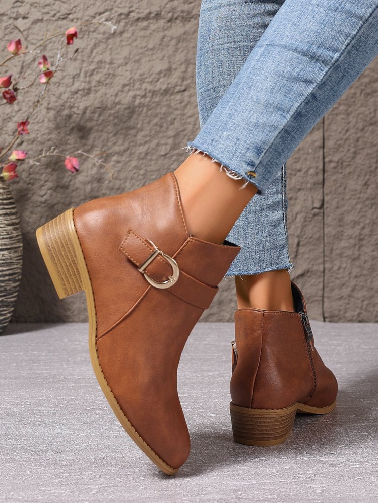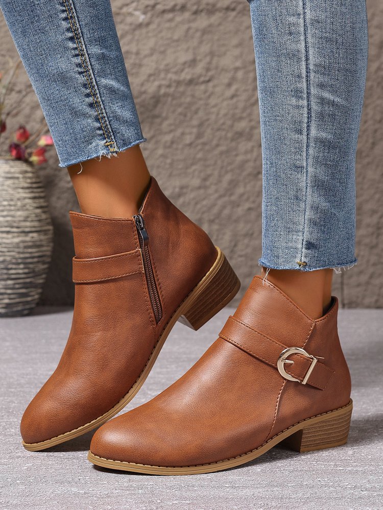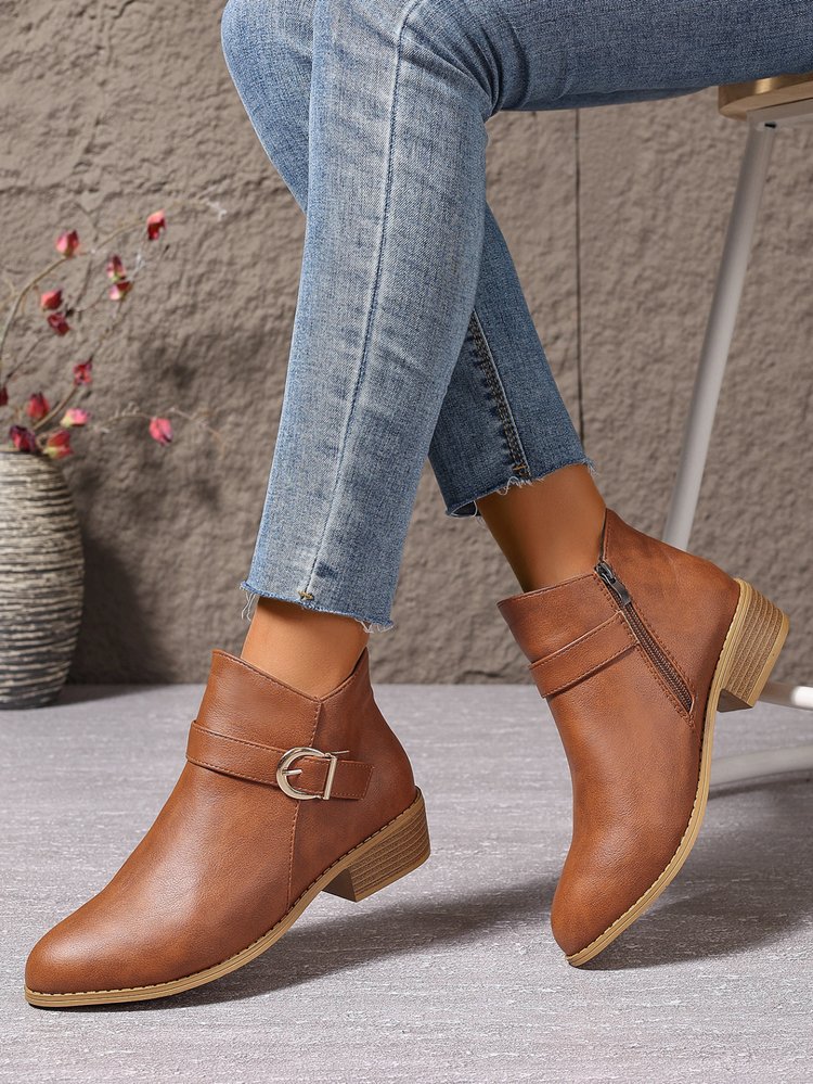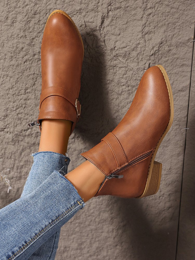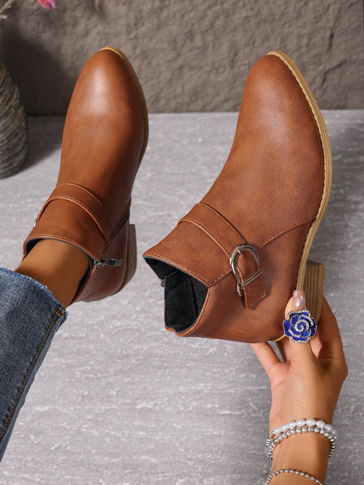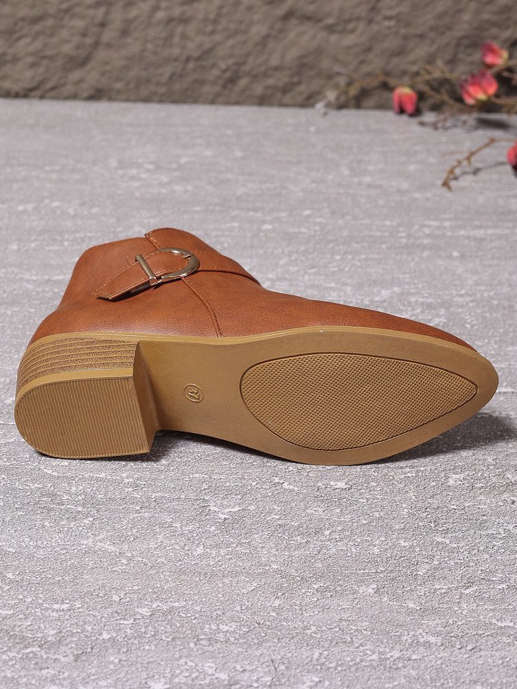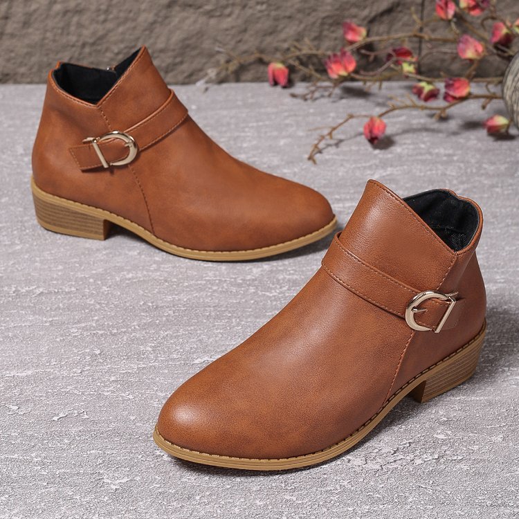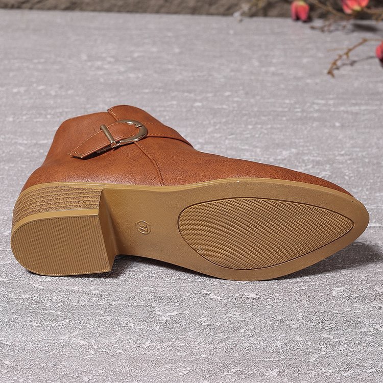 2024 трансграничные римские ретро короткие сапоги женские осенние и зимние новые большие размеры толстые каблуки круглые головы и обнаженные сапоги женские пятно оптом