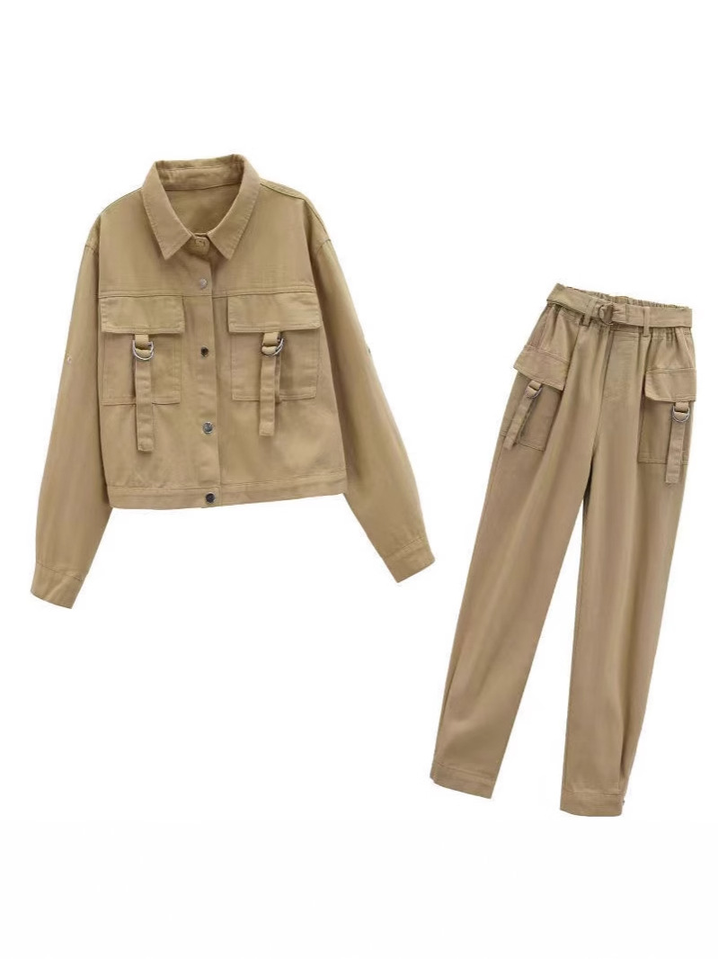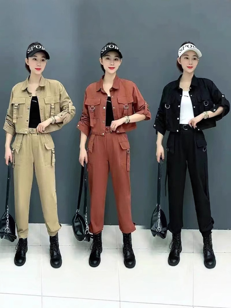 Женский модный костюм, женский осенний новый весенний костюм, короткий повседневный набор из двух частей, полный набор тонких