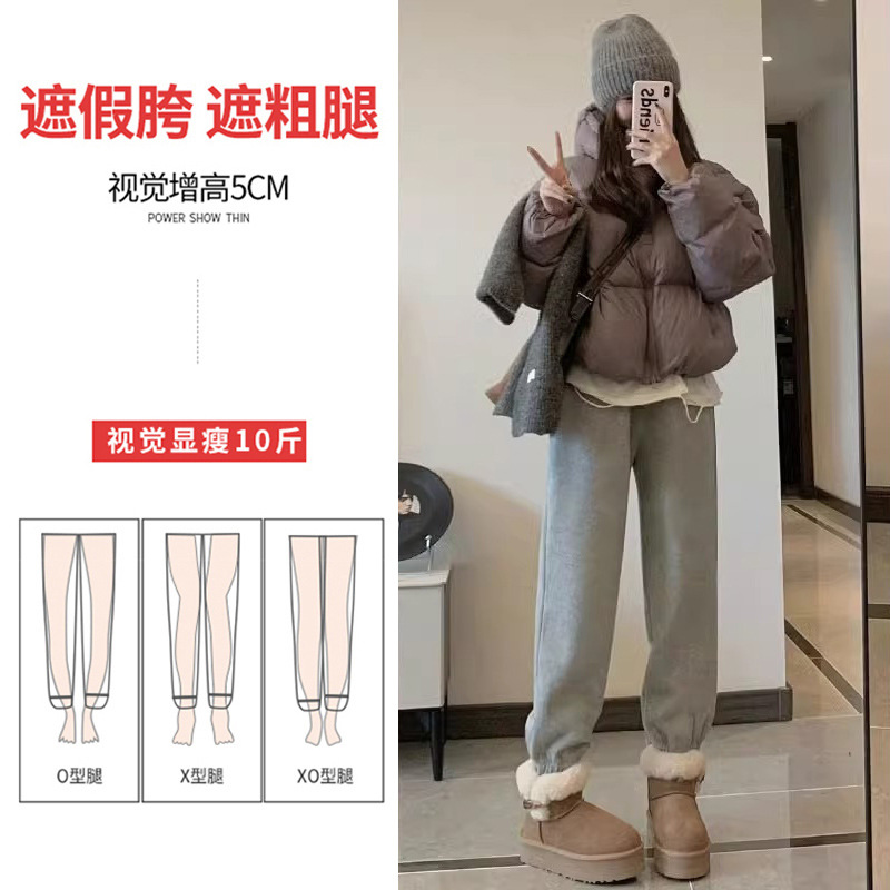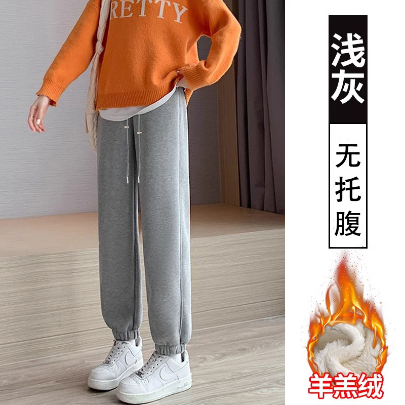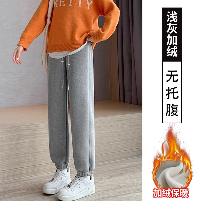 Брюки для беременных серые бархатные спортивные брюки осень-зима 2024 новые свободные брюки из хлопка повседневные тонкие брюки