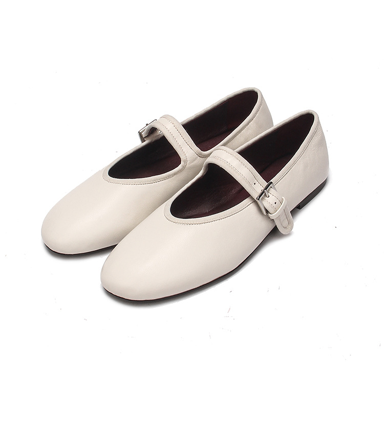 2024 Осень row Одиночная обувь с пряжкой Mary Jen обувь женская ретро молочная обувь женская плоская подошва с круглой головкой и мелкой рот одиночные туфли