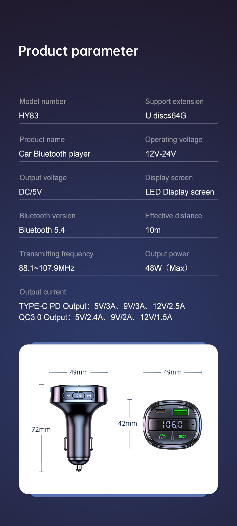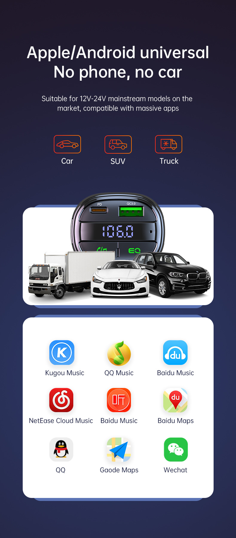 Supported file types:MP3/WMA/APE/FLAC/WAV