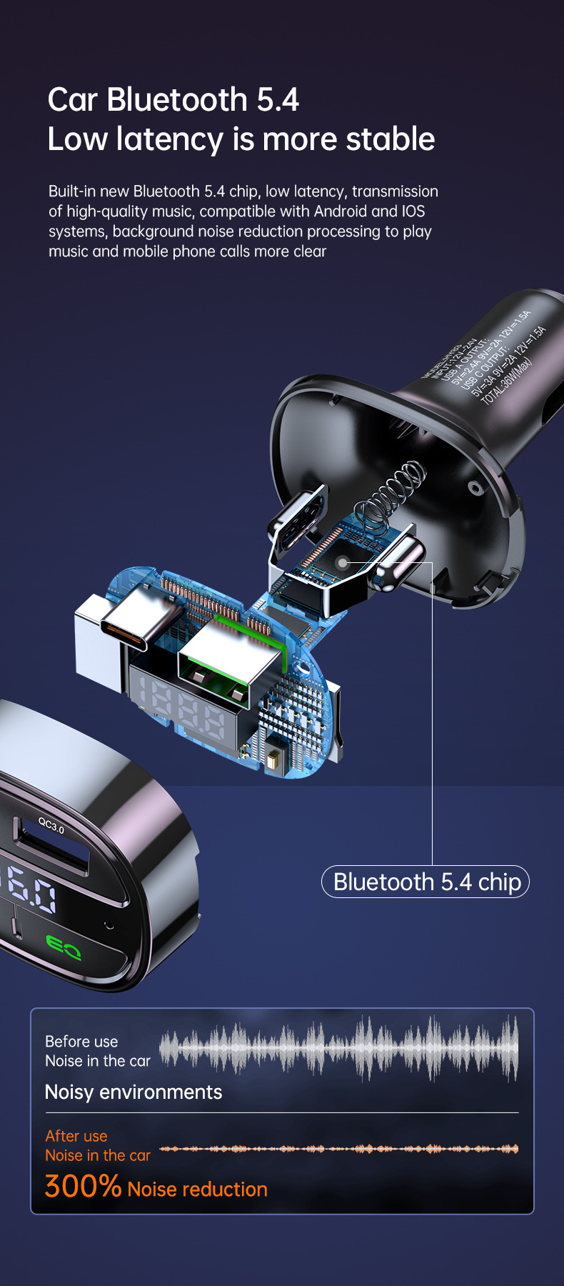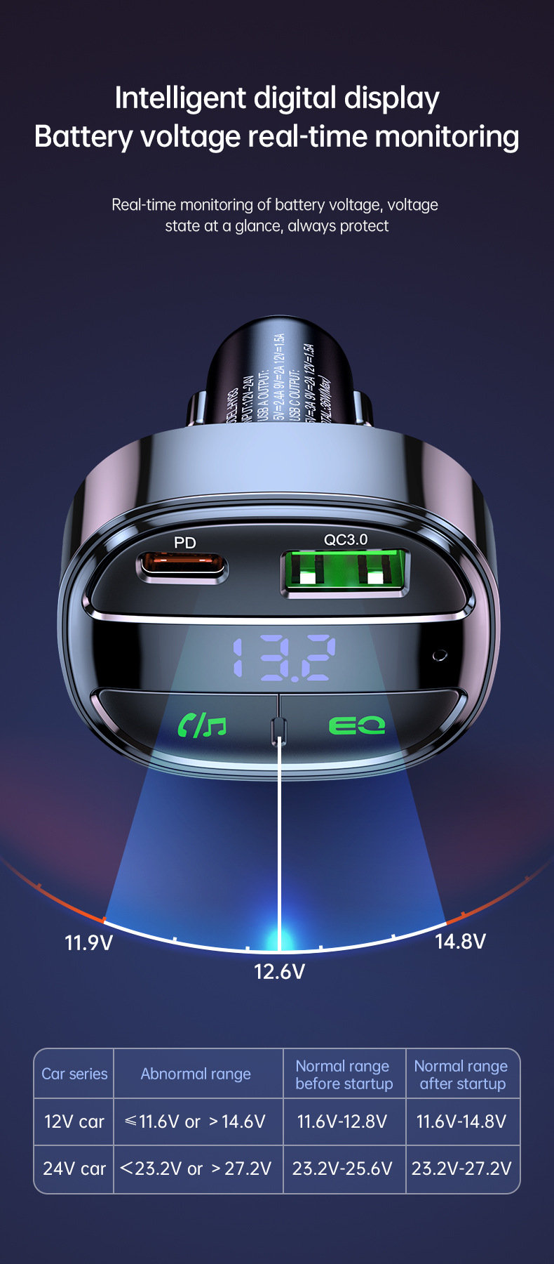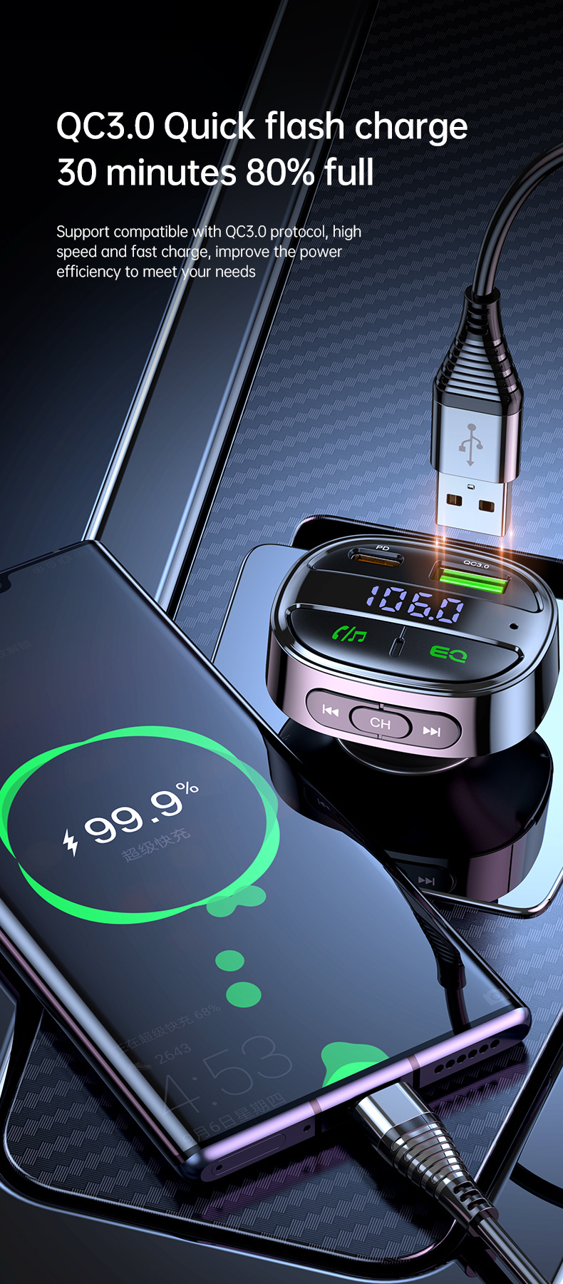 Новый автомобильный MP3 Bluetooth аудиоприемник FM-передатчик автомобильная зарядка PD30W QC3.0 быстрая зарядка