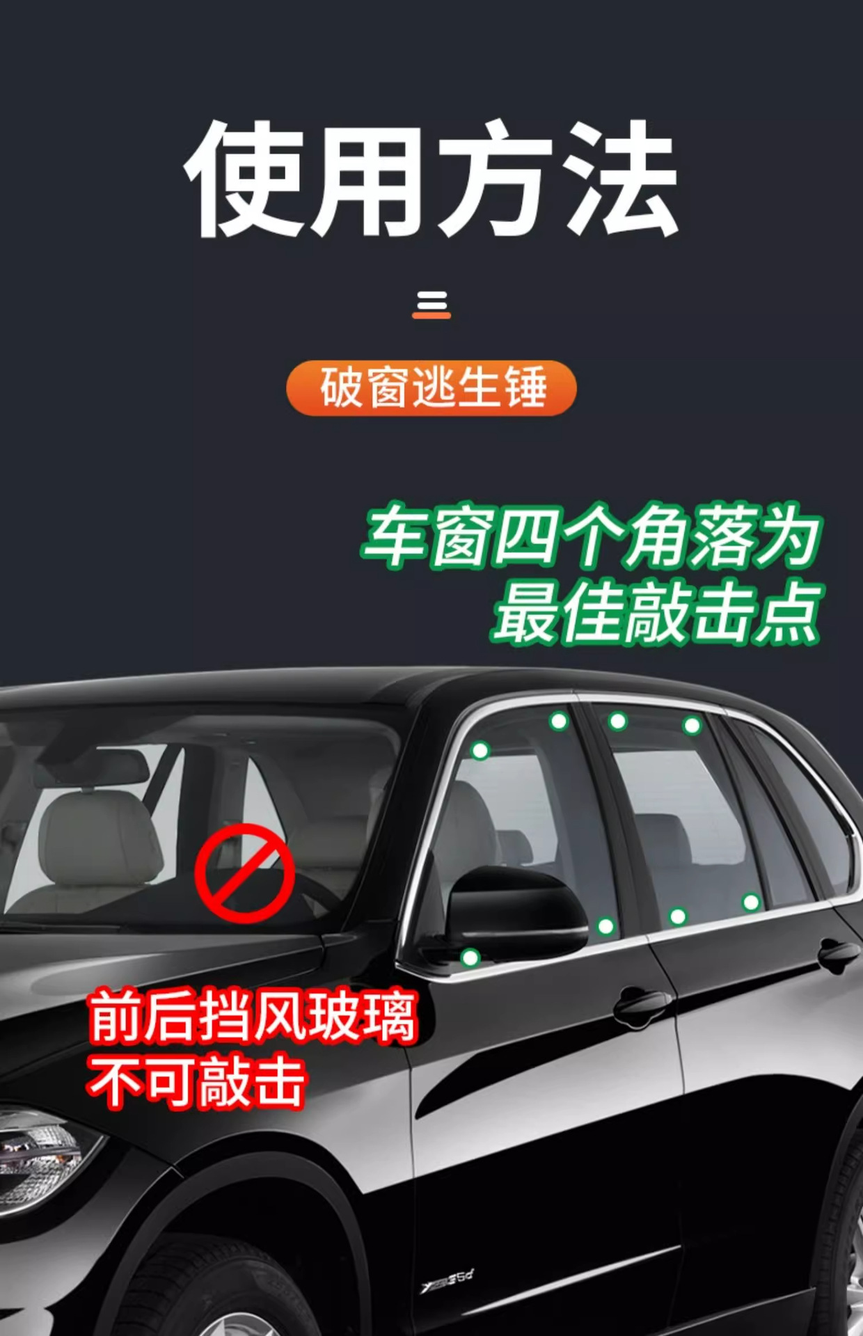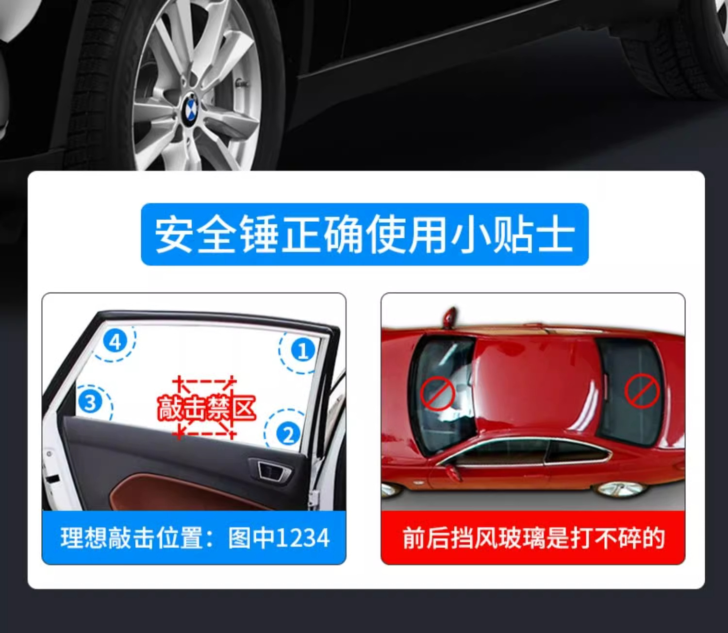 Молоток безопасности-[разрывное окно + резак для ремня безопасности] (1 шт.); Молоток безопасности-[разрывное окно + резак для ремня безопасности] (упаковка из 2 шт.)