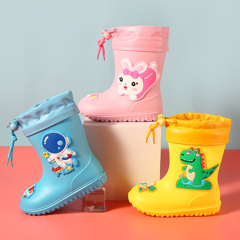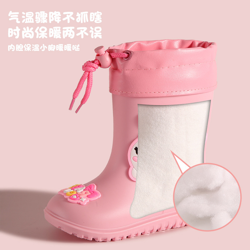 Детская дождевая обувь мультфильм теплая нескользкая водяная обувь плюс бархатная съемная девочка мальчик средняя труба детская дождевая сапога детская резиновая обувь