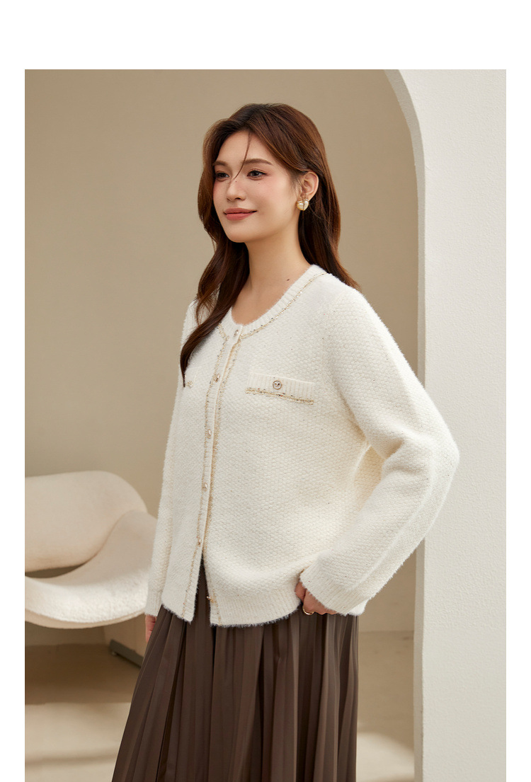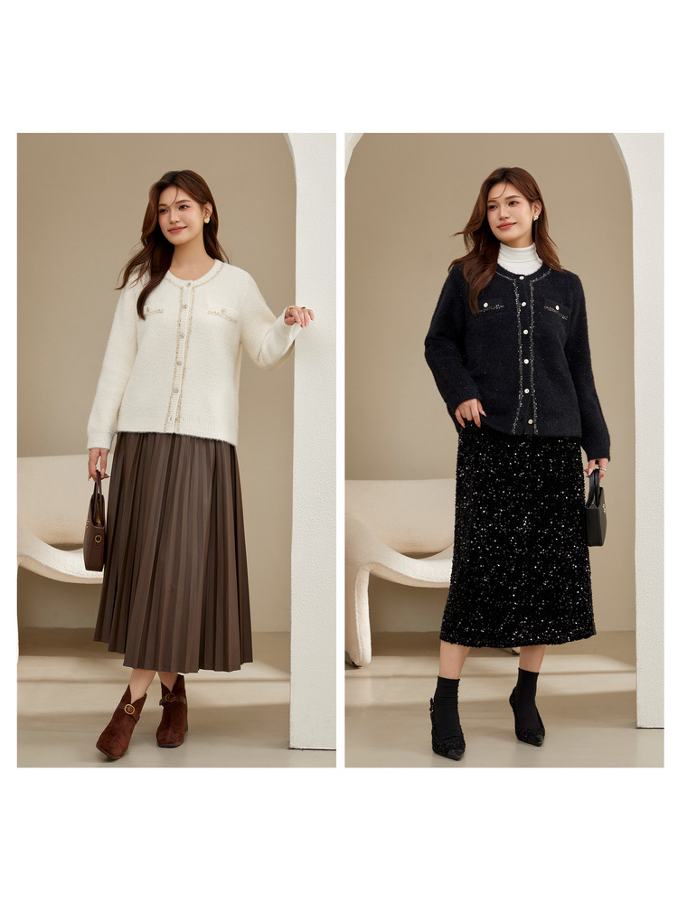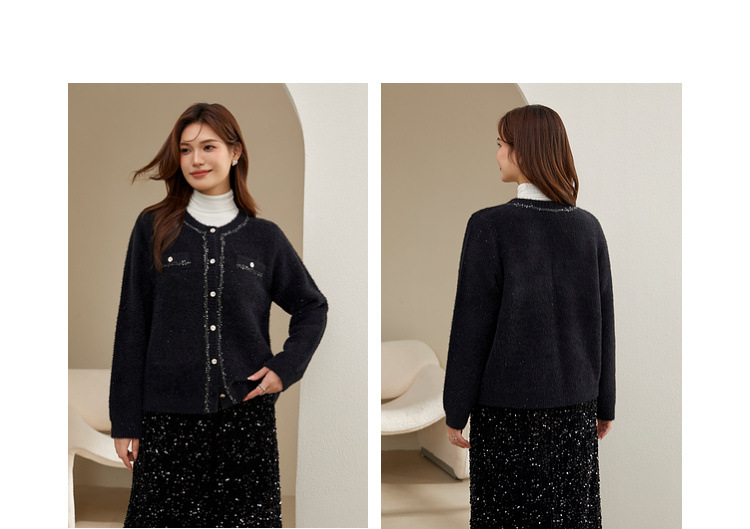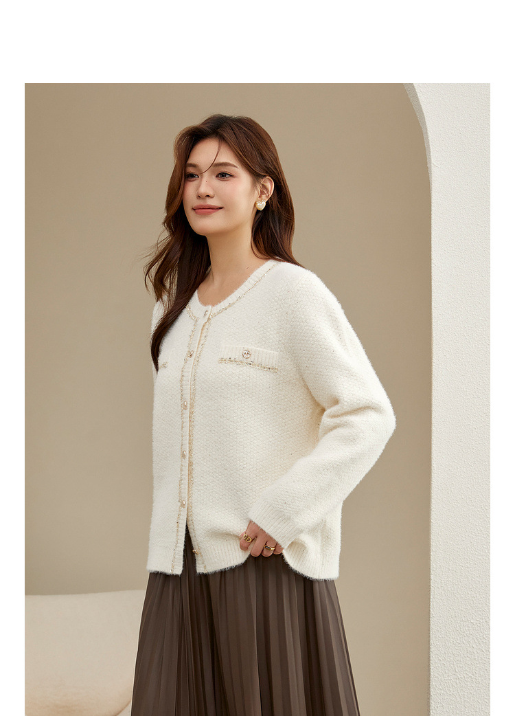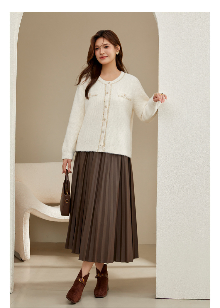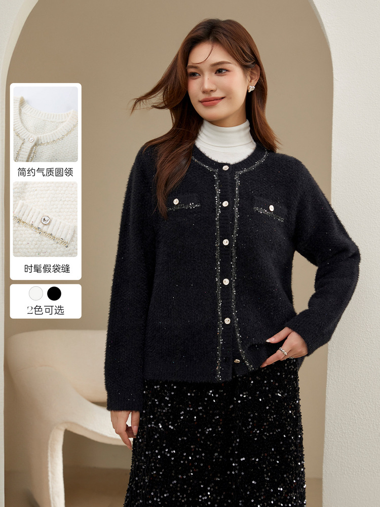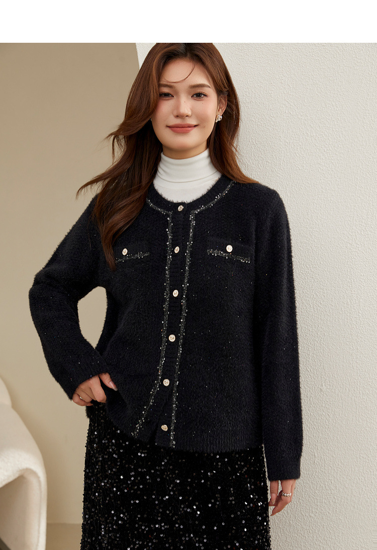 Funny Show большой размер женская французская ретро нежный стиль темперамент модный вязаный кардиган жирный mm2024 зимняя одежда новый